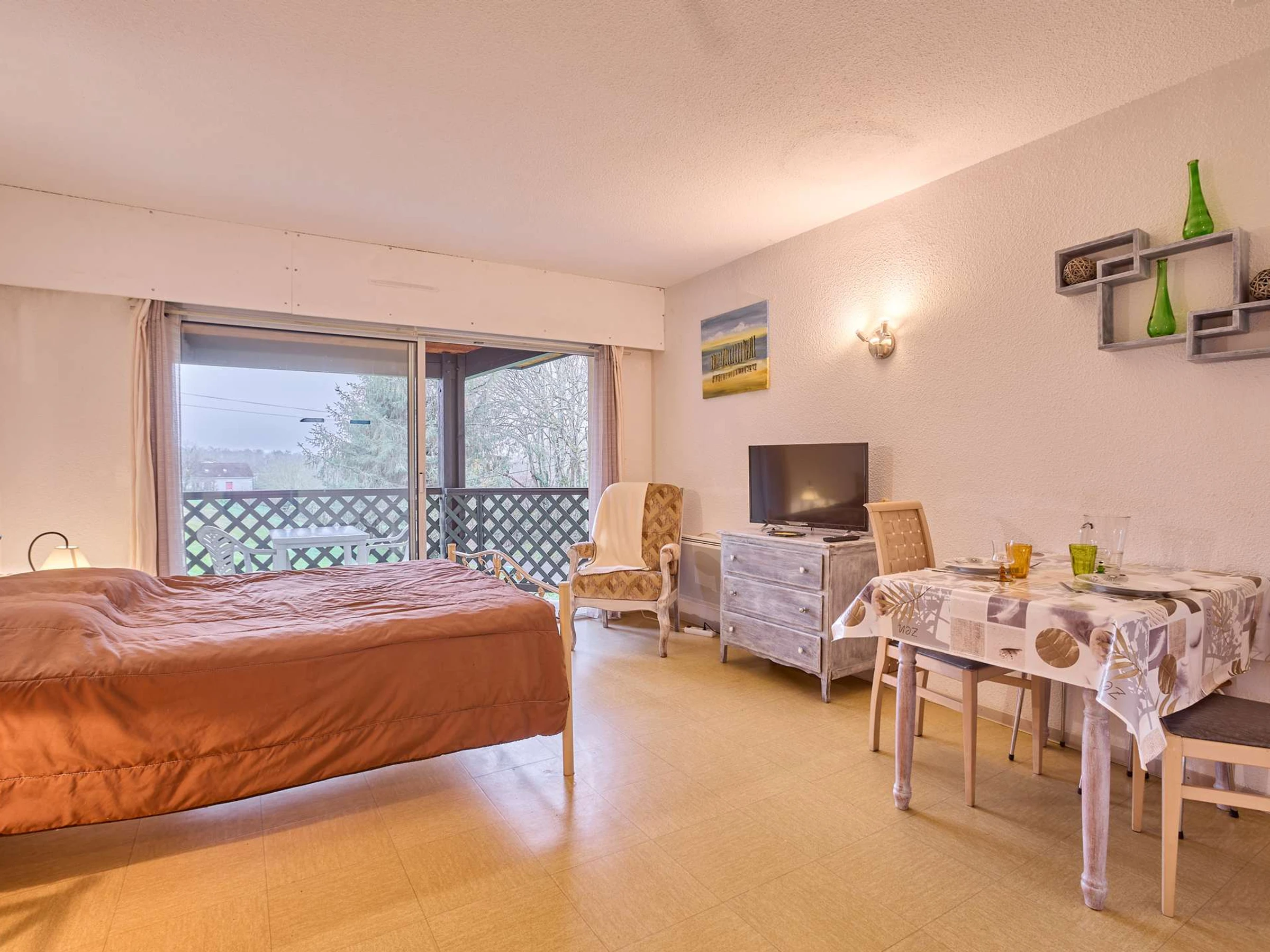 Cet appartement de type T1 de 25m² au 1er étage, est baigné de lumière grâce à une large baie vitrée qui s’ouvre sur balcon exposée plein sud, équipée d’un salon de jardin deux personnes et d'un fauteuil.
