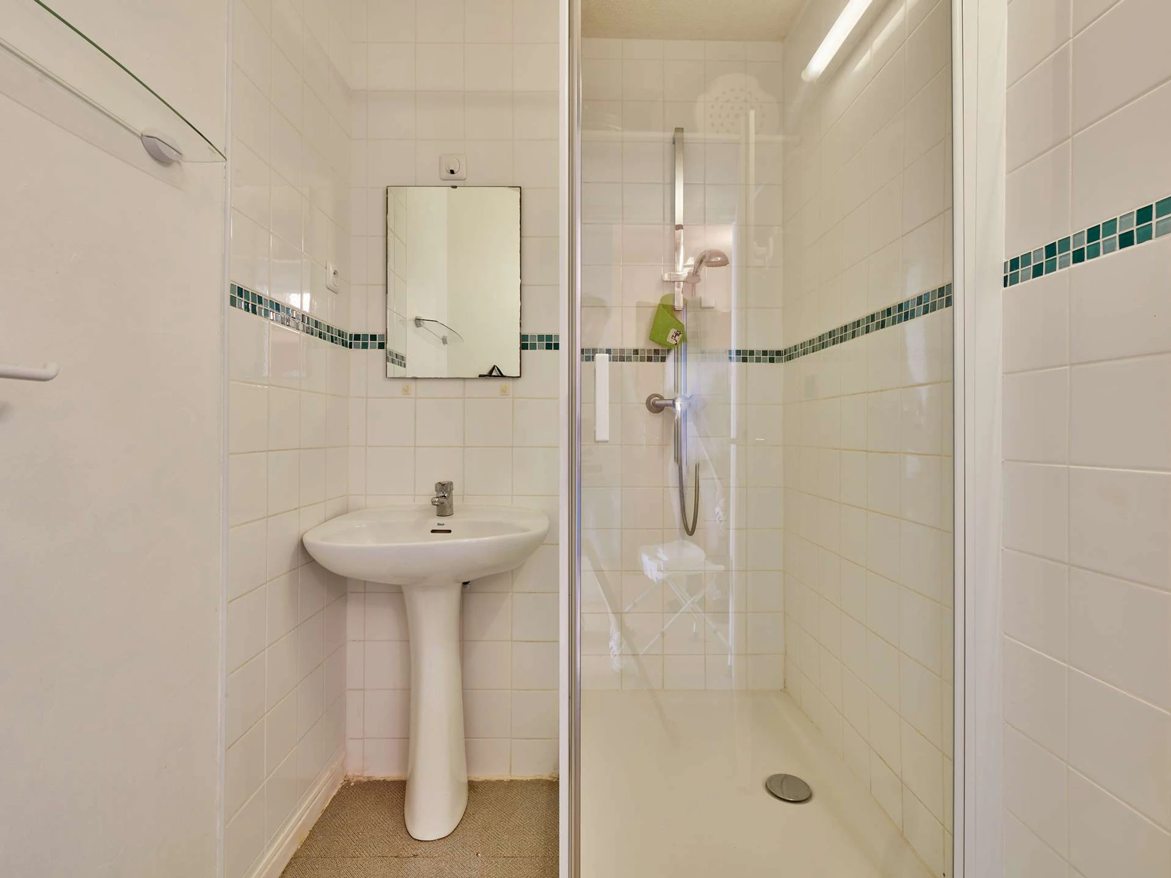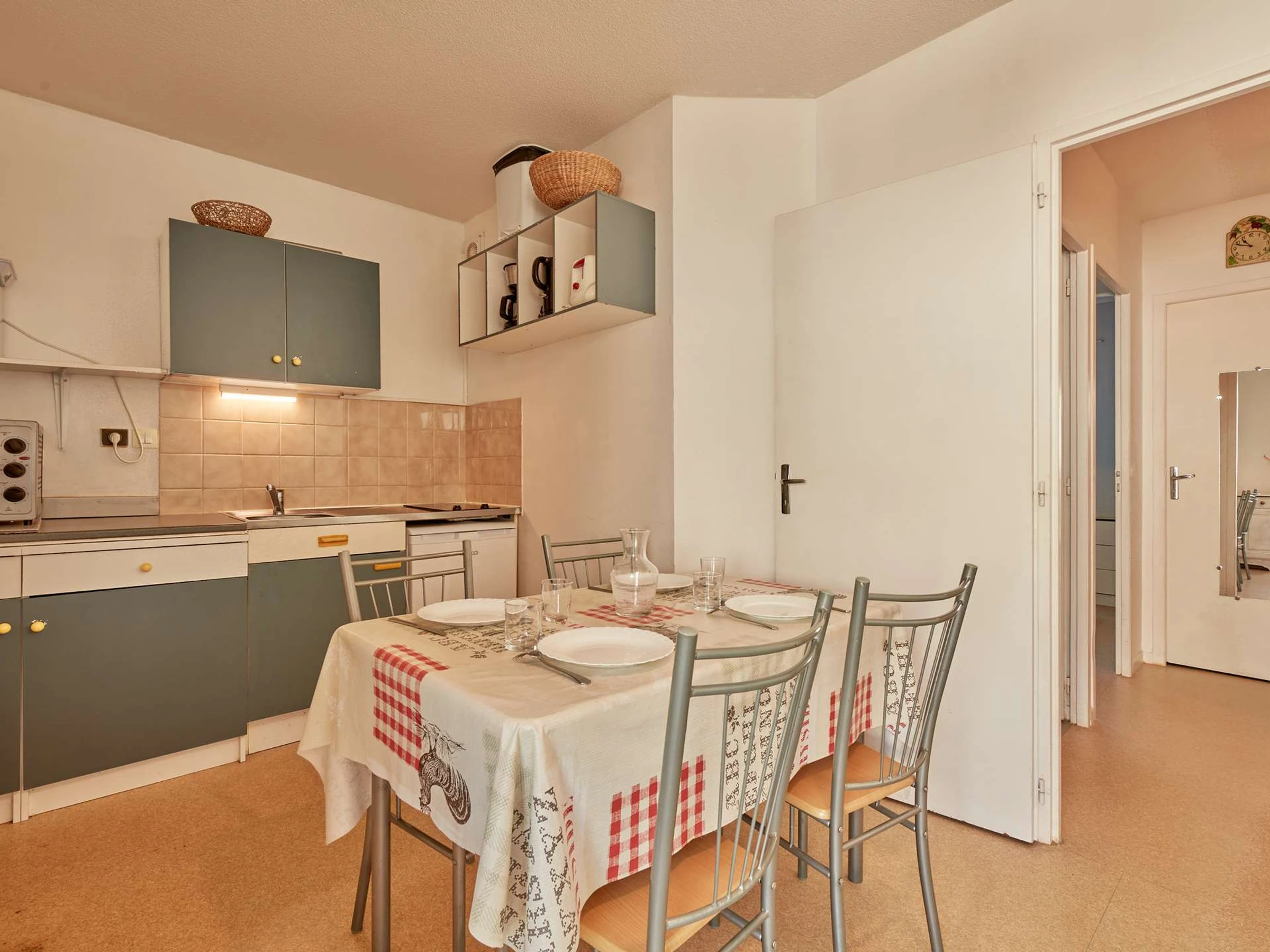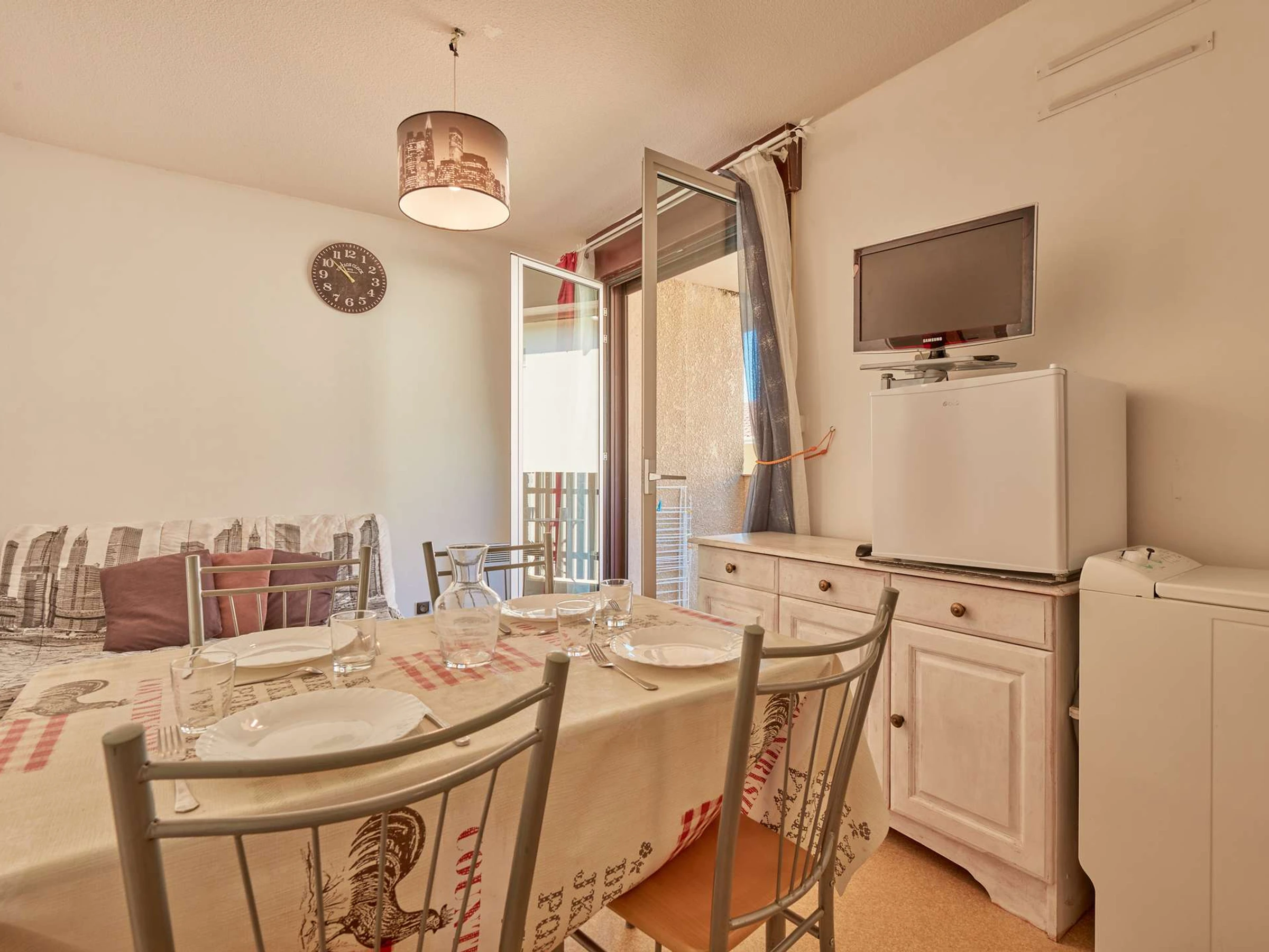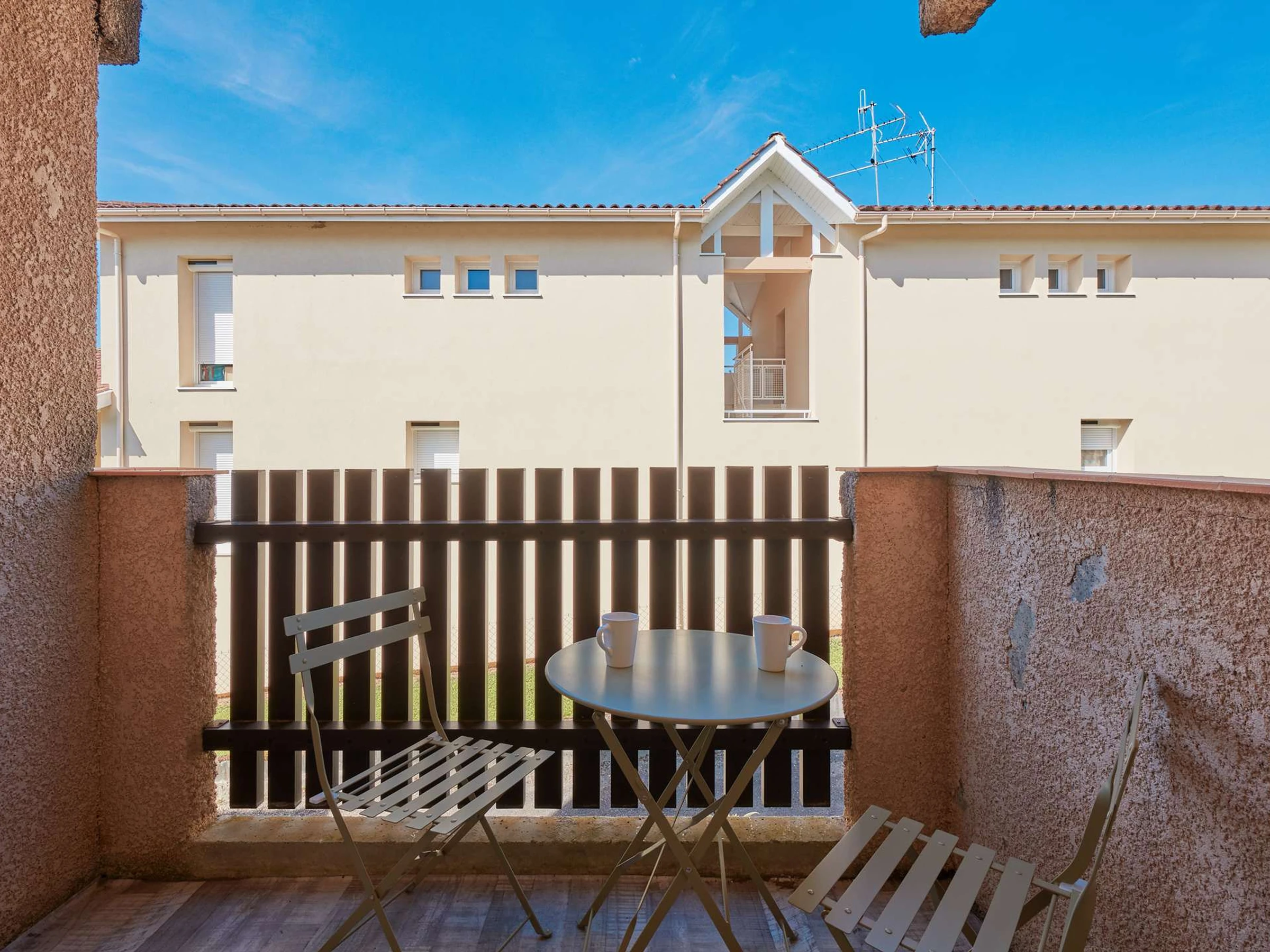 Grande pièce à vivre lumineuse avec salon (clic-clac, TV), coin repas (table, 4 chaises) et cuisine équipée (plaques électriques, micro-ondes, mini-four, réfrigérateur, lave-linge).Balcon ouest avec salon de jardin. Salle d’eau avec douche, lavabo, toilettes séparées. Chambre spacieuse avec deux lits simples (90 cm) et fenêtre, décor moderne et apaisant. chauffage électrique
