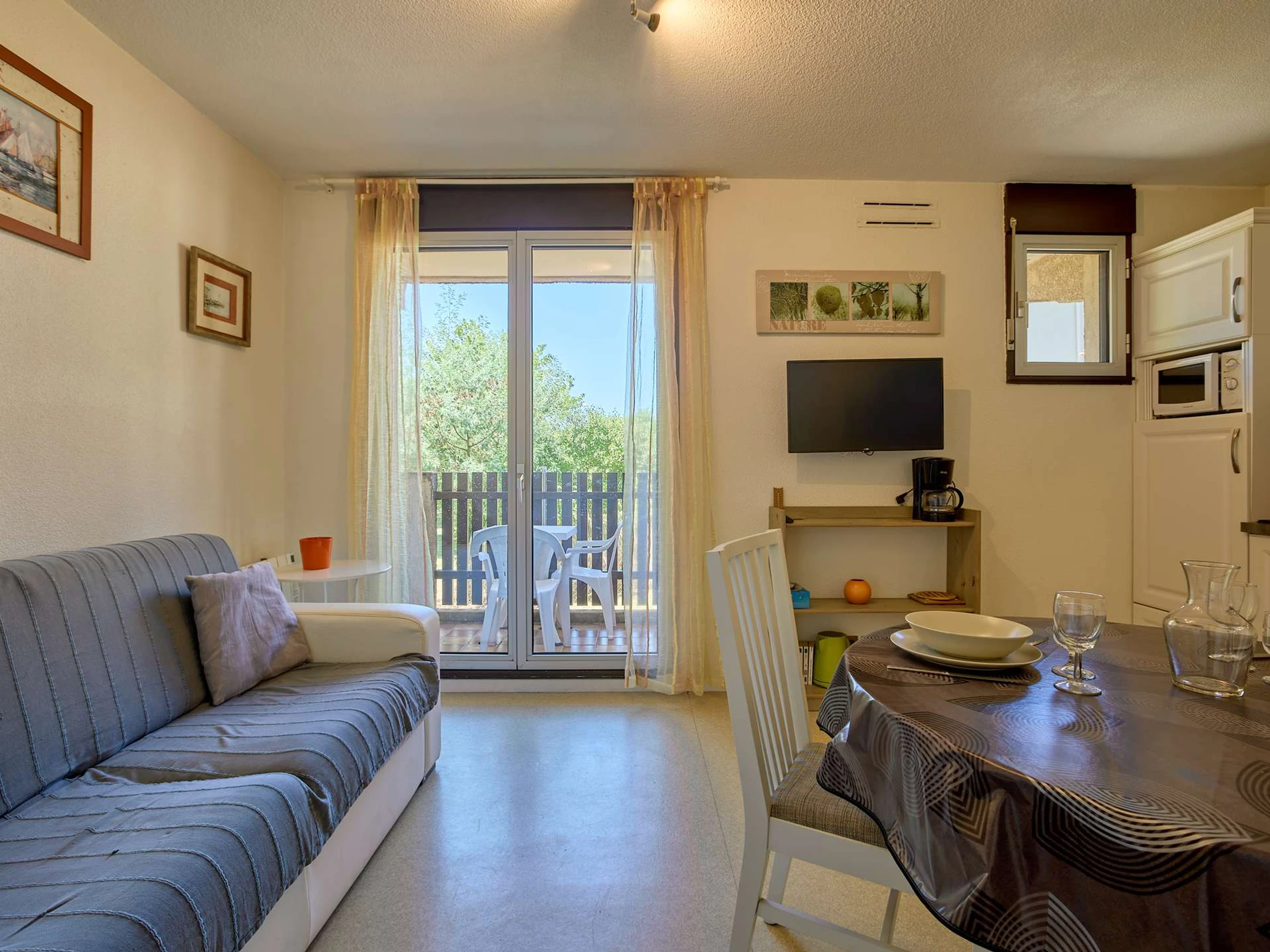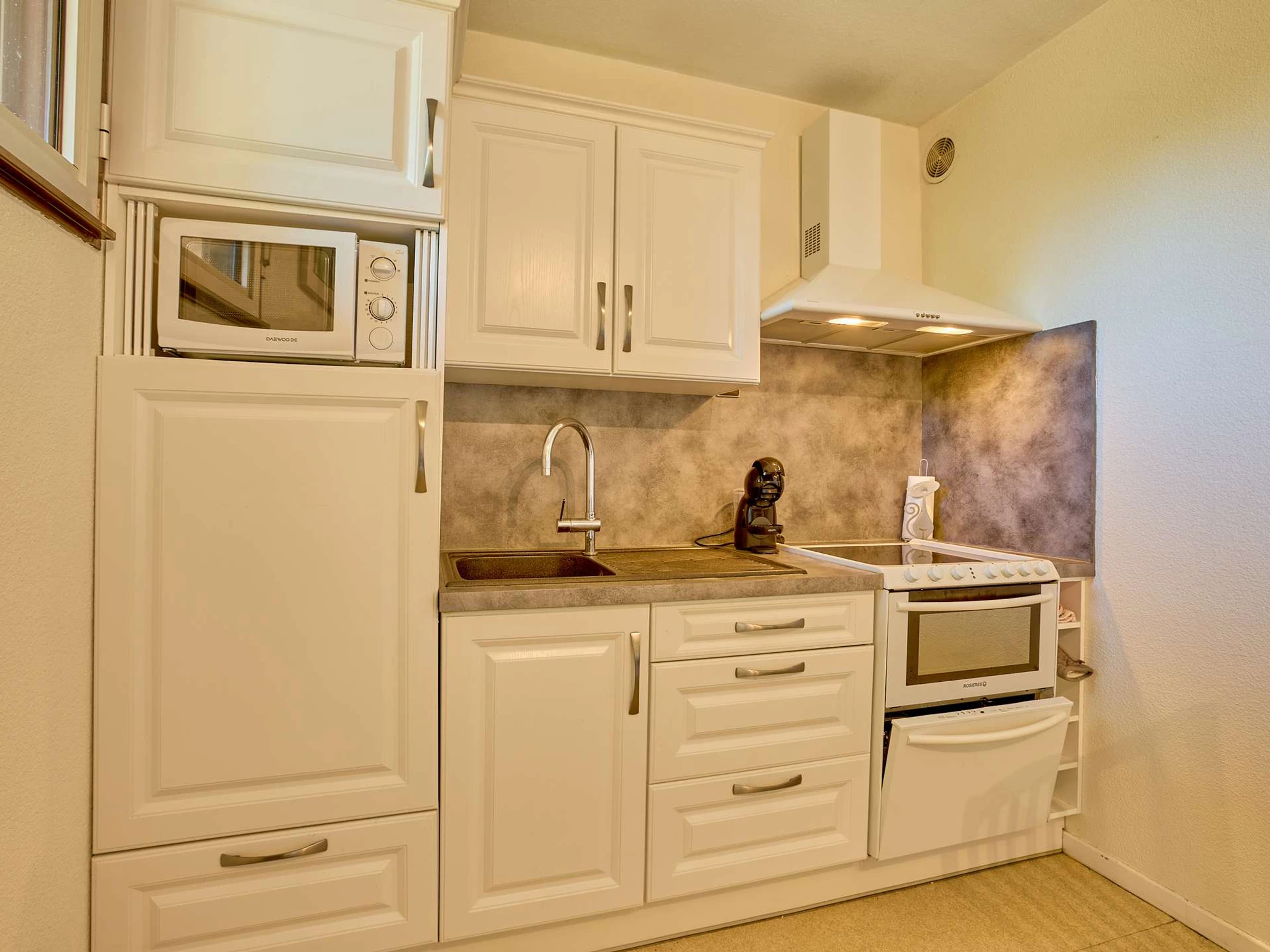 Ce T2 de 27,30 m², au rez-de-chaussée du bâtiment D de la Résidence Henri IV, offre un salon avec canapé convertible, TV, table à manger, et une cuisine équipée (plaque vitrocéramique, four, réfrigérateur-congélateur, micro-ondes, lave-linge). Vous profiterez d’un balcon ouest avec salon de jardin. La salle d’eau comprend douche, lavabo, et toilettes séparées. La chambre spacieuse est équipée d’un lit en 140.Chauffage électrique.