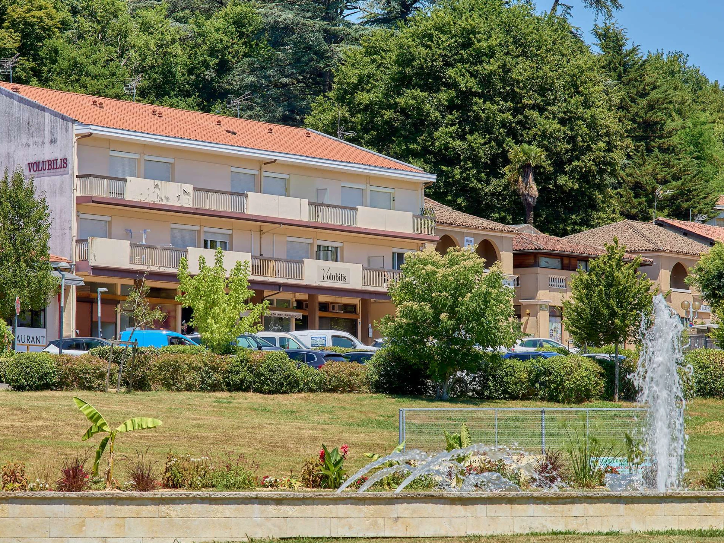 La résidence Volubilis est calme et idéalement située sur le haut de la rue des Thermes, proche des commerces et des Thermes (380 m), elle possède un parking privé et un accès Wifi gratuit.