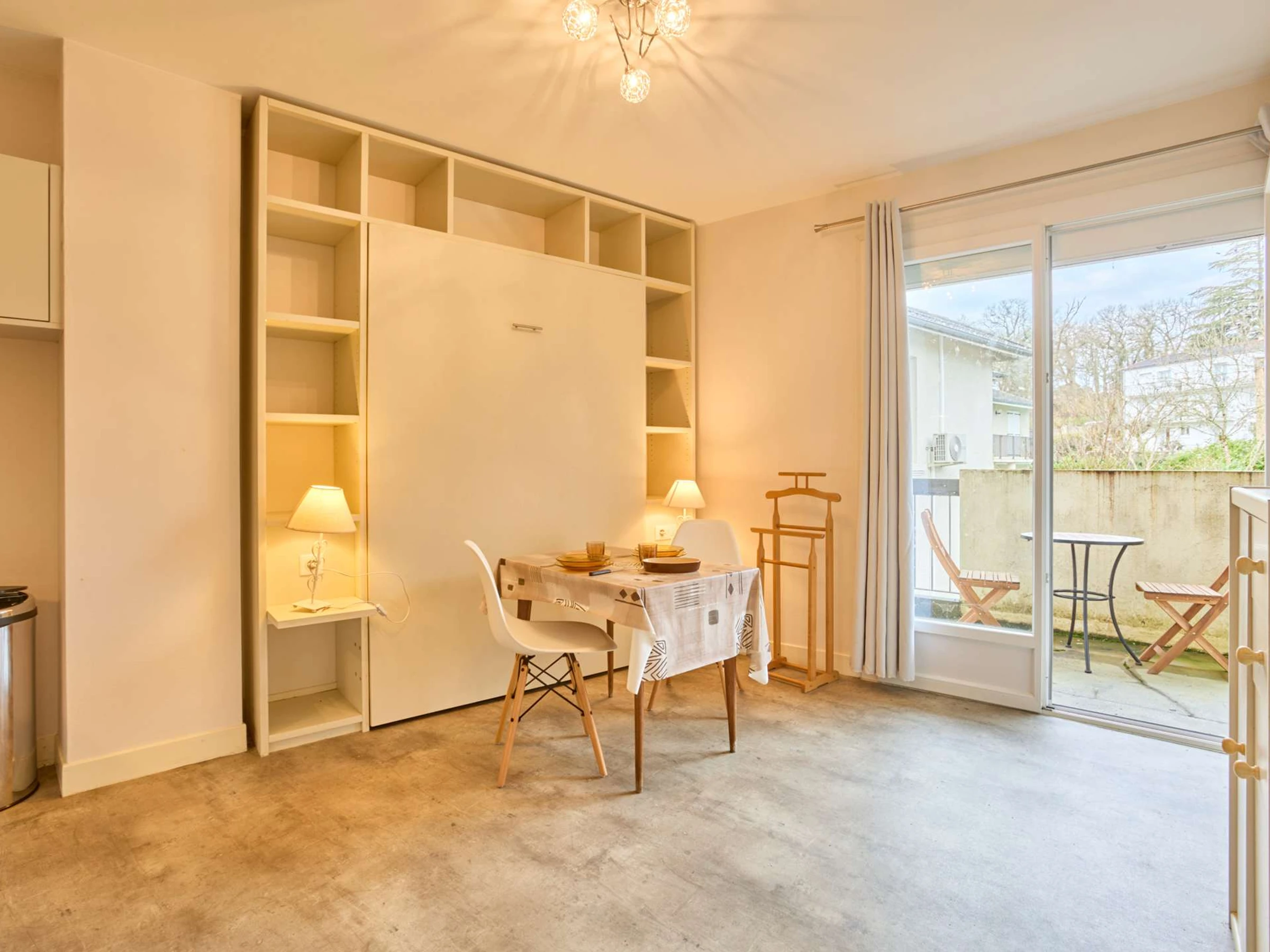 Ce studio fonctionnel, est idéal pour passer un bon séjour dans le Gers. Lumineux, 22 m², avec balcon est au 1er étage de la résidence et exposé ouest vue arrière immeuble aménagé avec deux lits en 90, une télévision, un coin repas et cuisine équipée avec mini-four, micro-onde, plaques électriques et réfrigérateur, cafetière électrique, [hidden] salle d'eau possède une douche, un meuble-vasque et des toilettes.Chauffage électrique.