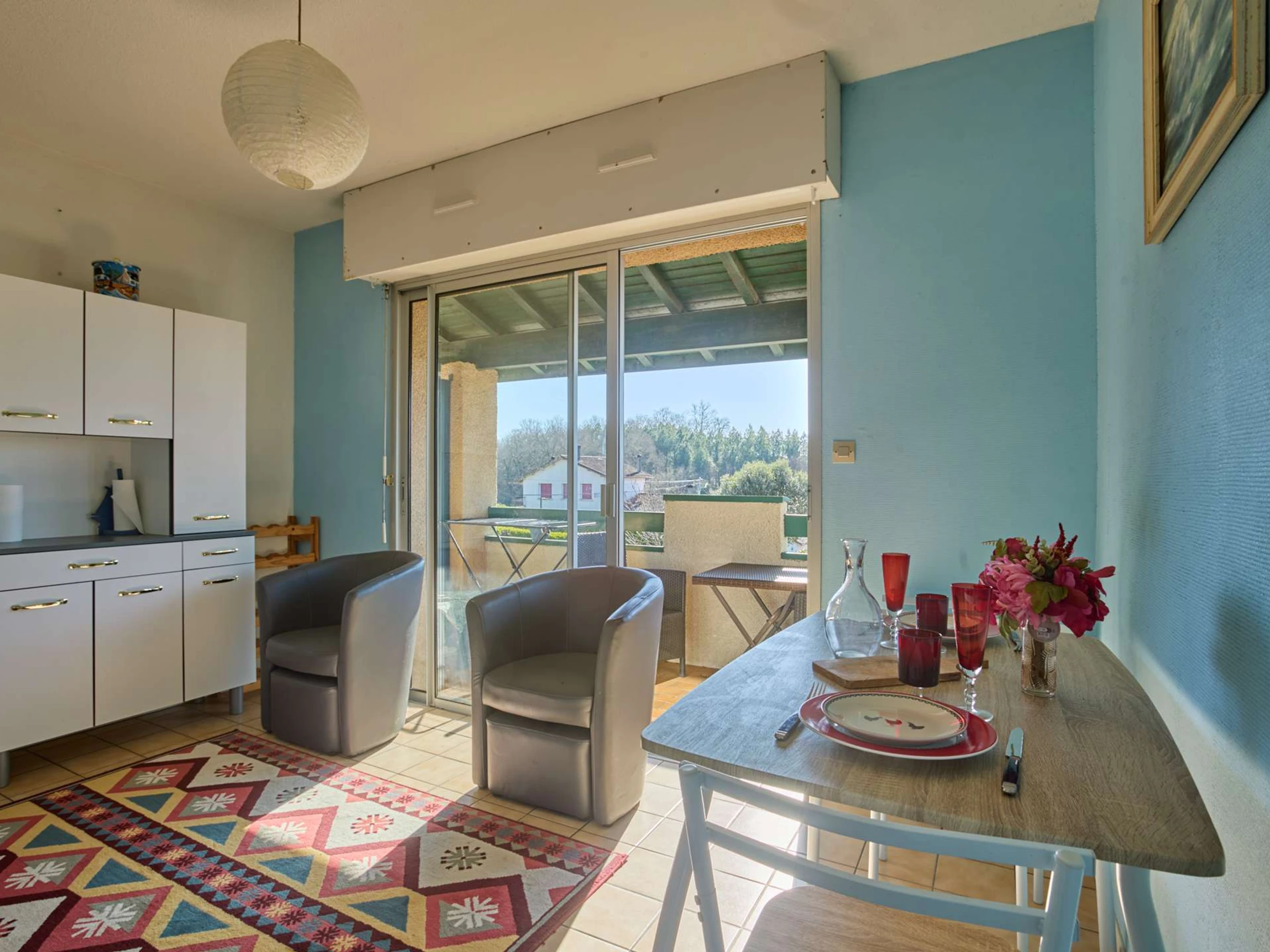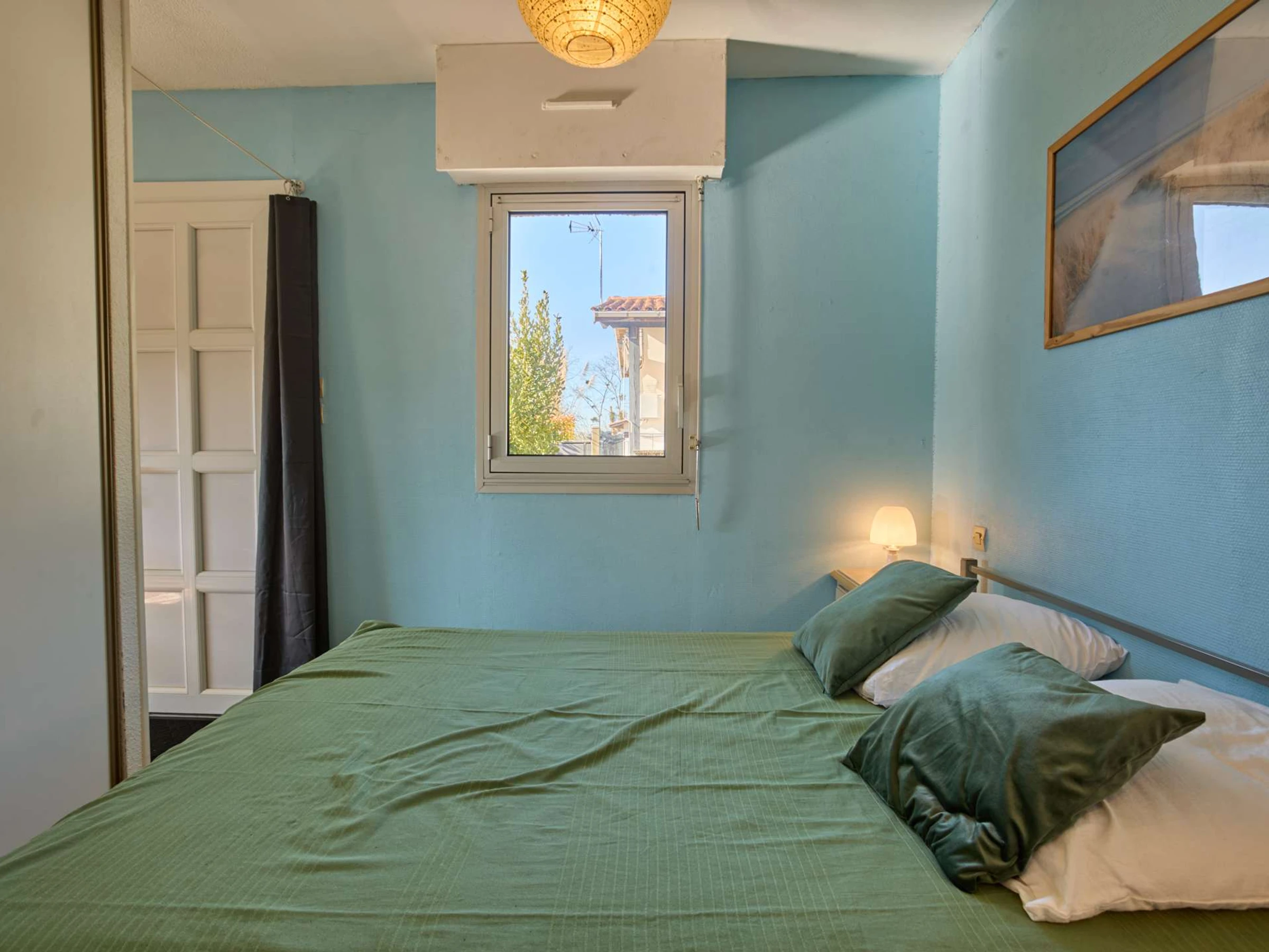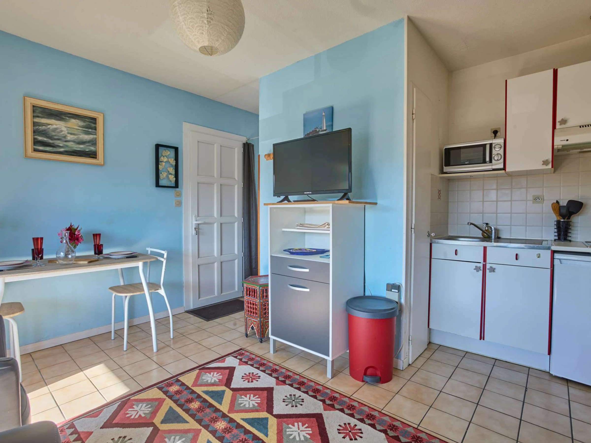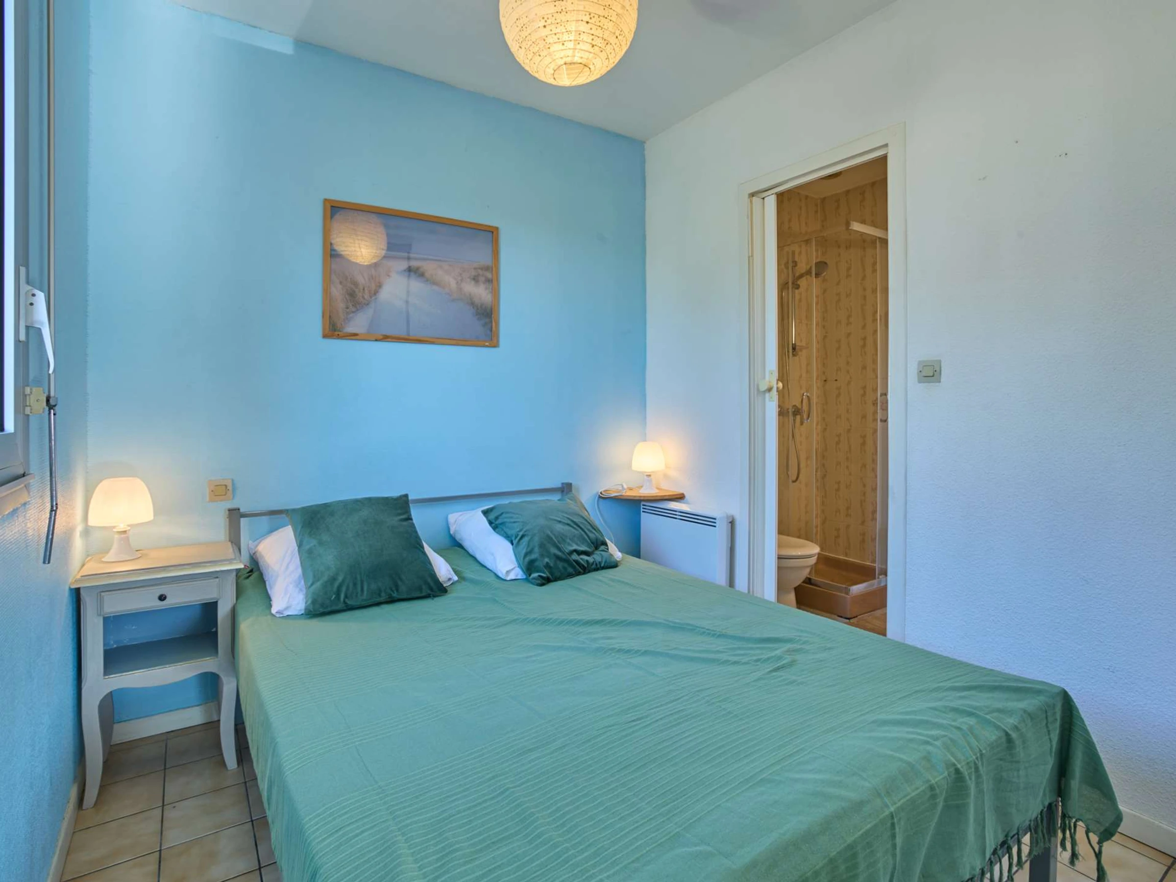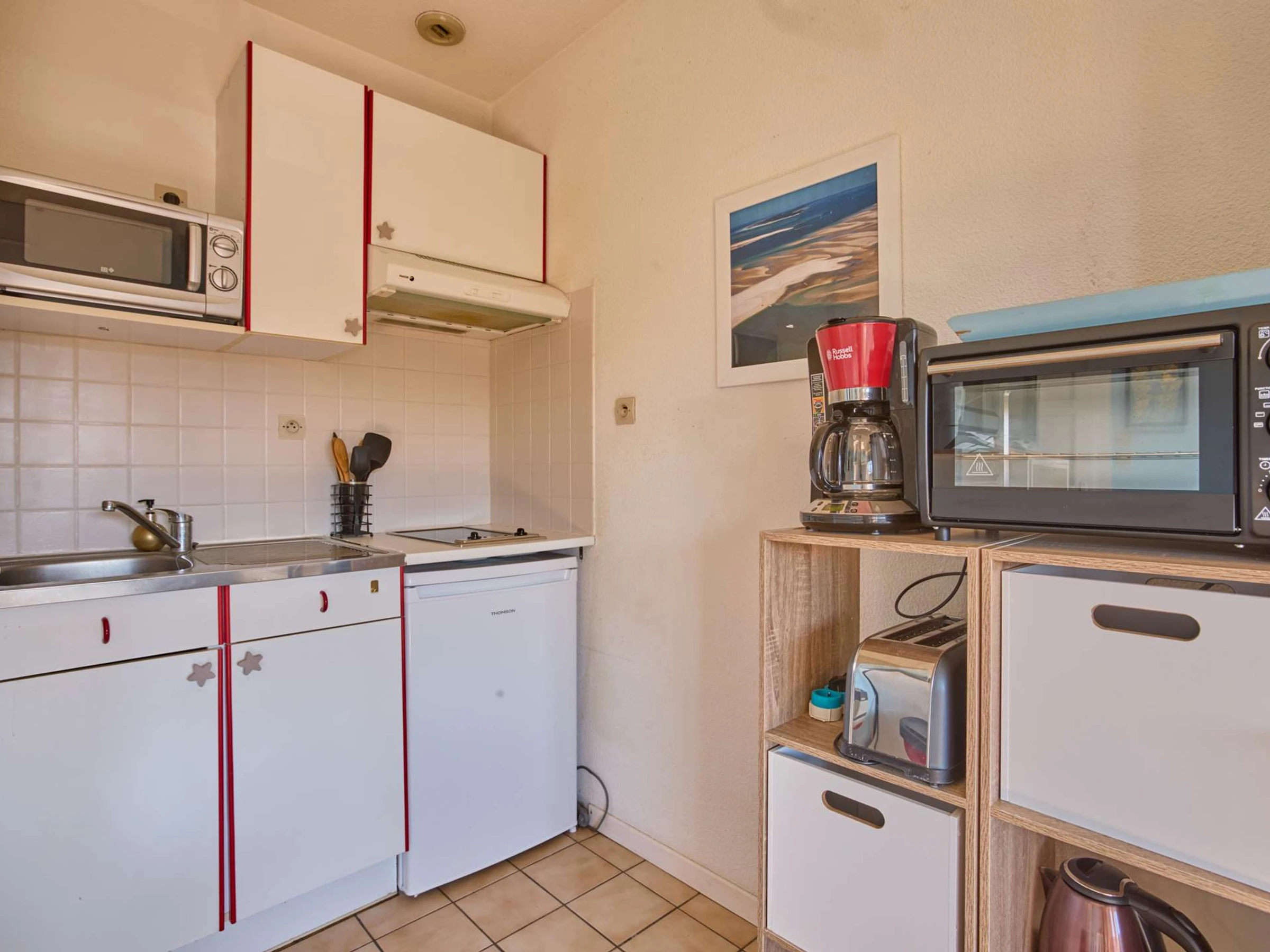 Ce T1 bis de 29,3 m², proche d’un T2, dispose d’un coin nuit séparé avec fenêtre et salle d’eau privative. L’espace jour est aménagé avec coin repas, fauteuils, TV et cuisine équipée (réfrigérateur, micro-ondes, mini-four, lave-linge). Une grande baie vitrée donne sur un balcon spacieux orienté sud-est, idéal pour profiter de la vue.