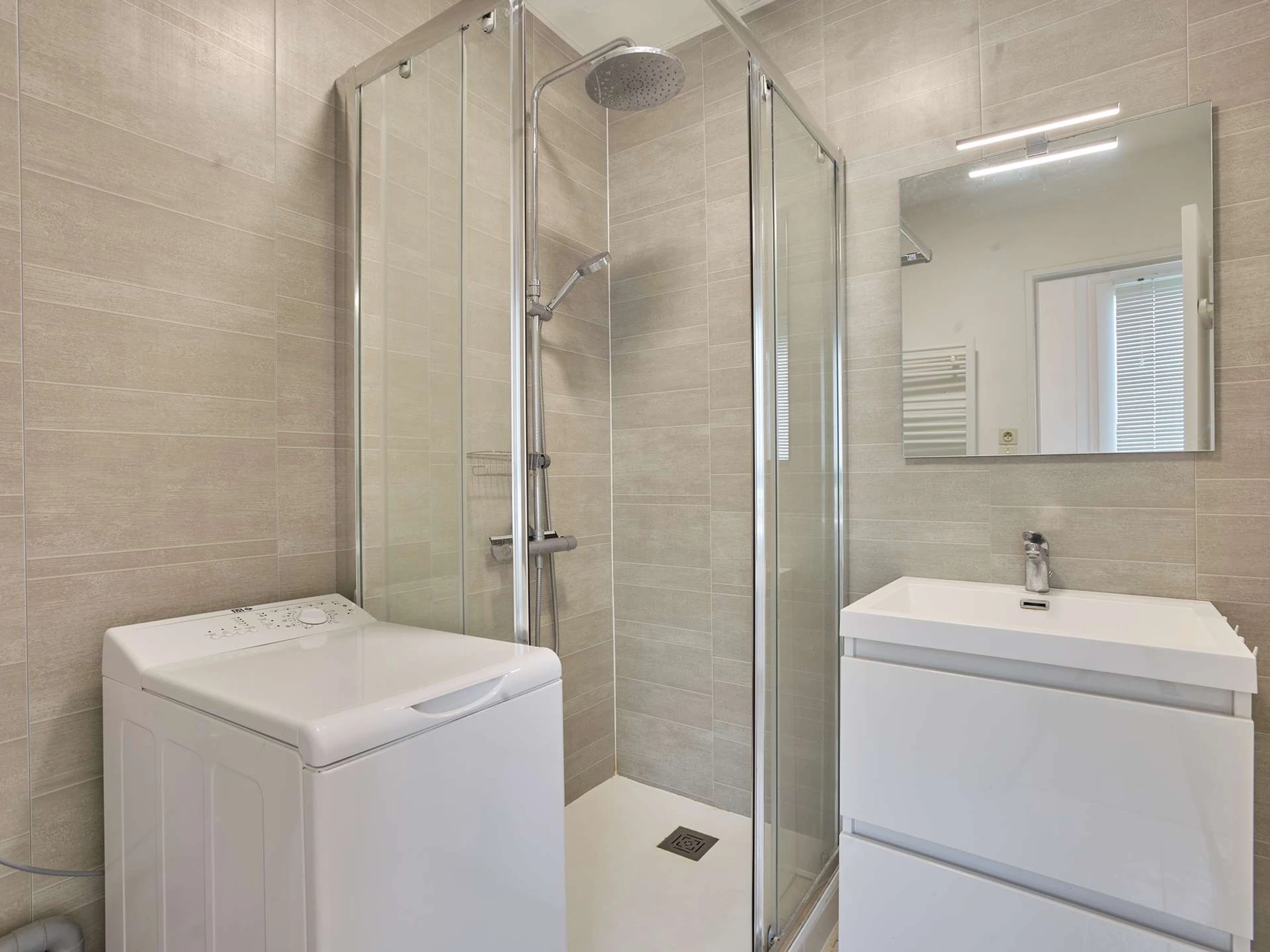 La salle d’eau est équipée d’une cabine de douche, d’un lavabo et d’un lave-linge.