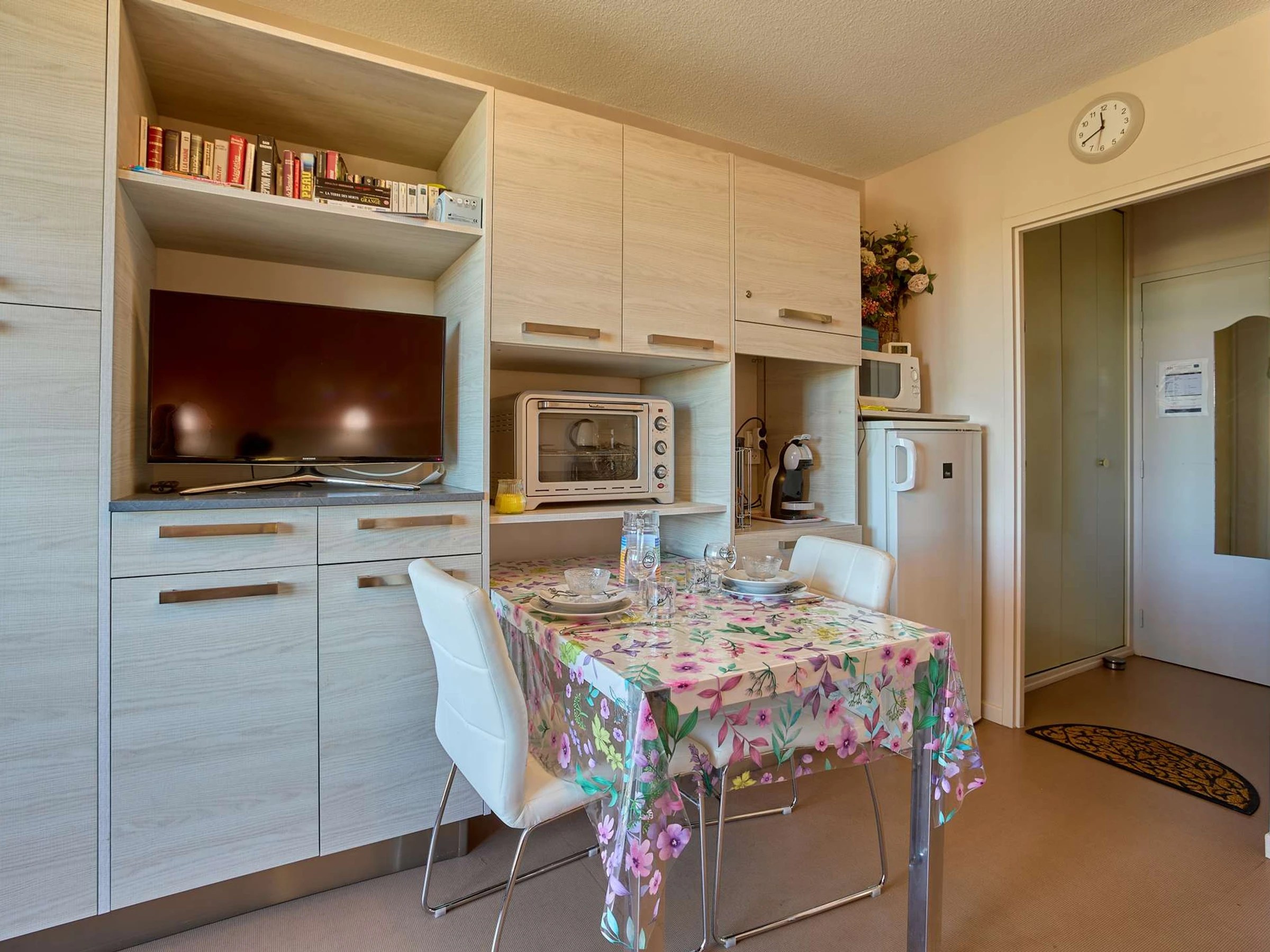 Studio de 23 m², situé au 2? étage du bâtiment B de la Résidence Henri IV. Orienté sud-ouest, il bénéficie d’un bel ensoleillement en fin de journée. Son balcon aménagé d’un salon de jardin, accessible directement depuis le séjour, offre un espace agréable pour profiter de l’extérieur.