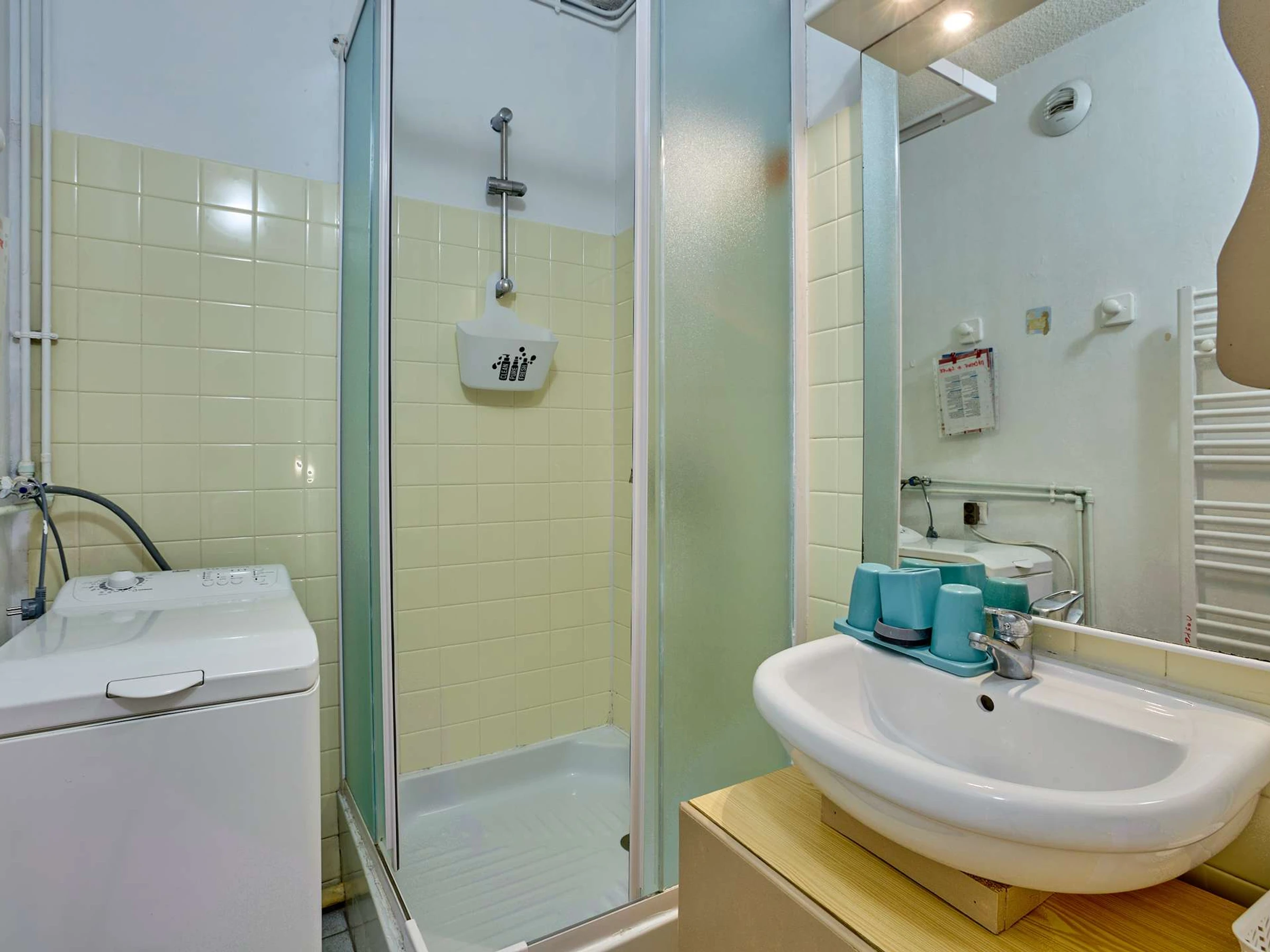 La salle d’eau dispose d’une douche, d’un lavabo et d’un lave-linge, et les toilettes sont séparées.