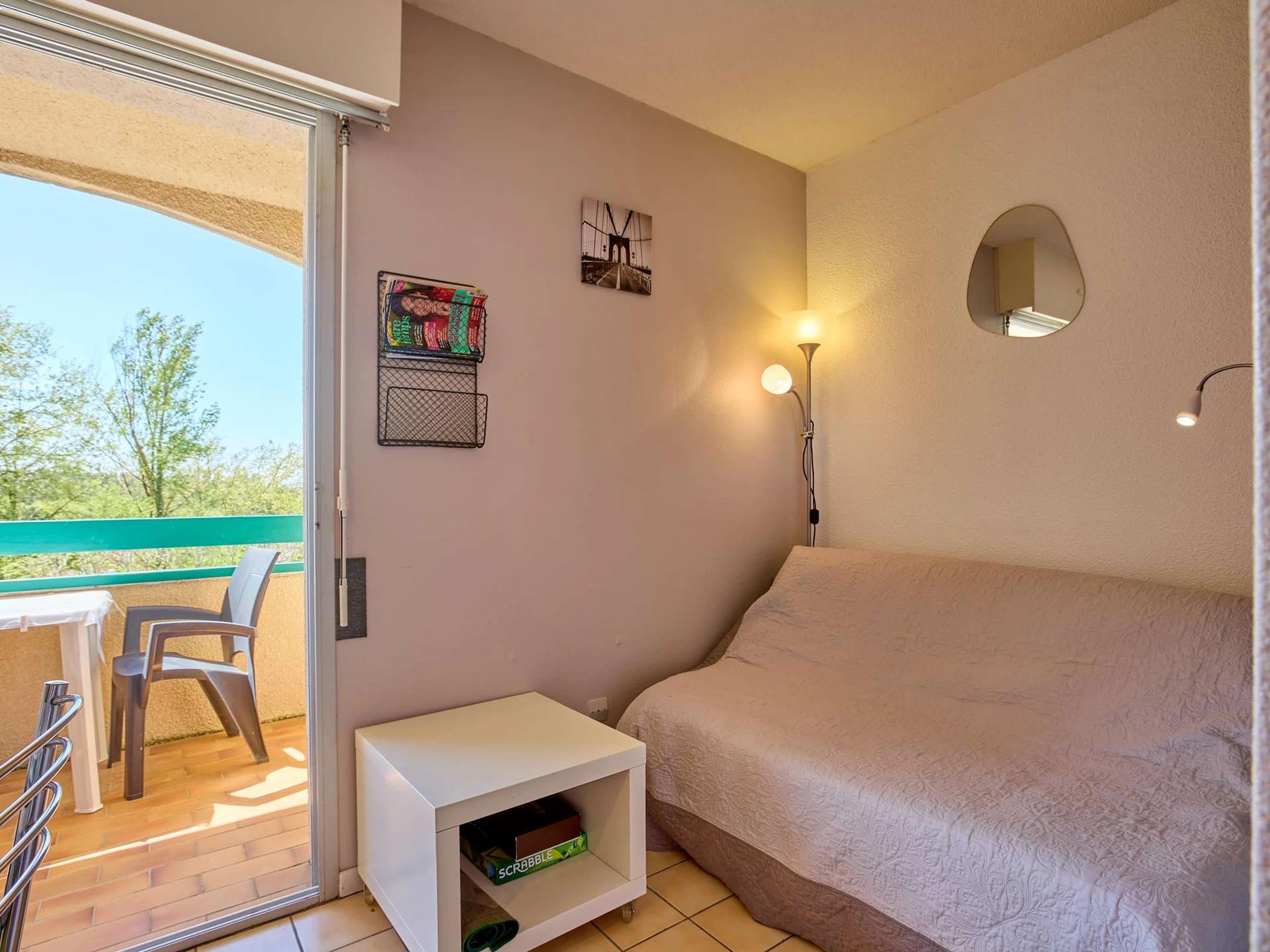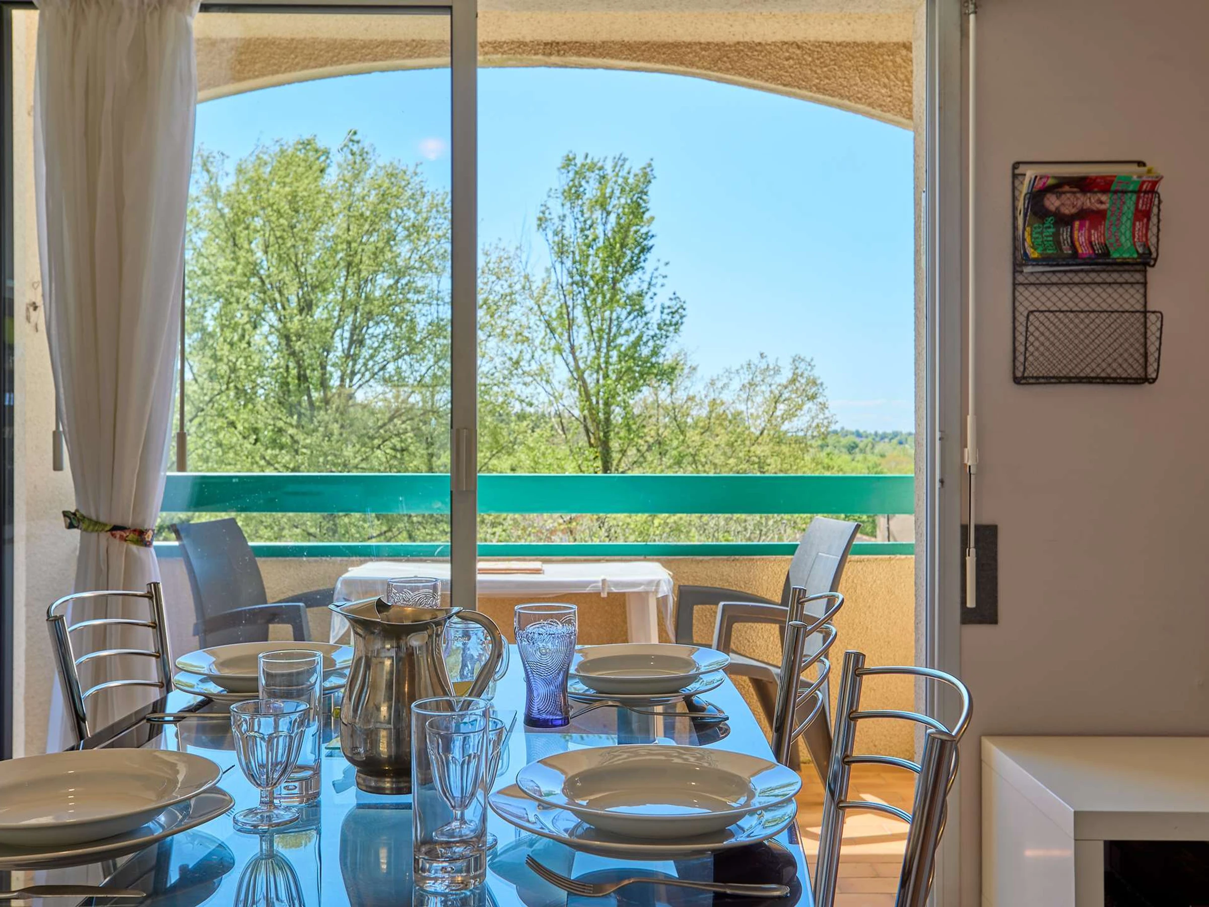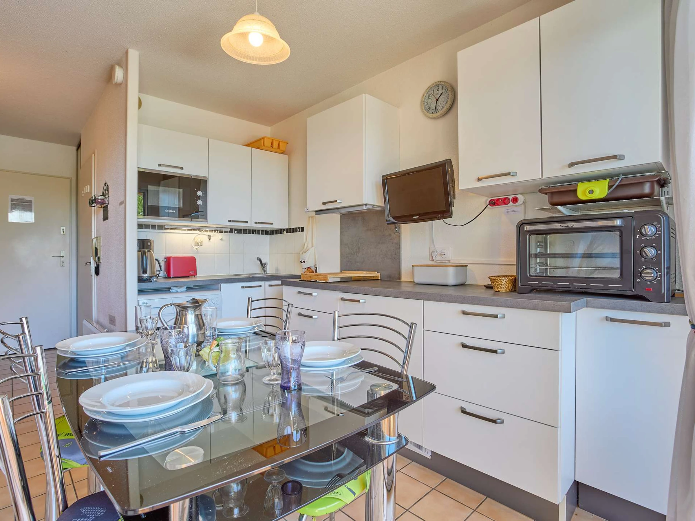 Il est composé d'un coin salon, une TV, coin repas avec table et 4 chaises, d'une cuisine équipée: réfrigérateur (petit congélateur intégré) micro-ondes, mini-four, plaques vitrocéramiques, cafetière, grille pain, cafetière électrique, robot électrique,lave-linge, et s'ouvre sur un balcon exposé sud et un salon de jardin grâce à une baie vitrée. Son coin nuit est semi-séparé par une penderie et offre un lit en 140, une salle d’eau avec douche à l’italienne, meuble vasque, radiateur sèche-serviette, ainsi que des toilettes séparées viennent compléter les équipements de ce confortable appartement.