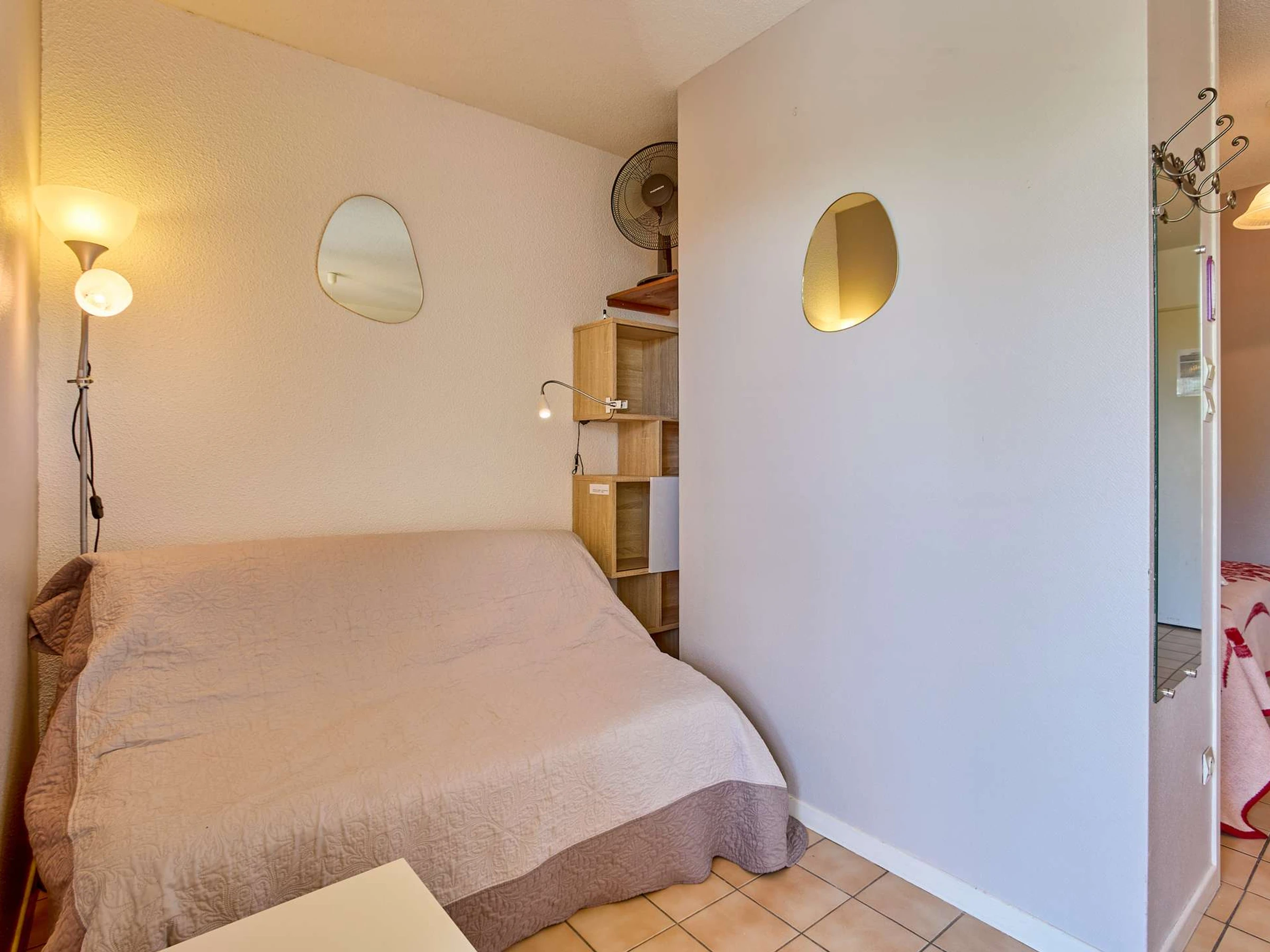 Ce studio cabine rénové, est situé au rez-de-chaussée surélevé du bâtiment D de la résidence des Lotus II, et offre une surface de 29,30m².