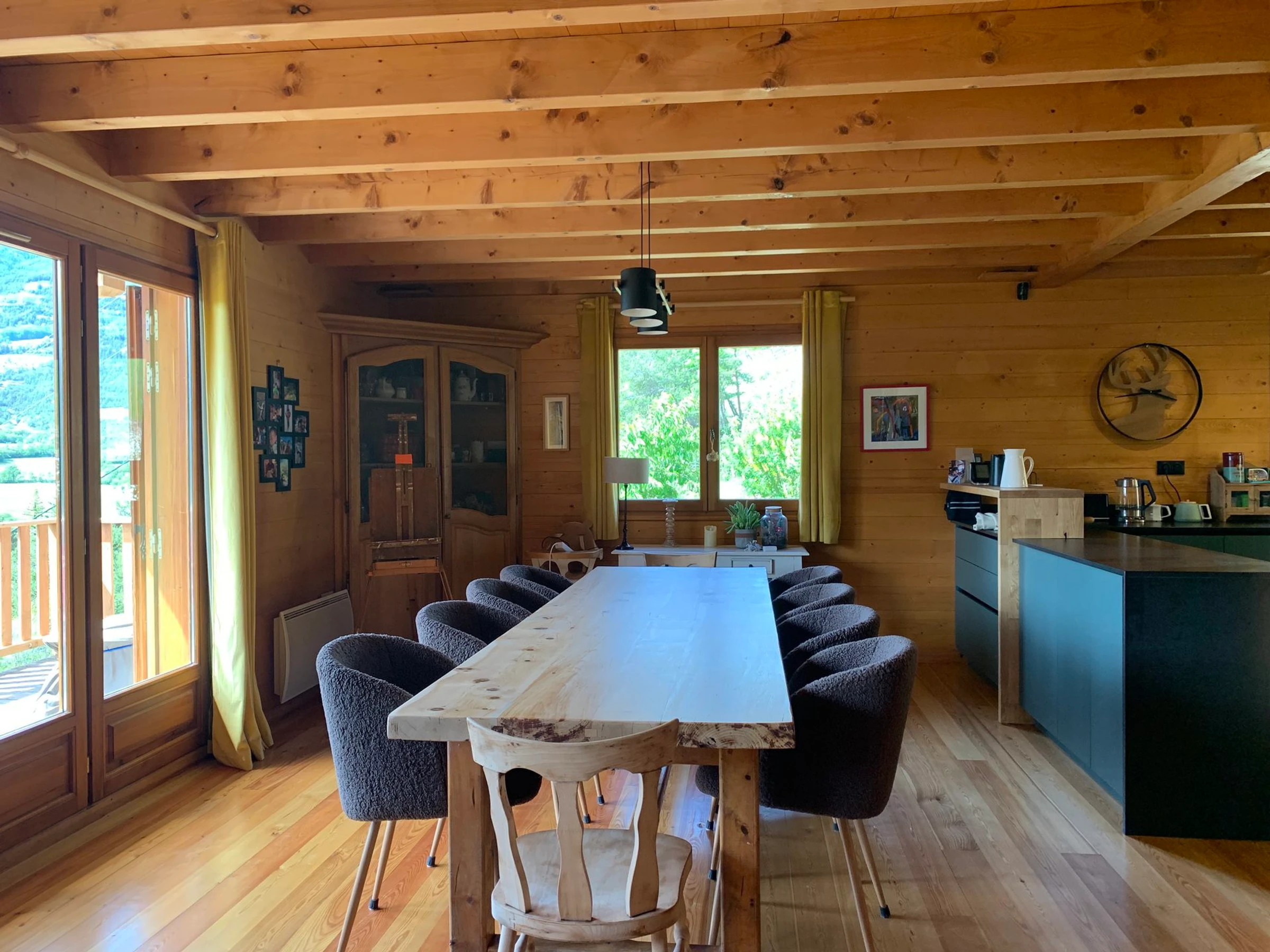 *ESPACE REPAS avec une grande table en bois et des chaises confortable