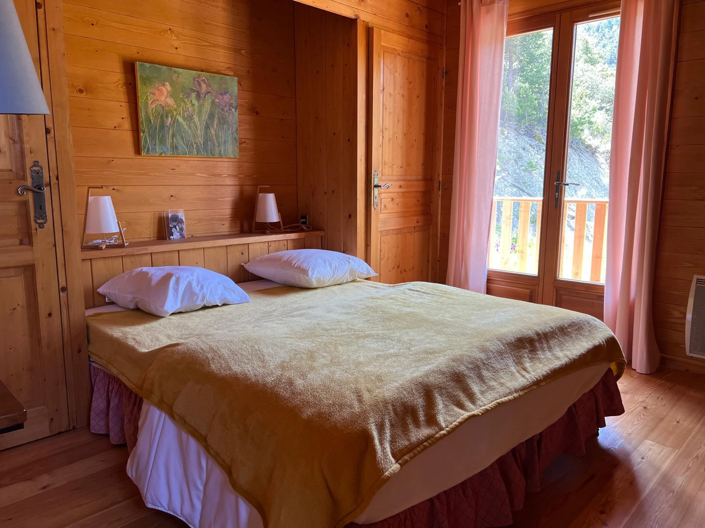 *CHAMBRE 6 : grande chambre avec balcon privatif dominant la Vallée de l'Ubaye. Lit 160*200 avec couette et oreillers carrés. Penderie, commode et bureau.