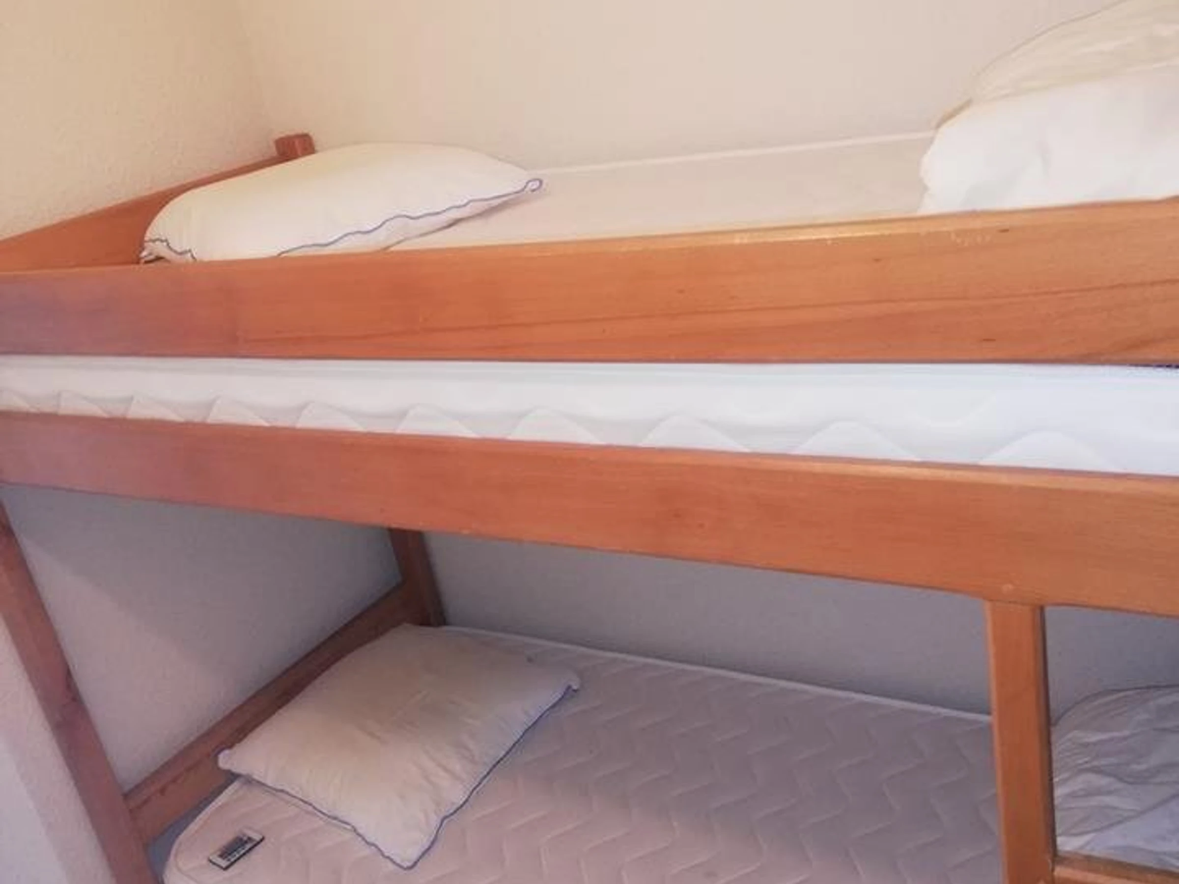 Idéalement situé à 5 min à pied du centre ville. Il se compose d’un coin montagne avec deux lits superposés, une salle de bain, des WC séparés, une cuisine équipée ouverte sur un grand séjour avec canapé lit (clic clac).