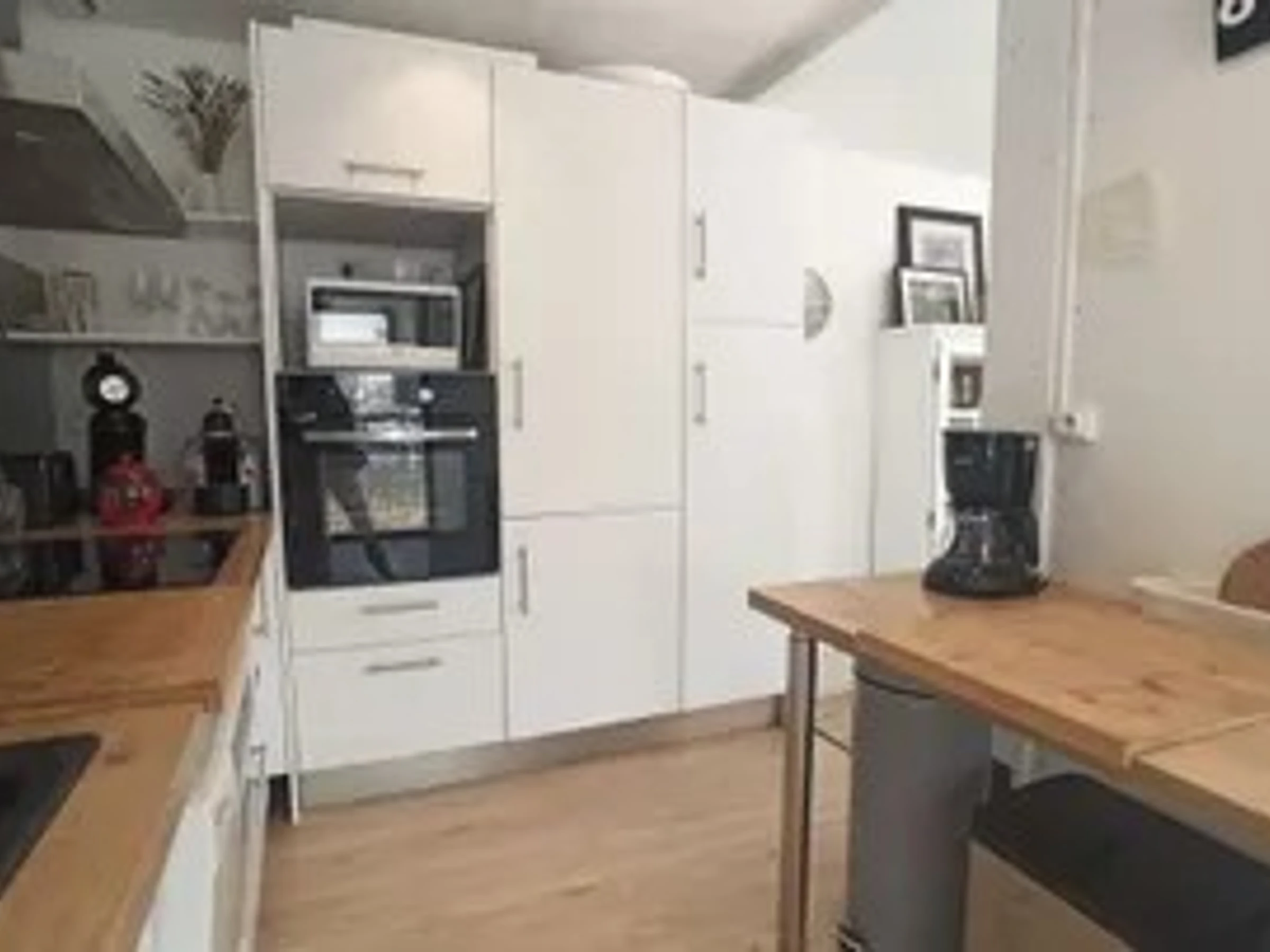 Cuisine américaine semi-ouverte entièrement équipée et aménagée.