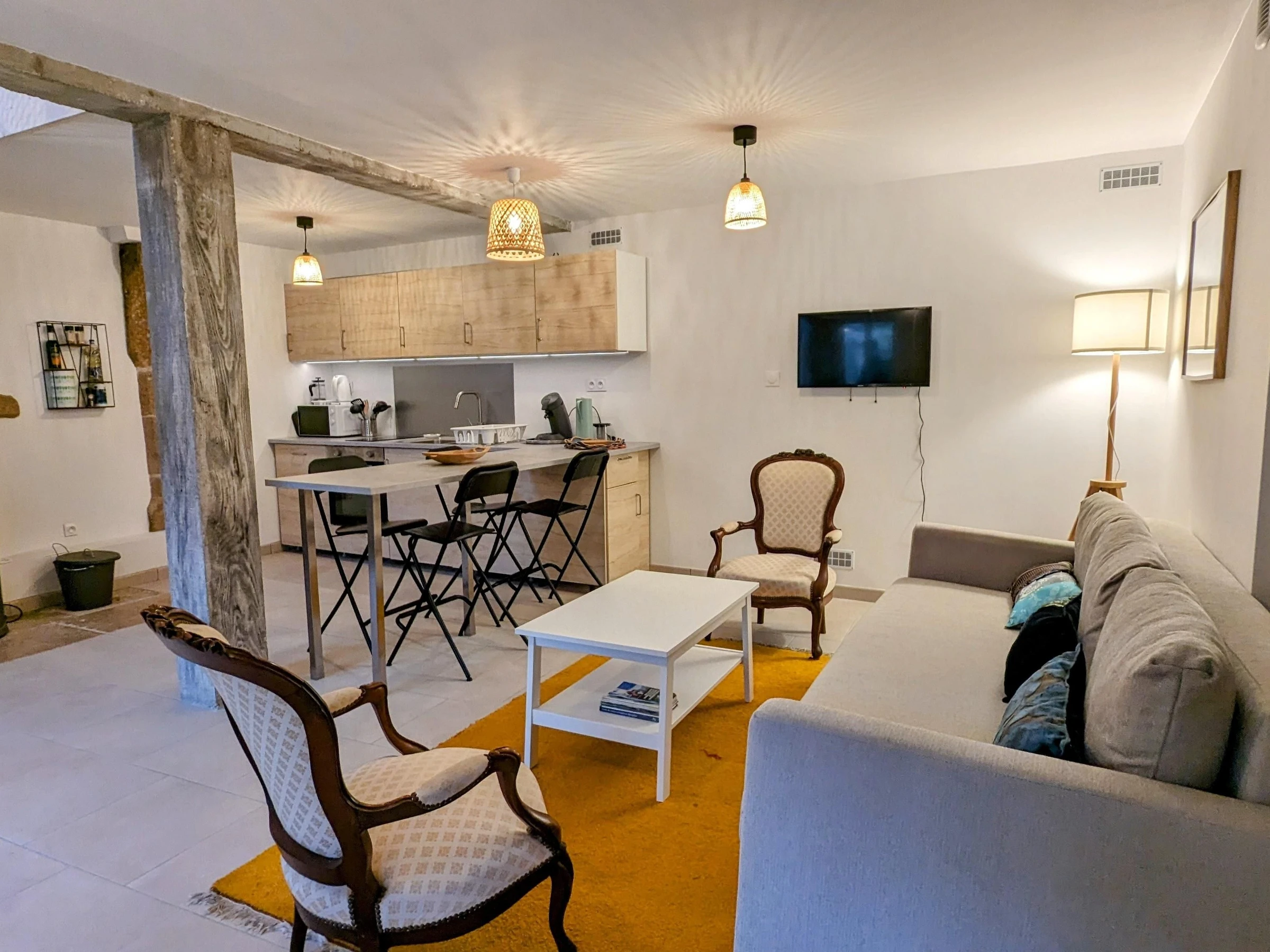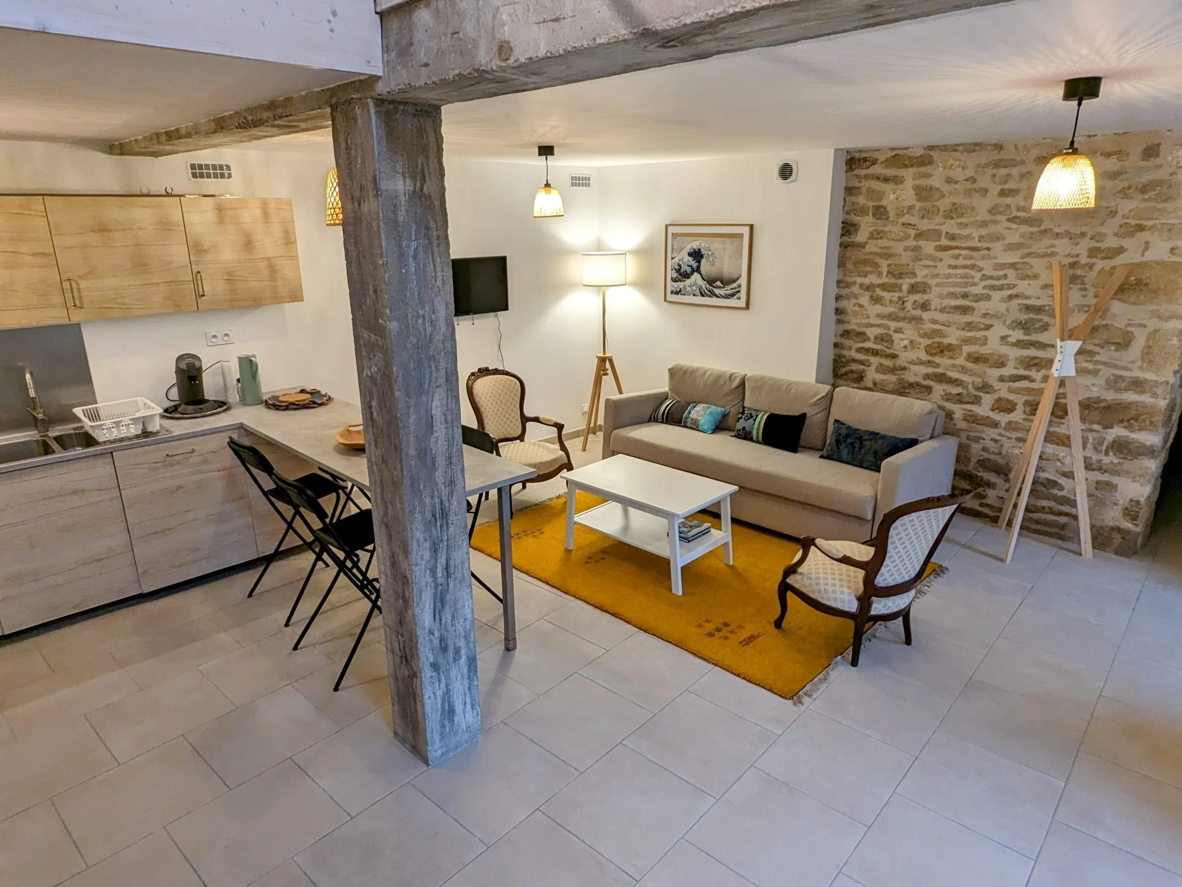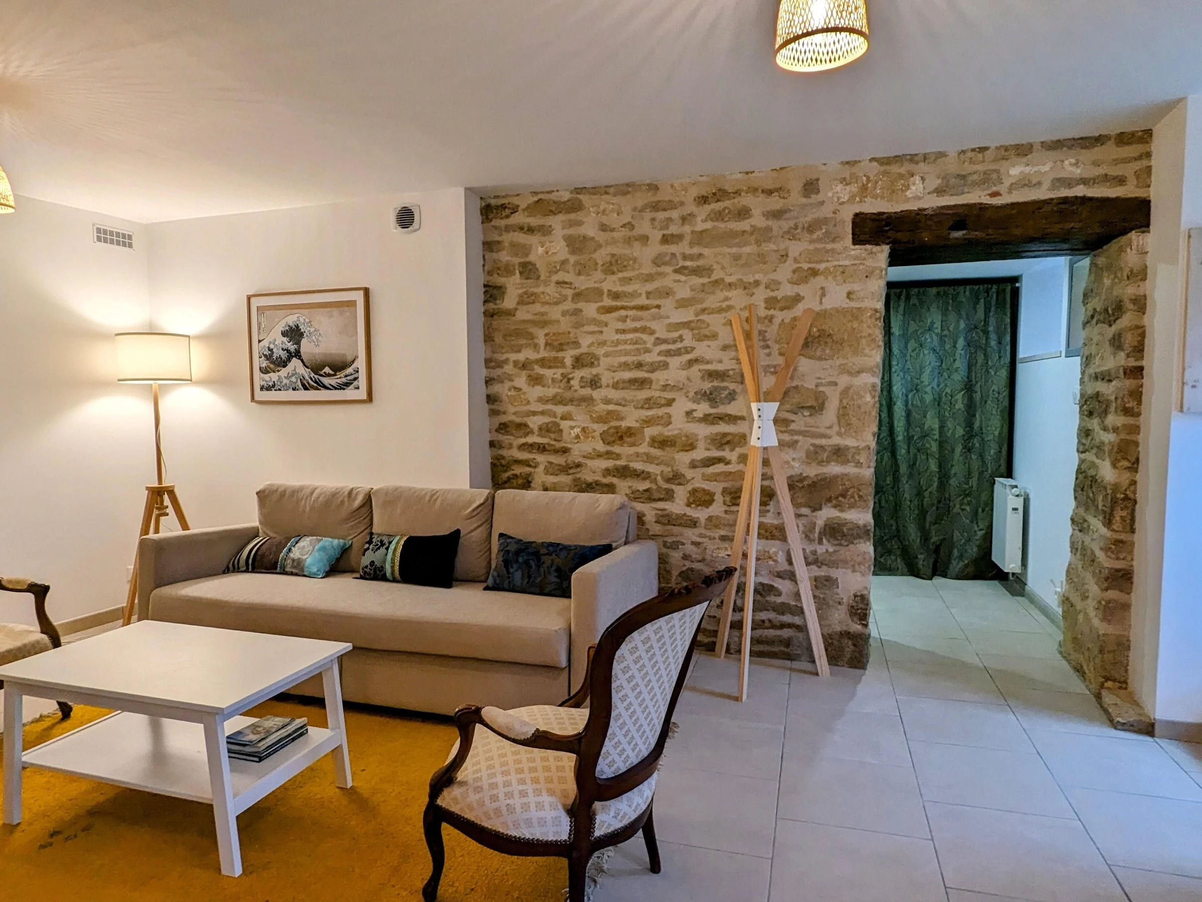 Duplex 4 personnes au pied des falaises Dans un petit village pittoresque au fond d'un vallon en demi-cercle couronné par les falaises, petite maison de caractère, entièrement rénovée avec goût, mitoyenne à la maison des propriétaires. Au rez-de-chaussée : une cuisine entièrement équipée, ouverte sur salon avec canapé convertible, TV et WIFI, une salle d'eau avec grande douche italienne, un WC indépendant. A l'étage, un palier avec bureau, une chambre avec 1 lit de 140 cm et une chambre avec 2 lits de 80 jumelables. Pas de réel extérieur (petite cour non privative de 30 m² non clos - une petite table et chaises à disposition) et façade en cour d'aménagement. Stationnement aisé dans la rue (parking public à quelques pas du gîte).