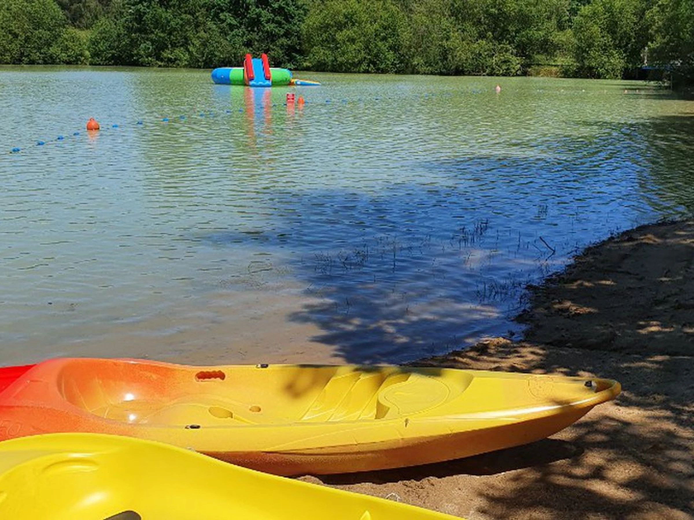 - paddle, canou00eb kayak, pu00e9dalo, lac privatif ru00e9servu00e9 u00e0 la clientu00e8le du camping avec activitu00e9s et structures gonflables sur l'eau.