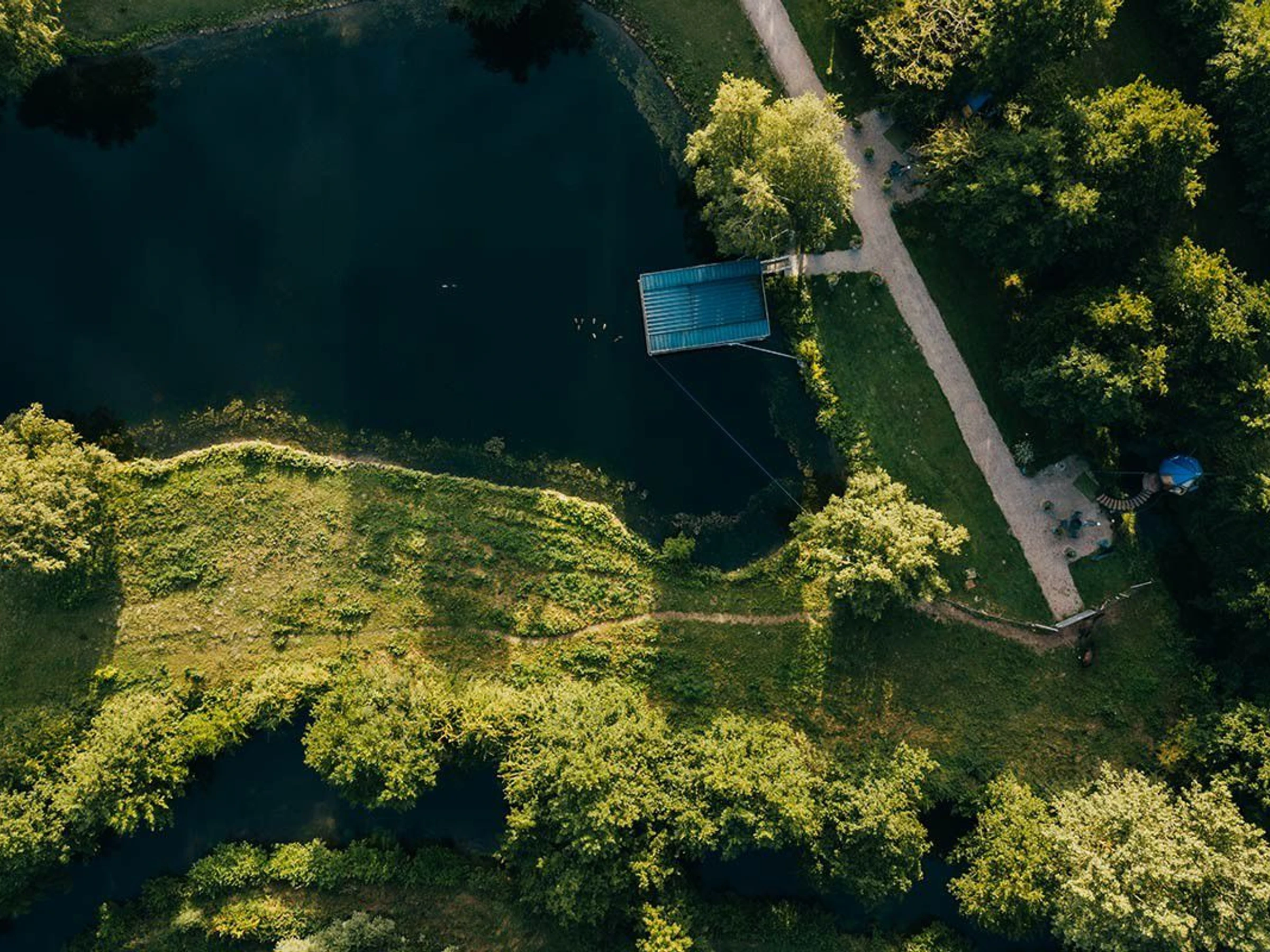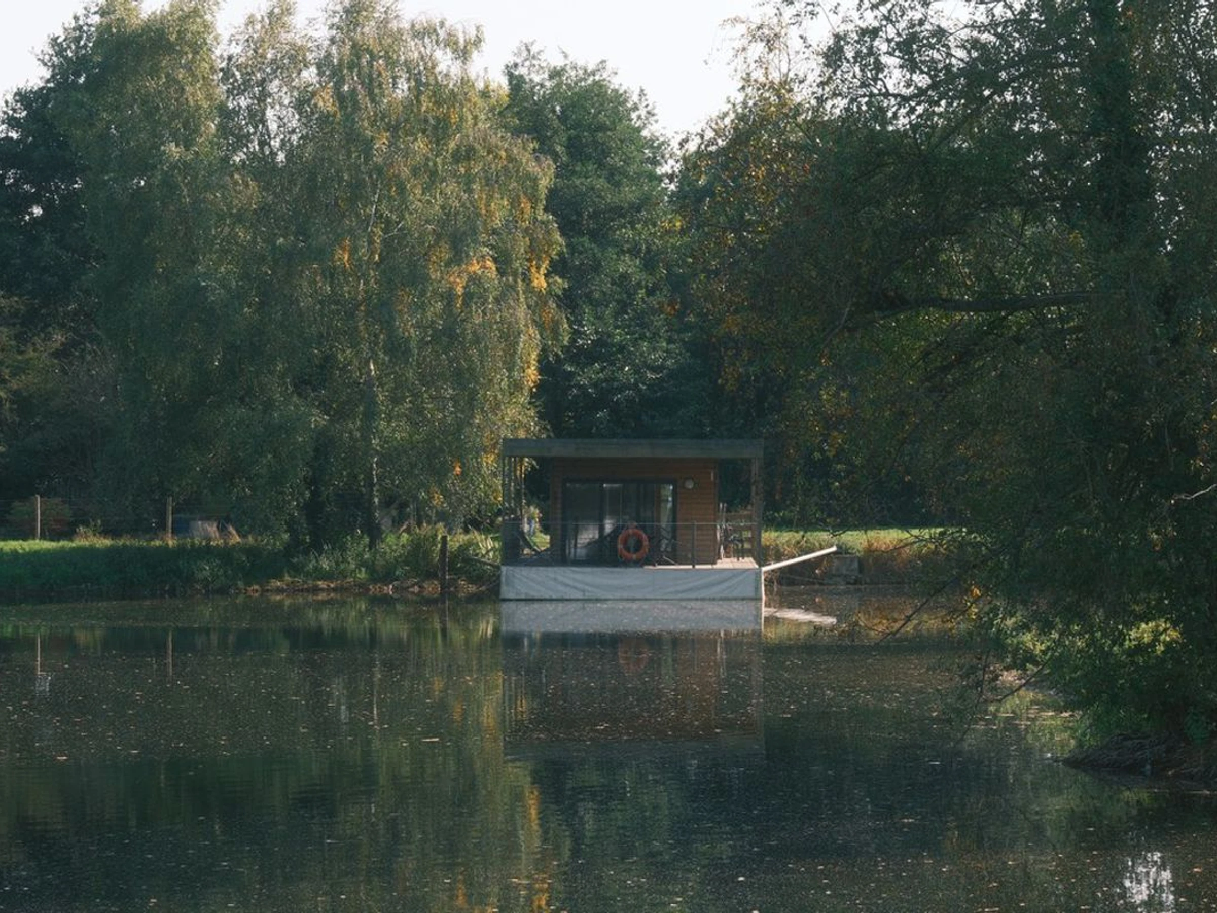 - Paillote sur la plage amu00e9nagu00e9e au bord de l'u00e9tang,