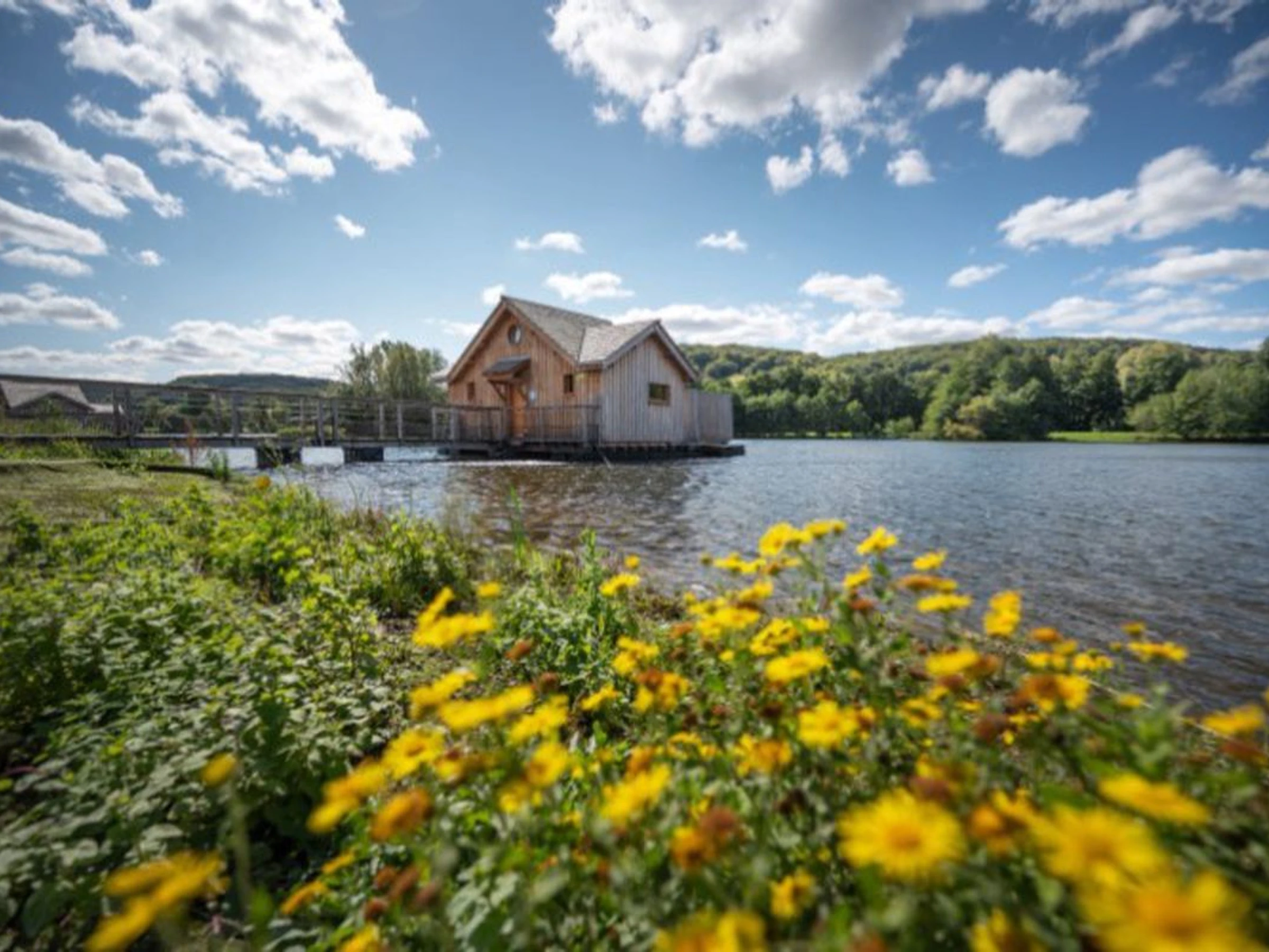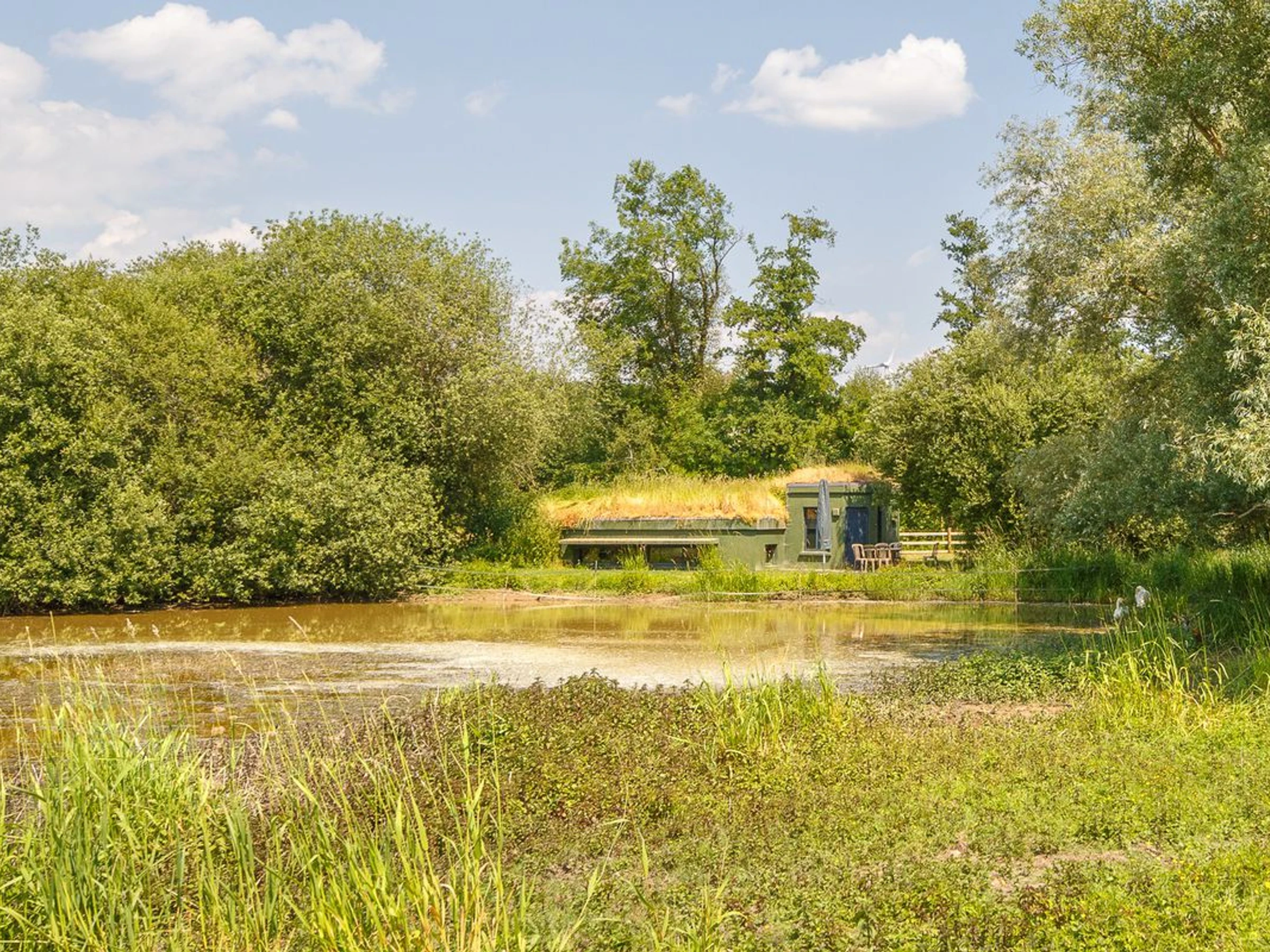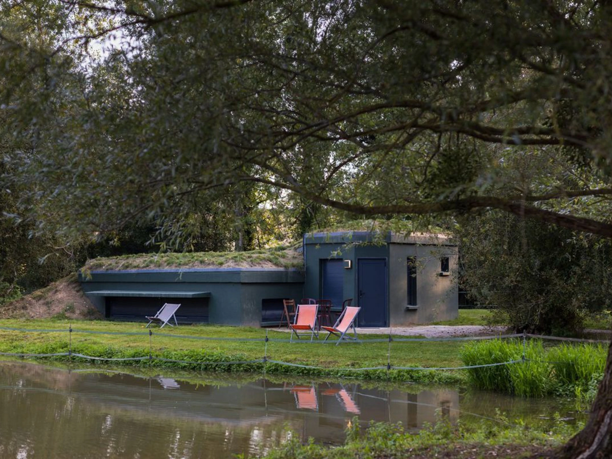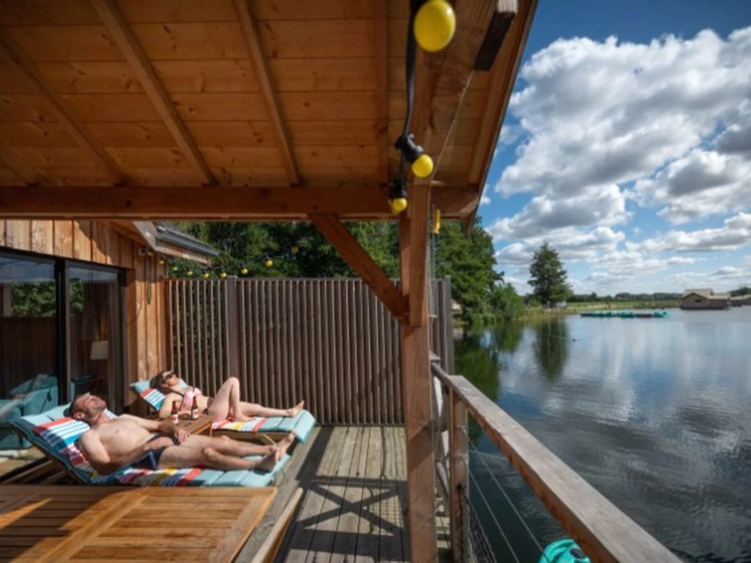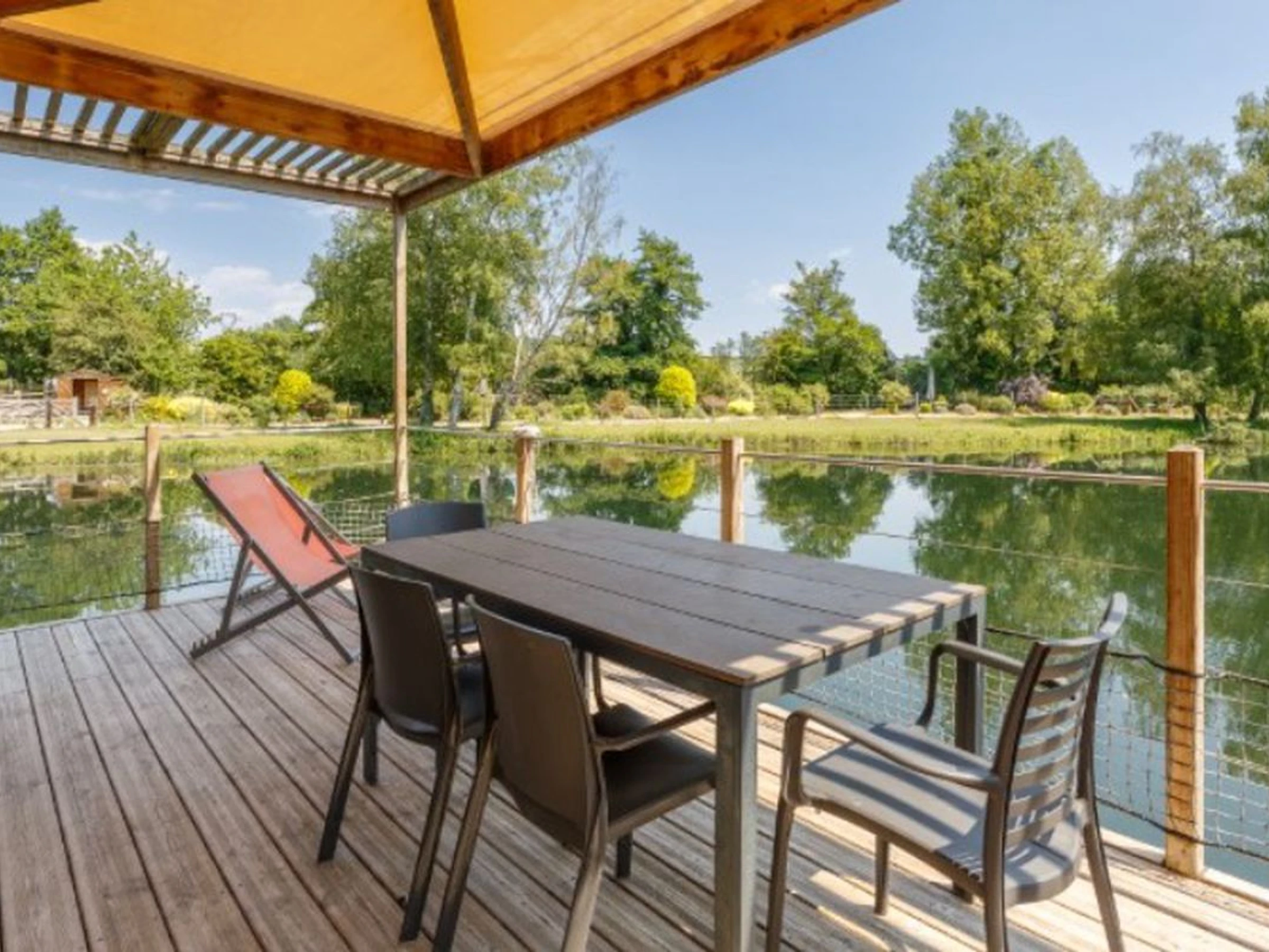 - Paillote sur la plage amu00e9nagu00e9e au bord de l'u00e9tang,