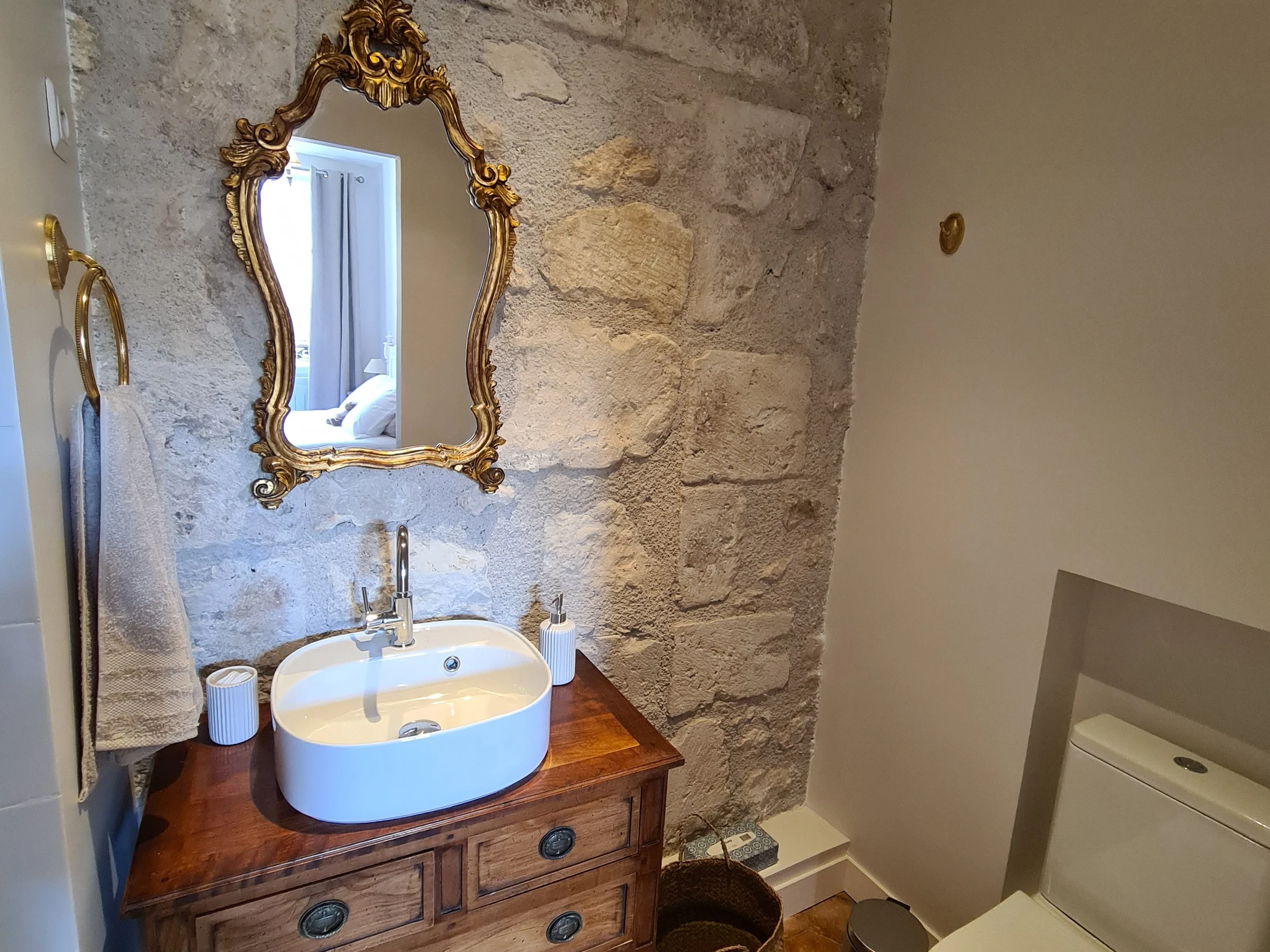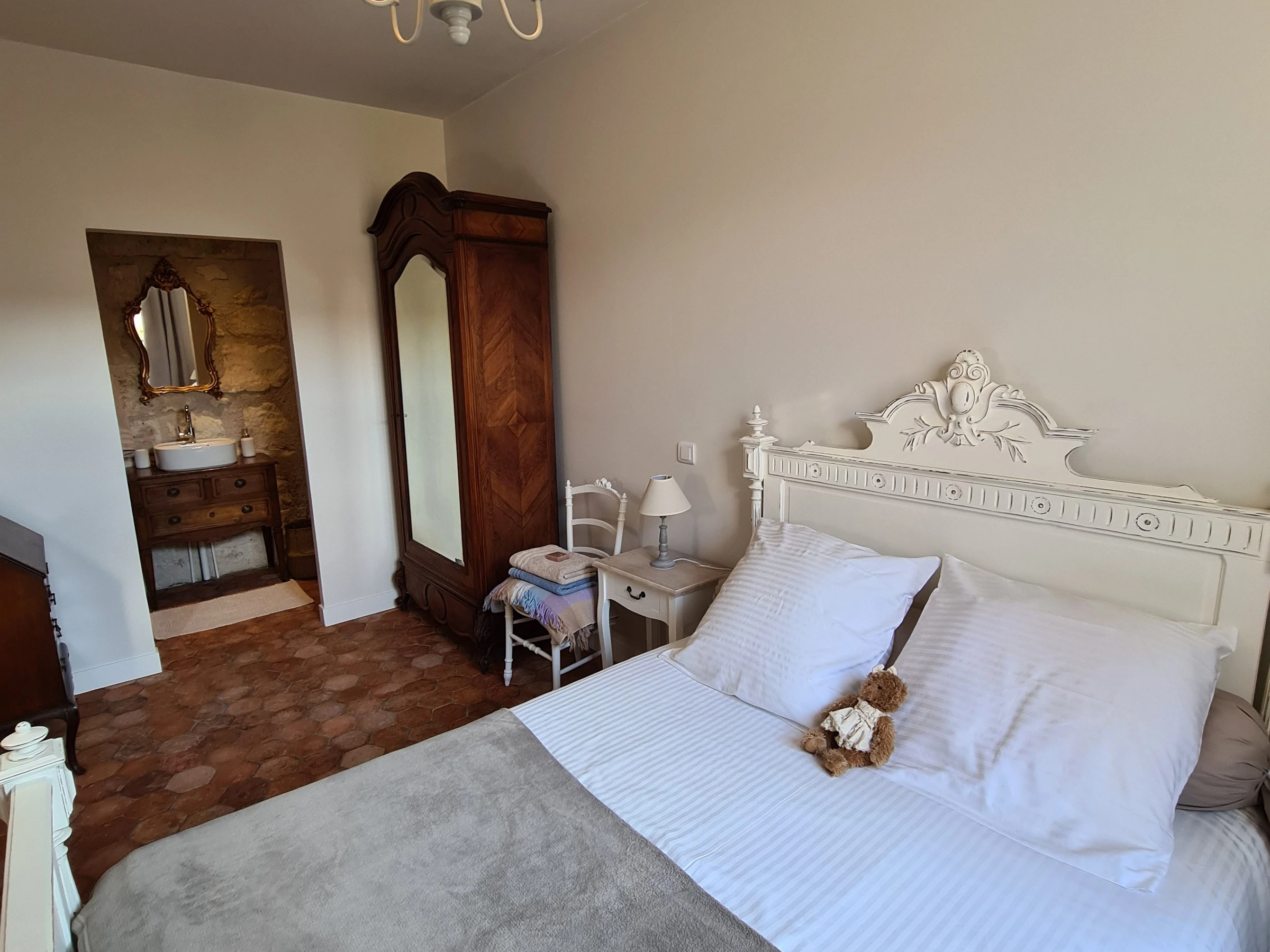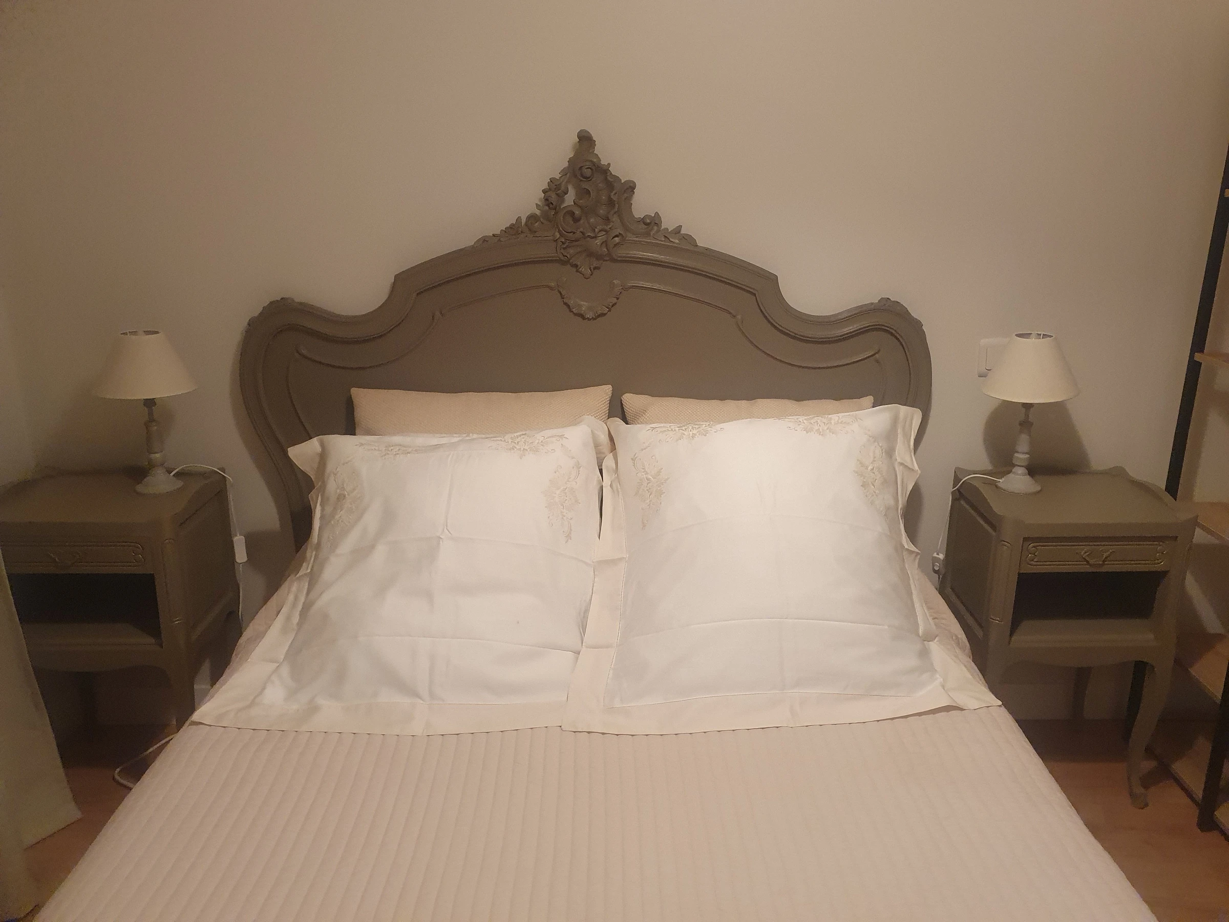Au 1er étage, une magnifique chambre équipée d'un lit de 160 cm et sa salle de bain (douche et baignoire) wc et une autre chambre avec un couchage de 140 cm et sa salle d'eau et wc.