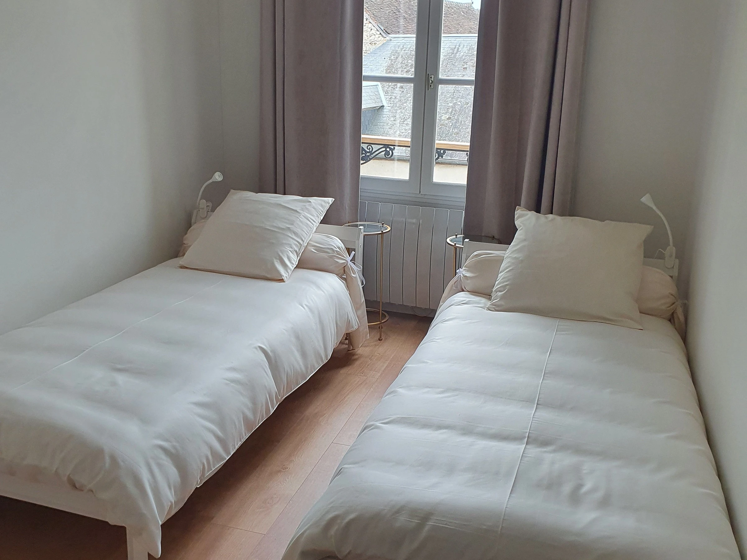 Au 2ème étage, deux chambres avec lits de 140 cm et leurs salle d'eau, wc sur le palier, ainsi qu'une autre chambre avec 2 lits 90 avec salle d'eau et wc. Toutes les chambres sont équipées de prises internet.