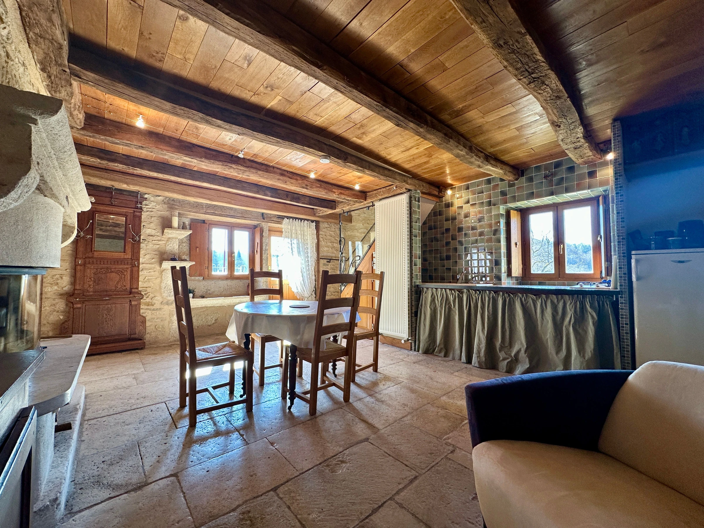 Le second gîte à quelques mètre à pied, est composé en rez de chaussée d'une pièce de vie : espace kitchenette avec évier, plaques de cuisson (2 feux gaz), frigo, micro-ondes et plateau de courtoisie (bouilloire et cafetière). Cheminée (bois sur demande : 5€/panier). Spacieuse de bains avec WC et bidet. Grande chambre de plain pied (lit 160cm). A l'étage, en mezzanine : 3 lits simples et une salle d'eau attenante avec WC.