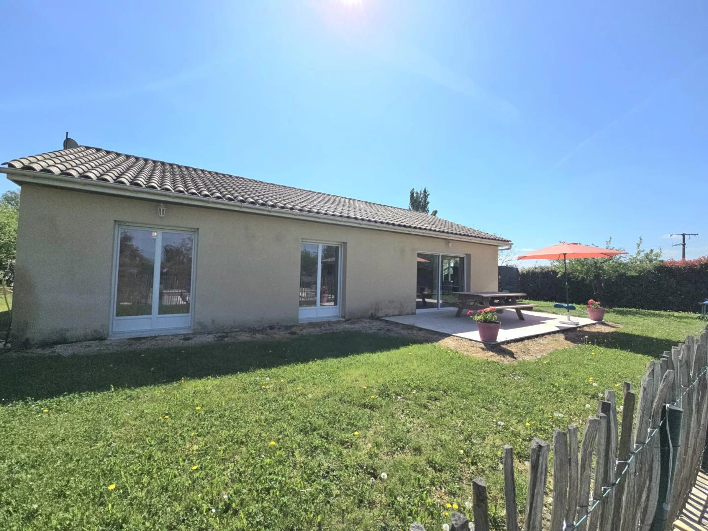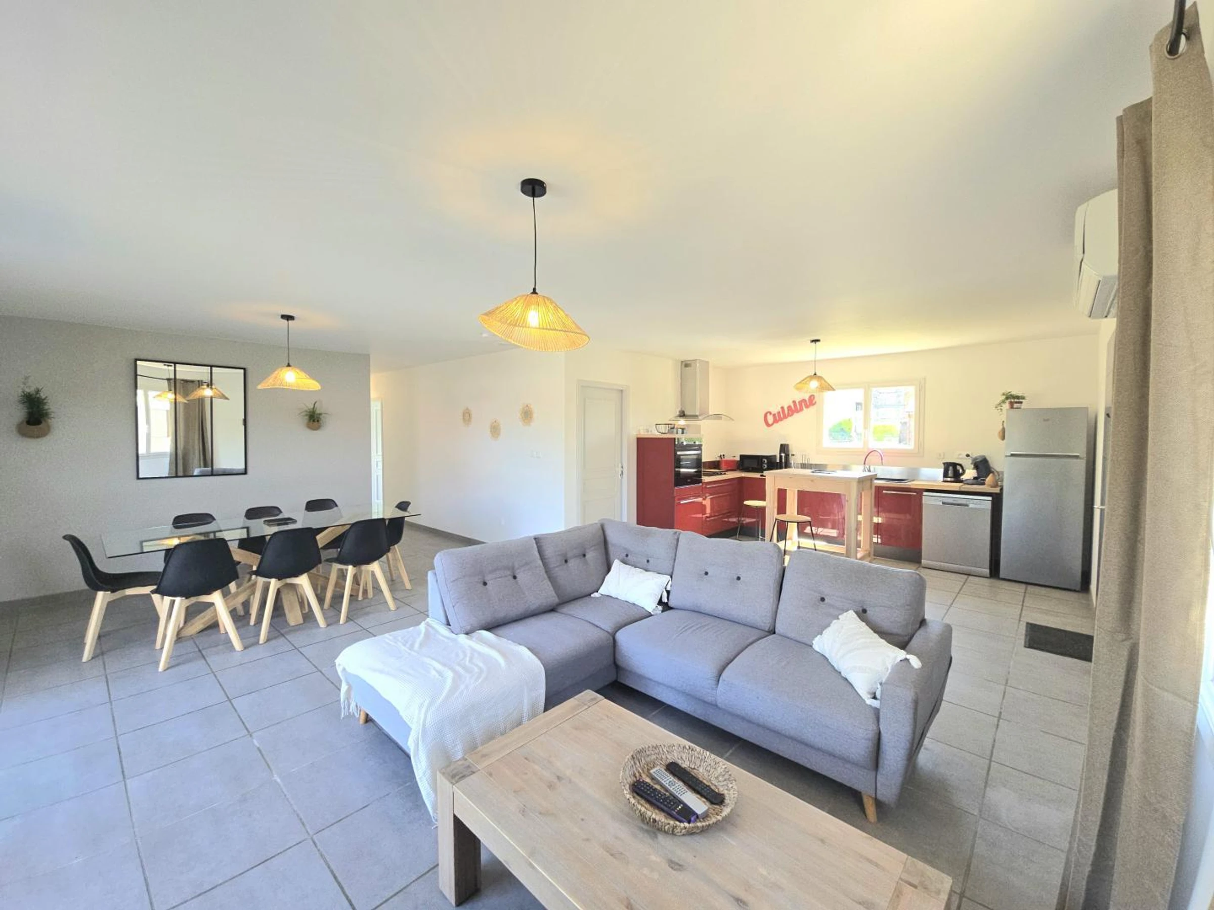 Maison traditionnelle dans une impasse. Vaste pièce principale équipée d'un espace salon, TV, internet, salle à manger et cuisine (lave-vaisselle, vitrocéramique, four, combiné ), pièce disposant de la climatisation réversible.