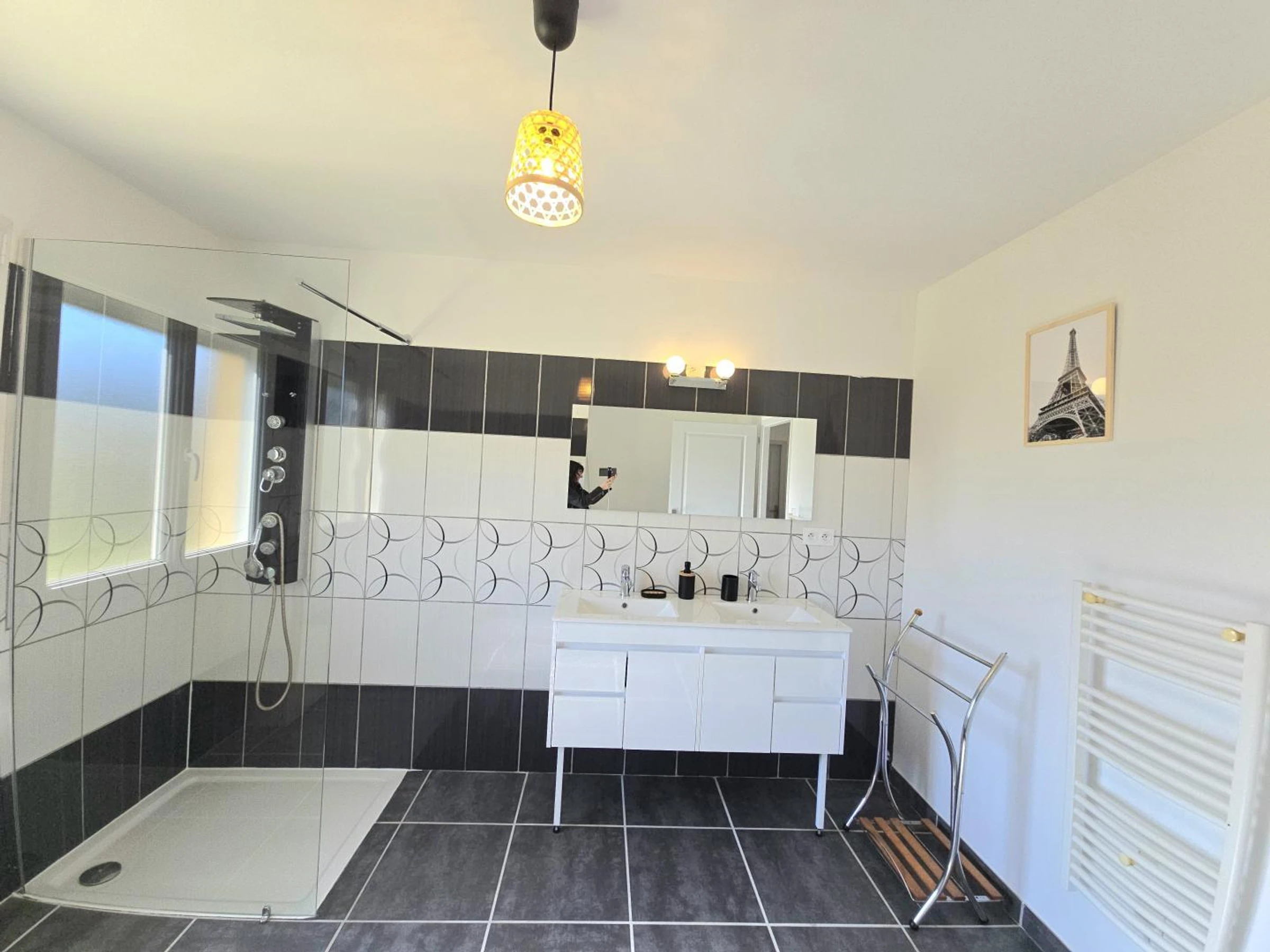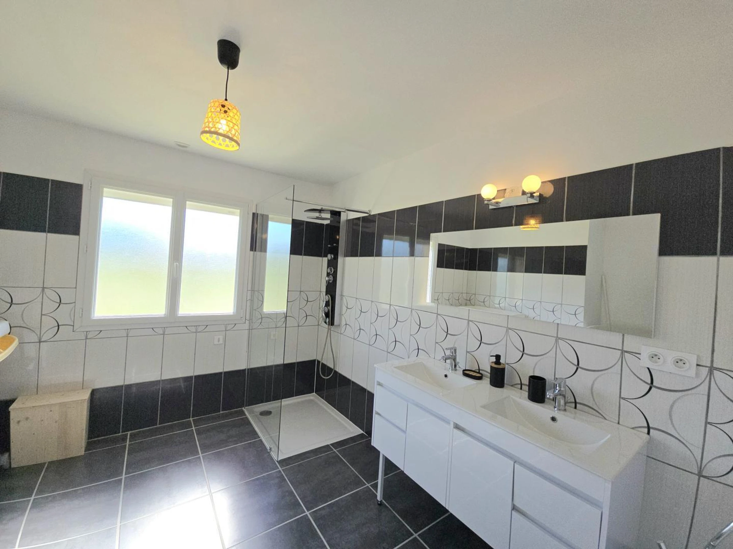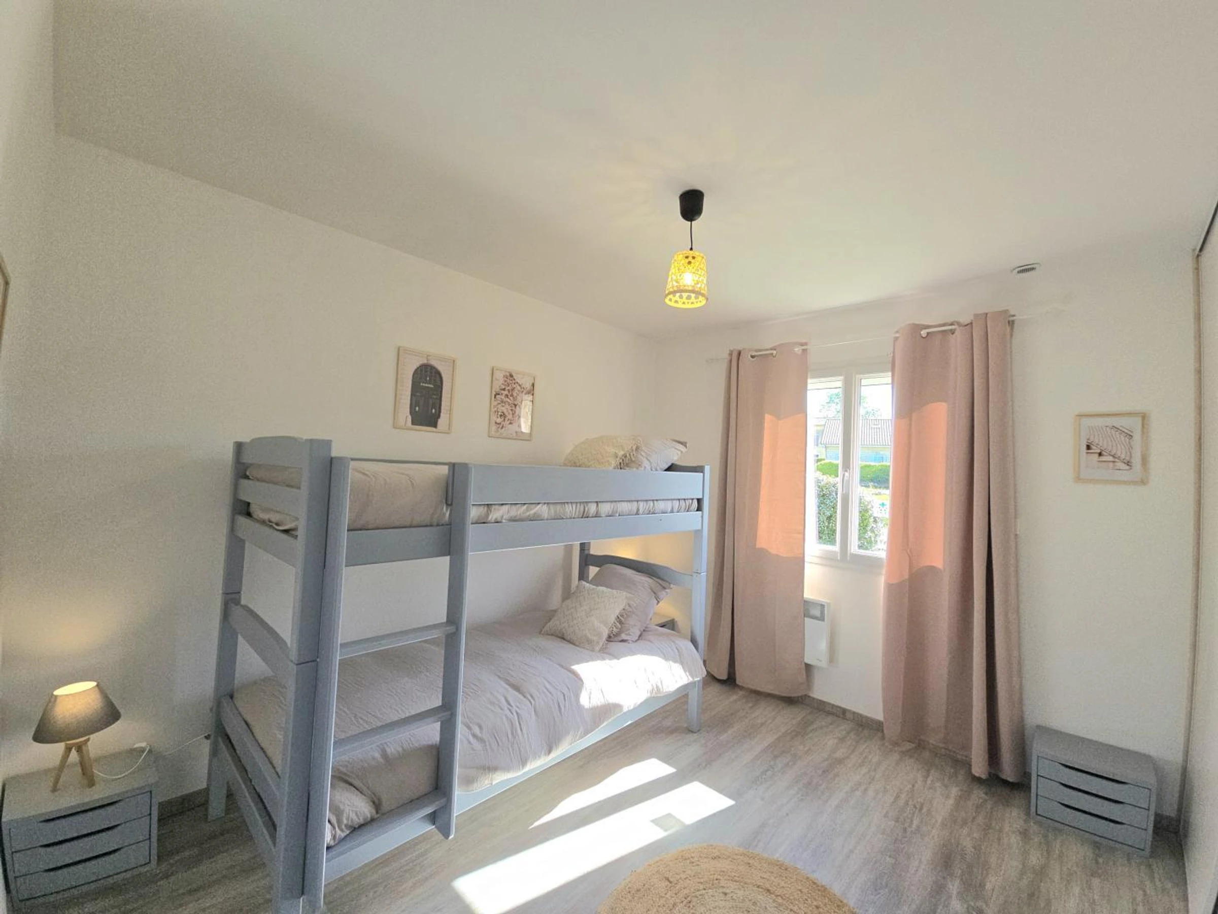 Par le couloir, une salle d'eau avec douche à l'italienne, une vasque. Les 3 chambres, dont deux lits de 140 et une avec des lits de 90 superposés. WC indépendants.