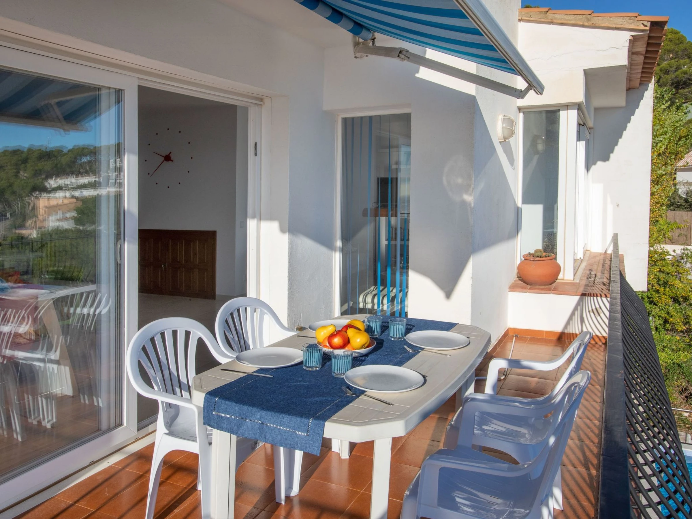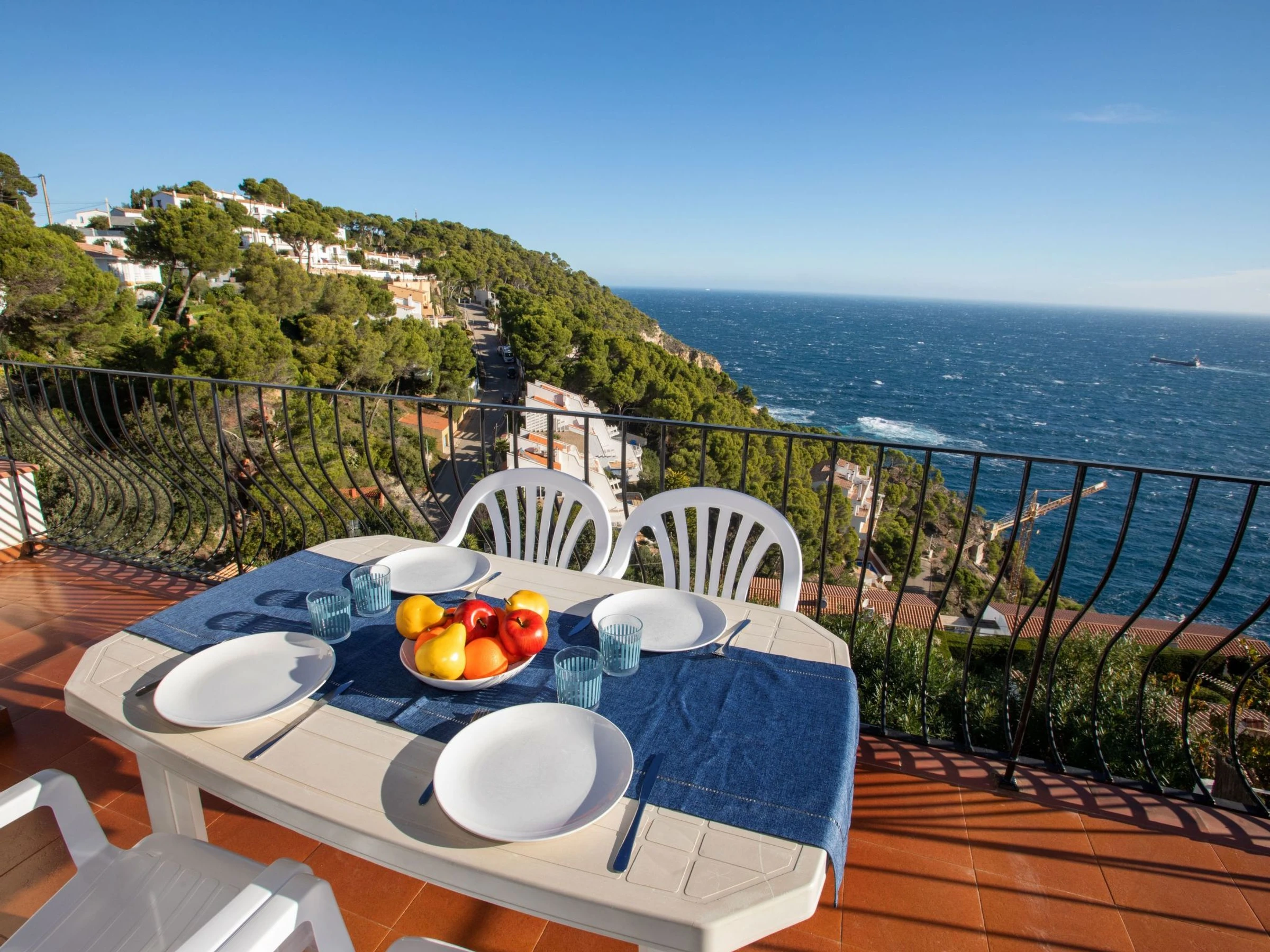 "La Sardana", maison 5 pièces 110 m2 sur 3 niveaux. Aménagement fonctionnel: séjour/salle à manger avec cheminée (uniquement à titre de décoration), TV. Sortie sur la terrasse. Cuisine (four, lave-vaisselle, 4 plaques vitrocéramiques, grille-pain, bouilloire électrique, micro-ondes, congélateur, cafetière électrique). Bain/WC, WC séparé. Chauffage. À l'étage inférieur: 1 chambre avec 2 lits (90 cm, longueur 190 cm). 1 chambre avec 1 grand-lit (135 cm, longueur 190 cm), douche/WC. 1 chambre avec 1 grand-lit (135 cm, longueur 190 cm). 1 chambre avec 2 lits (90 cm, longueur 190 cm). Bain/WC. Petite terrasse. Meubles de terrasse, barbecue, chaises longues. Très belle vue panoramique sur la mer. A disposition: lave-linge, fer à repasser, chaise haute pour enfant, lit bébé, sèche-cheveux. Internet (Connexion WIFI, gratuit). Adapté(e) aux familles. [hidden] // Reg. Nr.: ESFCTU00001701400000479100000000000000000[hidden]0