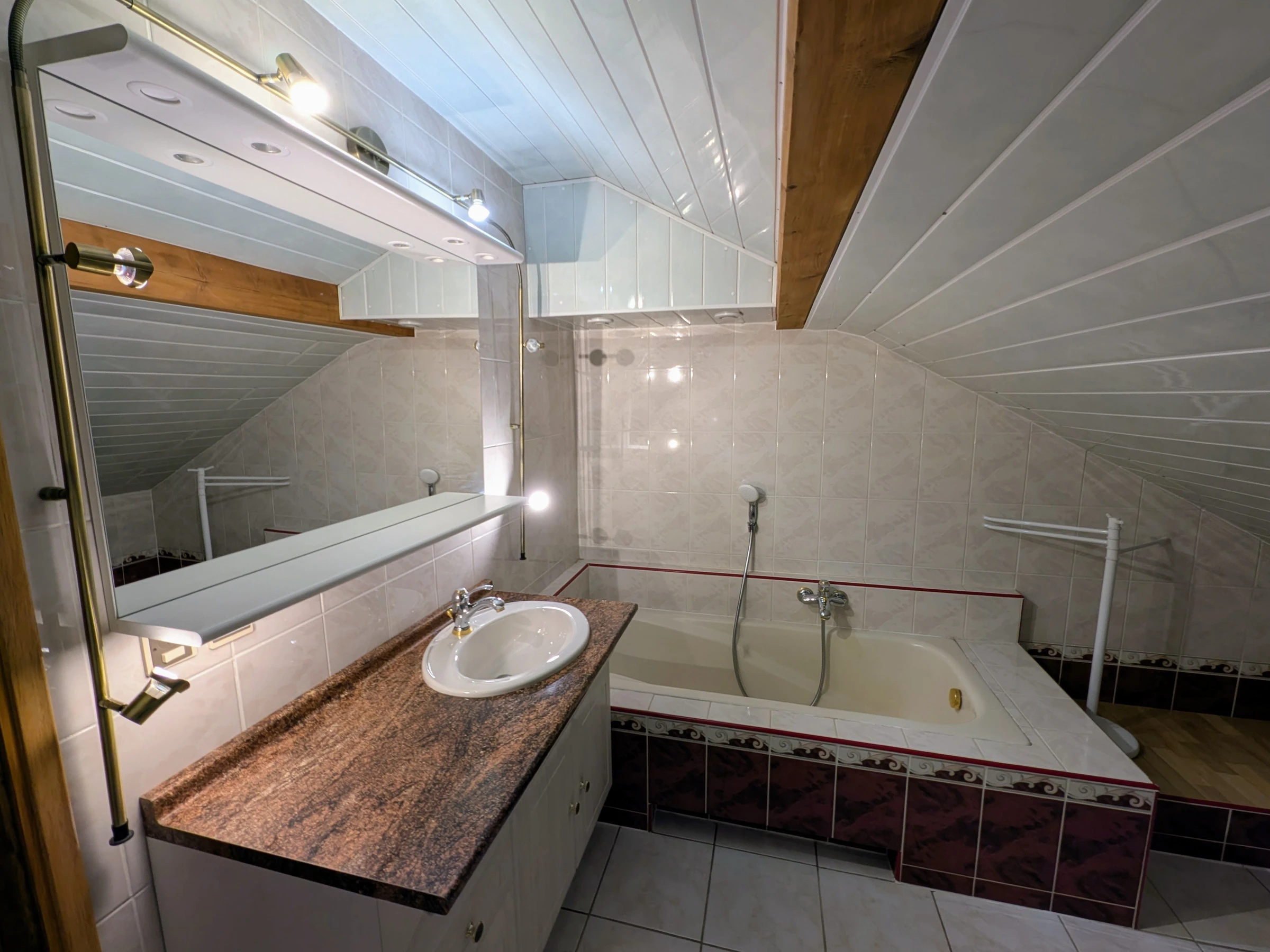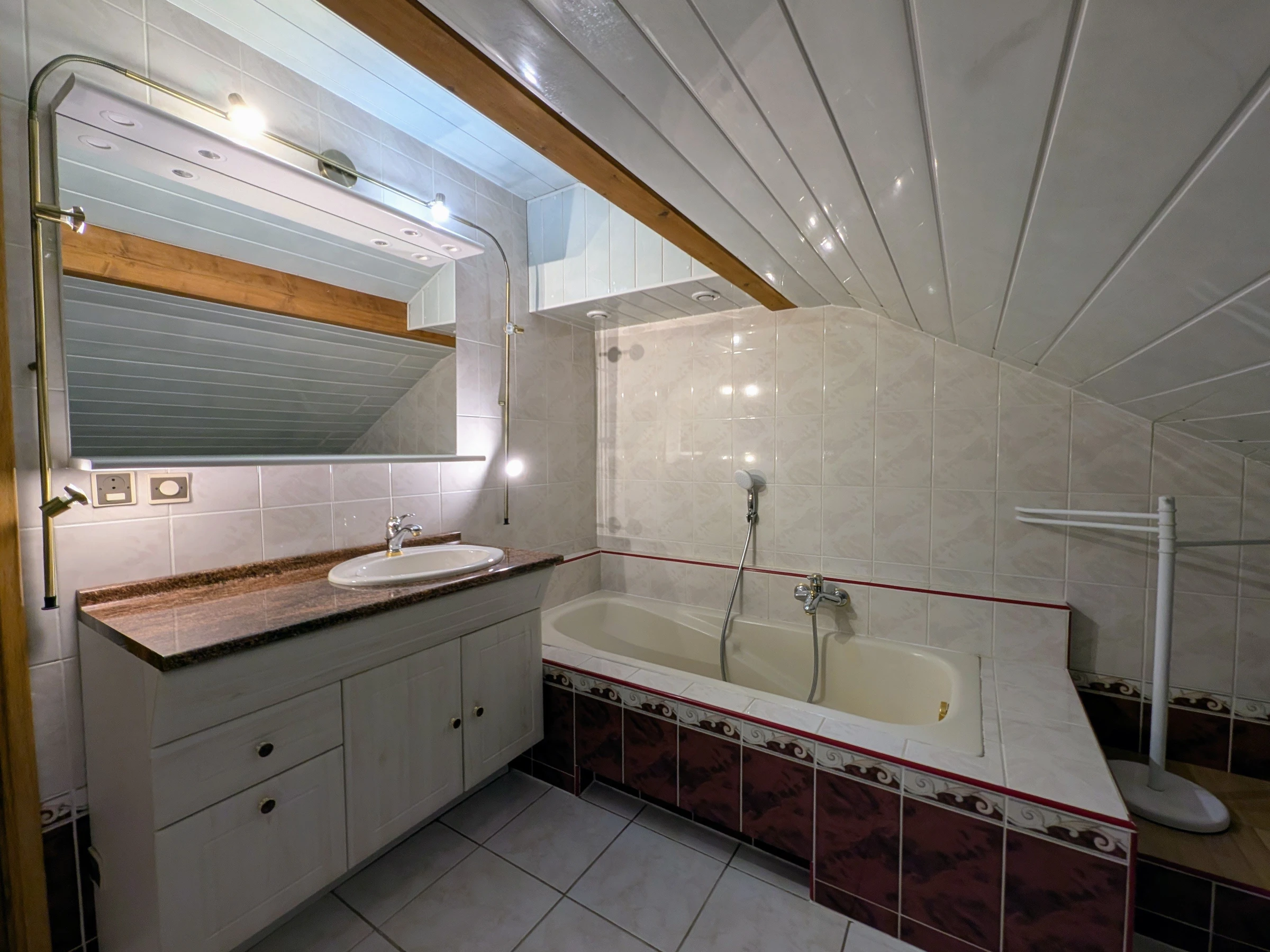 – Une salle d’eau avec douche, lavabo et lave-linge.
