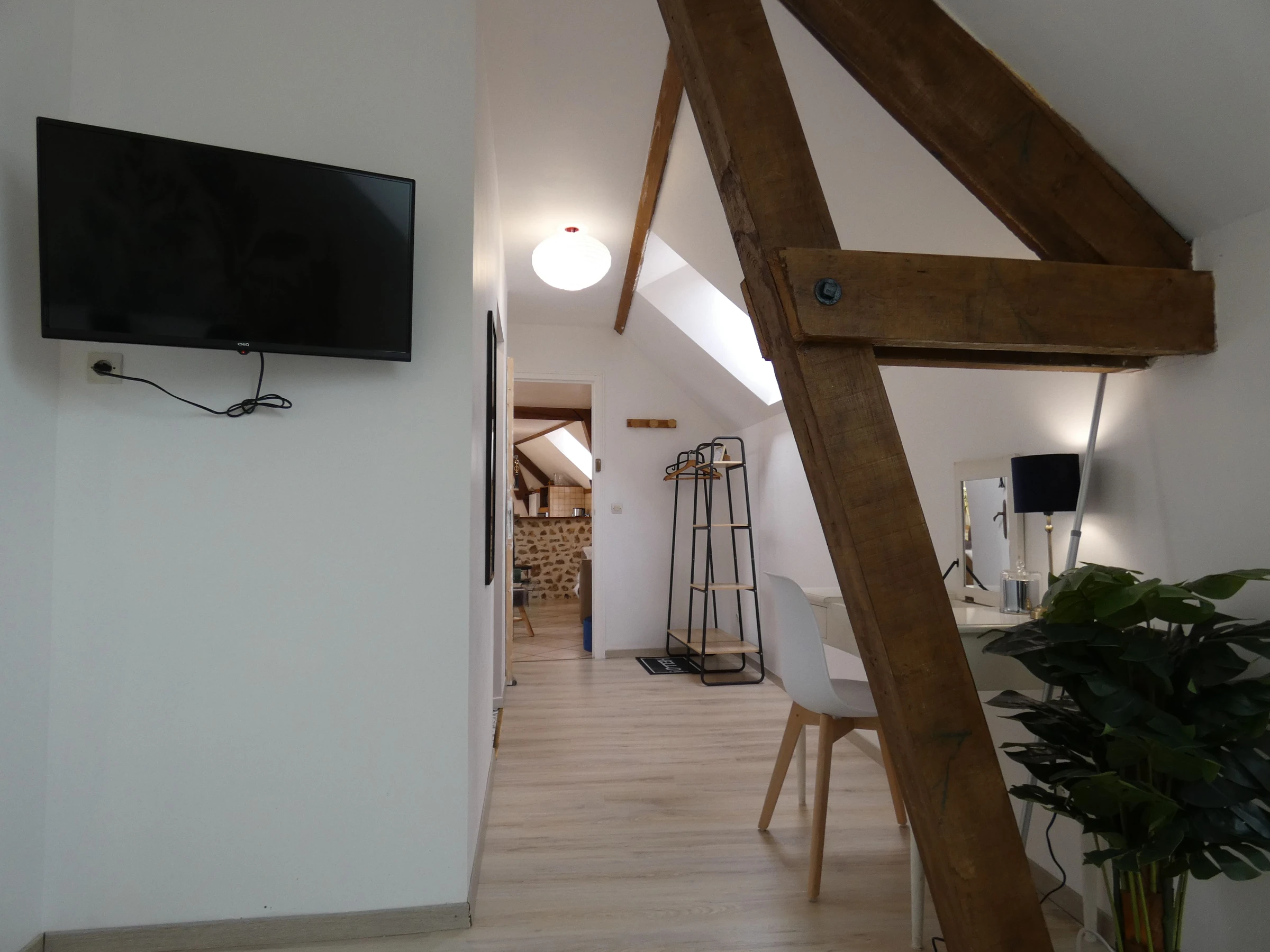 Le gîte est composée d'une entrée au rez-de-chaussée avec un coin salon et jeux (babyfoot).
