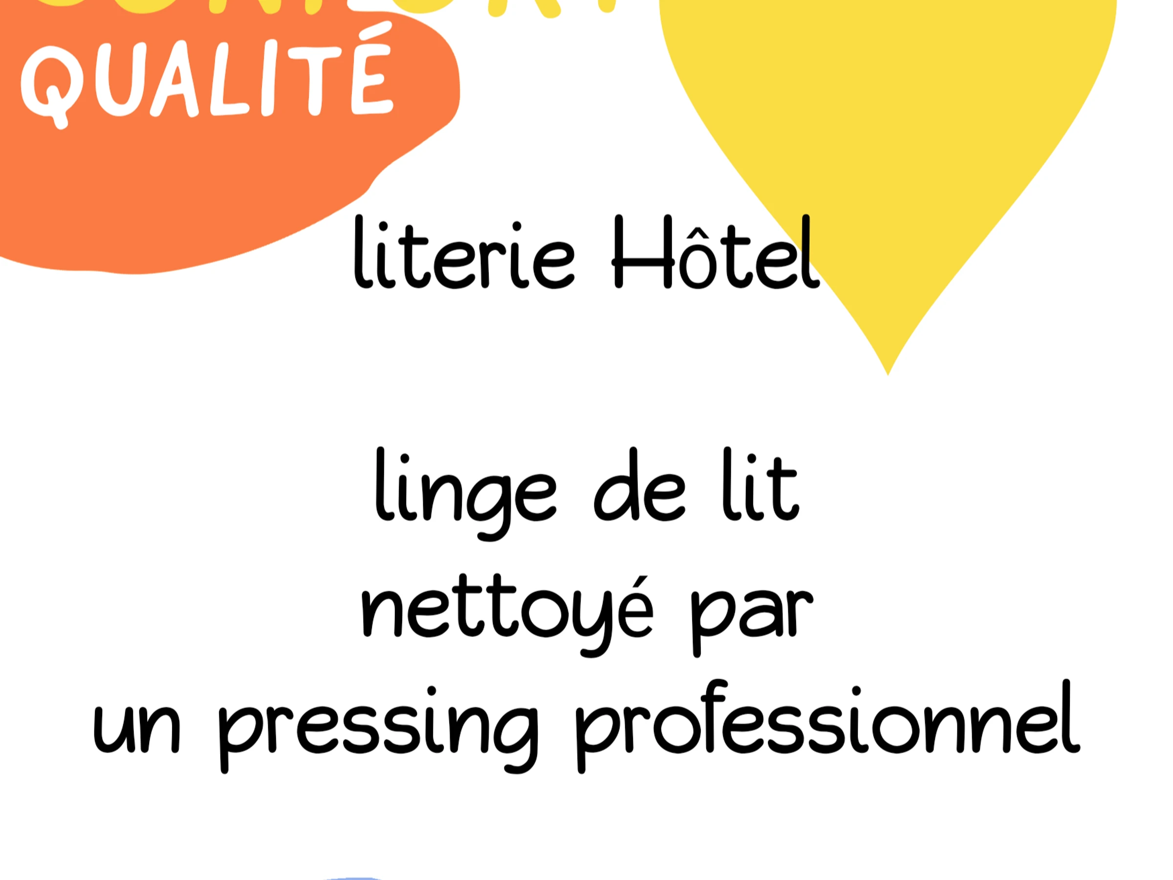 - Pour votre confort, les draps et les serviettes de toilettes sont inclus et sont confiés à un pressing pour leur nettoyage.