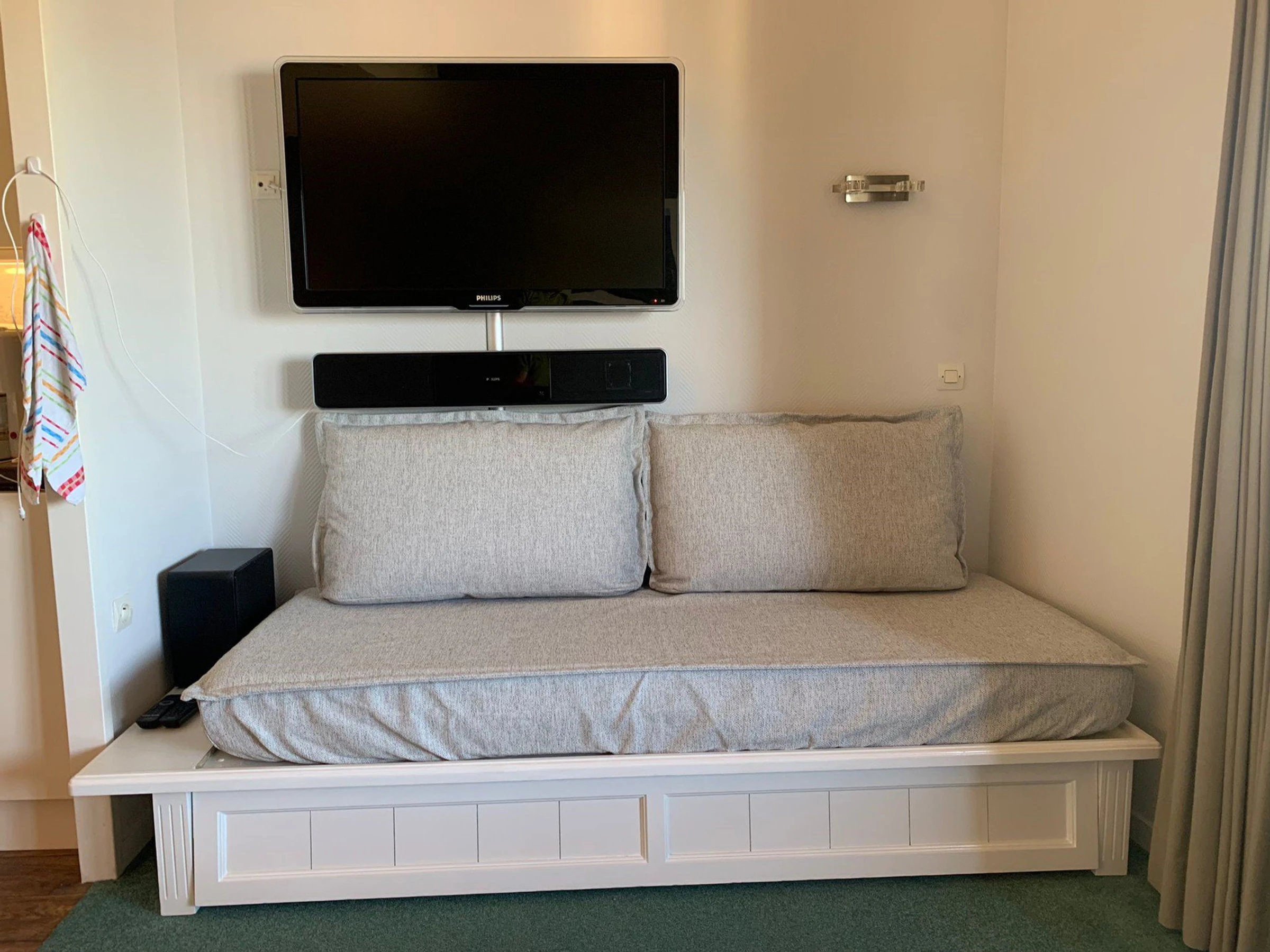 Séjour : 2 lits 1 personne et 1 lit gigogne, 1 téléviseur écran plat + lecteur DVD