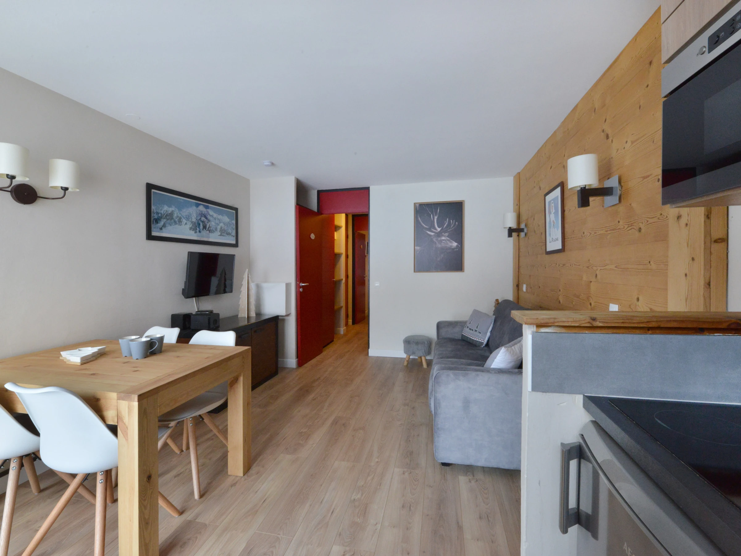 Appartement au pied des pistes composé de 2 pièces 4 personnes de 28.50 m², accés à une terrasse extérieure non fermée.