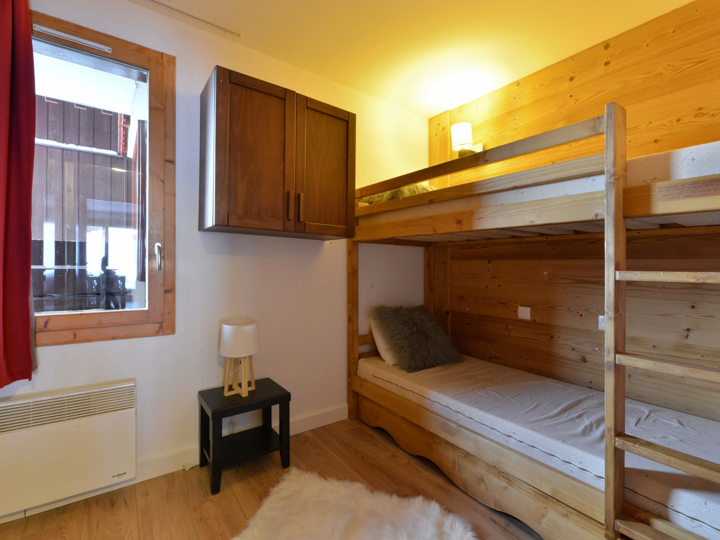 Chambre : 2 lits superposés + 1 lit gigogne avec 1 échelle (pas possible de faire un lit double)