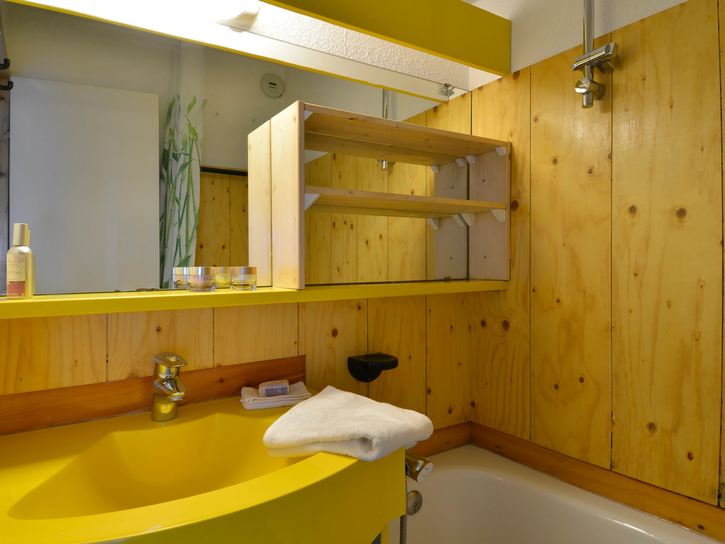 Il est situé au sud ouest et au 5ème étage avec un balcon et vue sur les pistes.