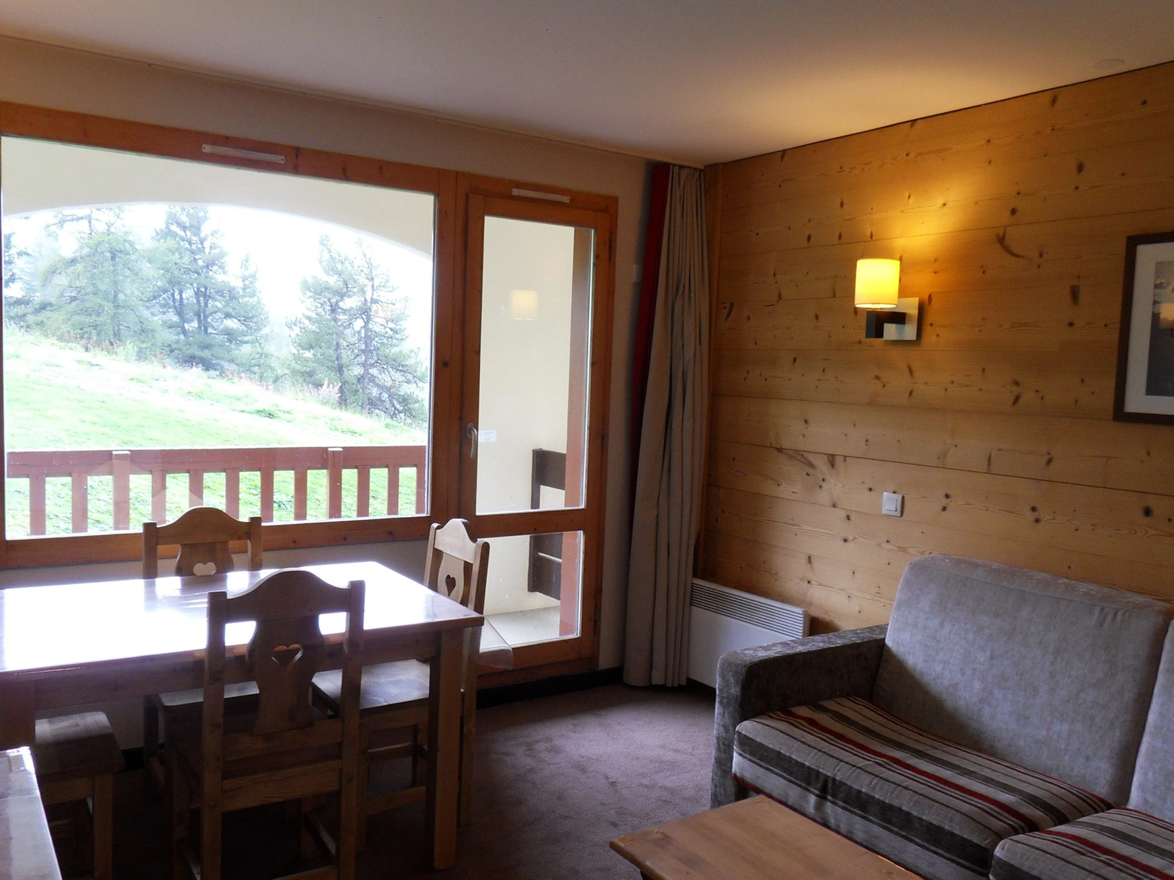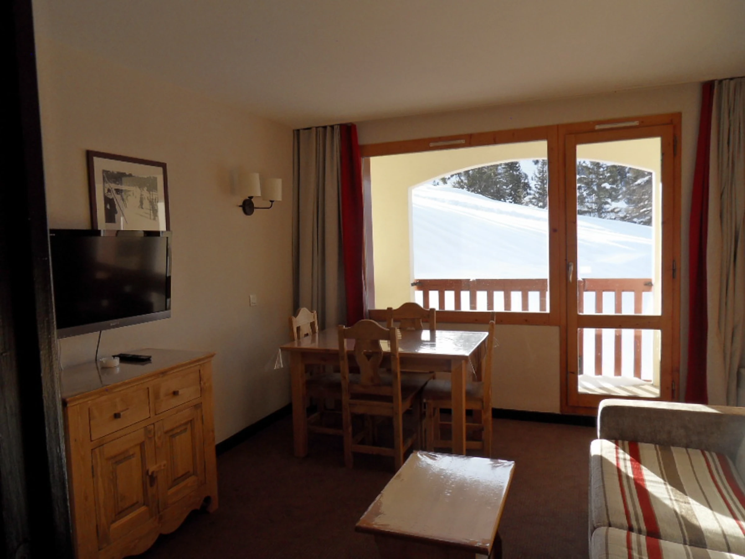 Cet appartement a vue sur les pistes avec un balcon.