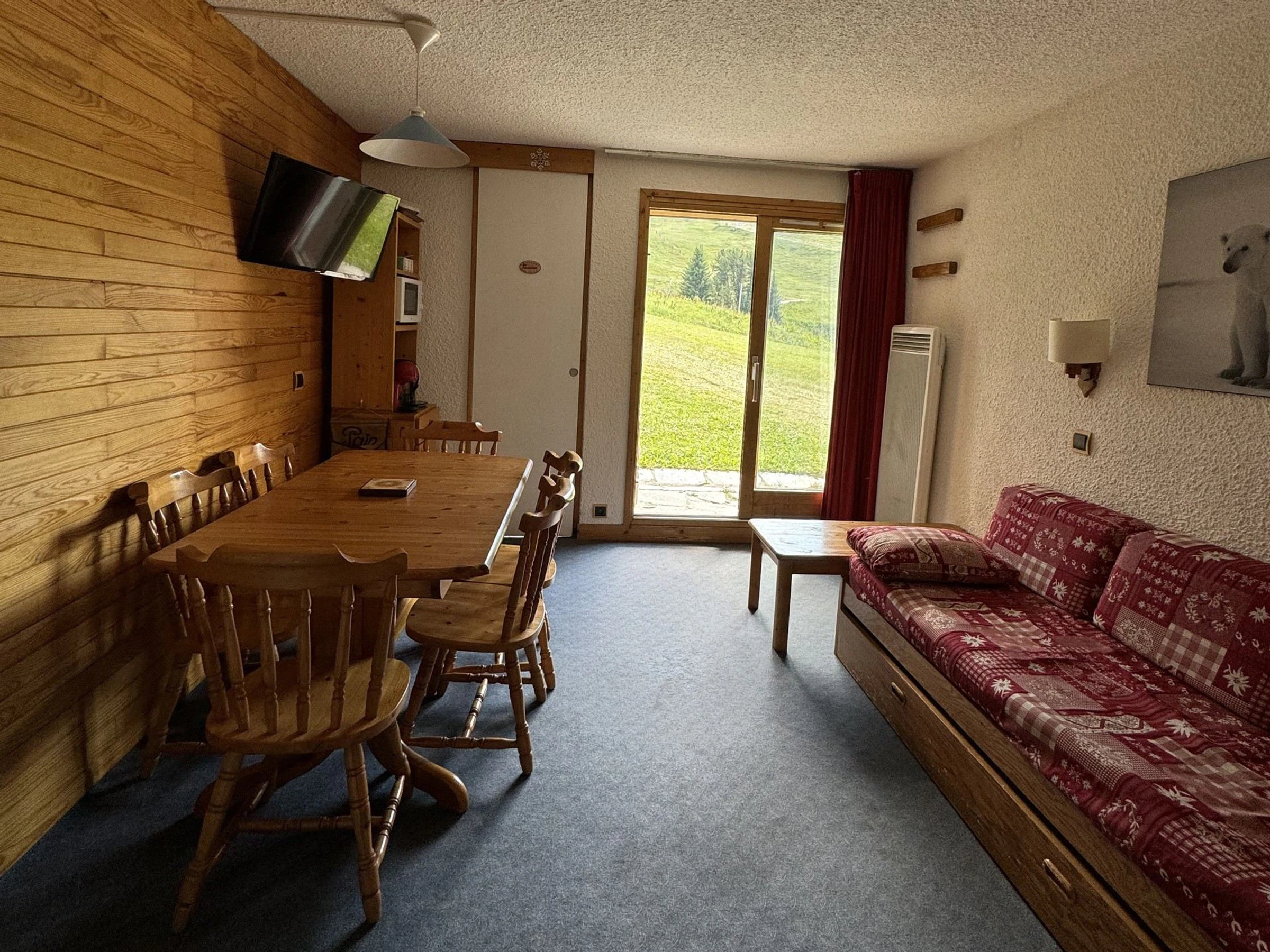 Il est situé au sud et au rez-de-chaussée avec une terrasse non privative (vue pistes).