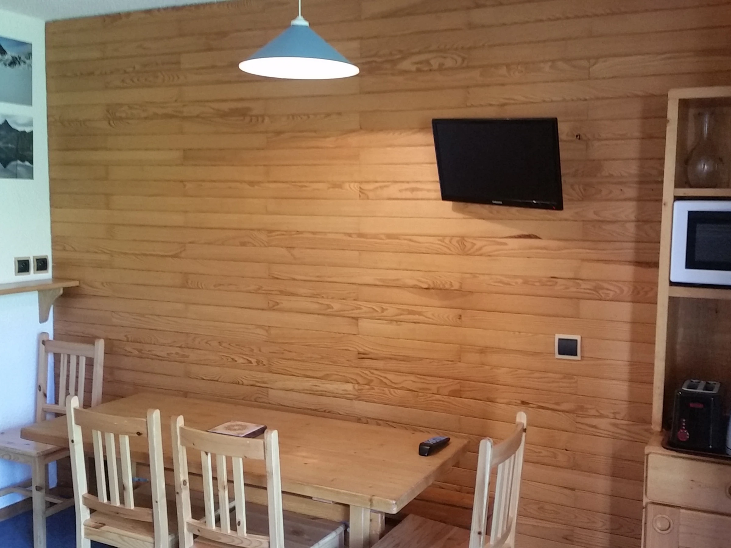 Séjour : 2 lits 1 personne et 1 lit gigogne, 1 téléviseur écran plat