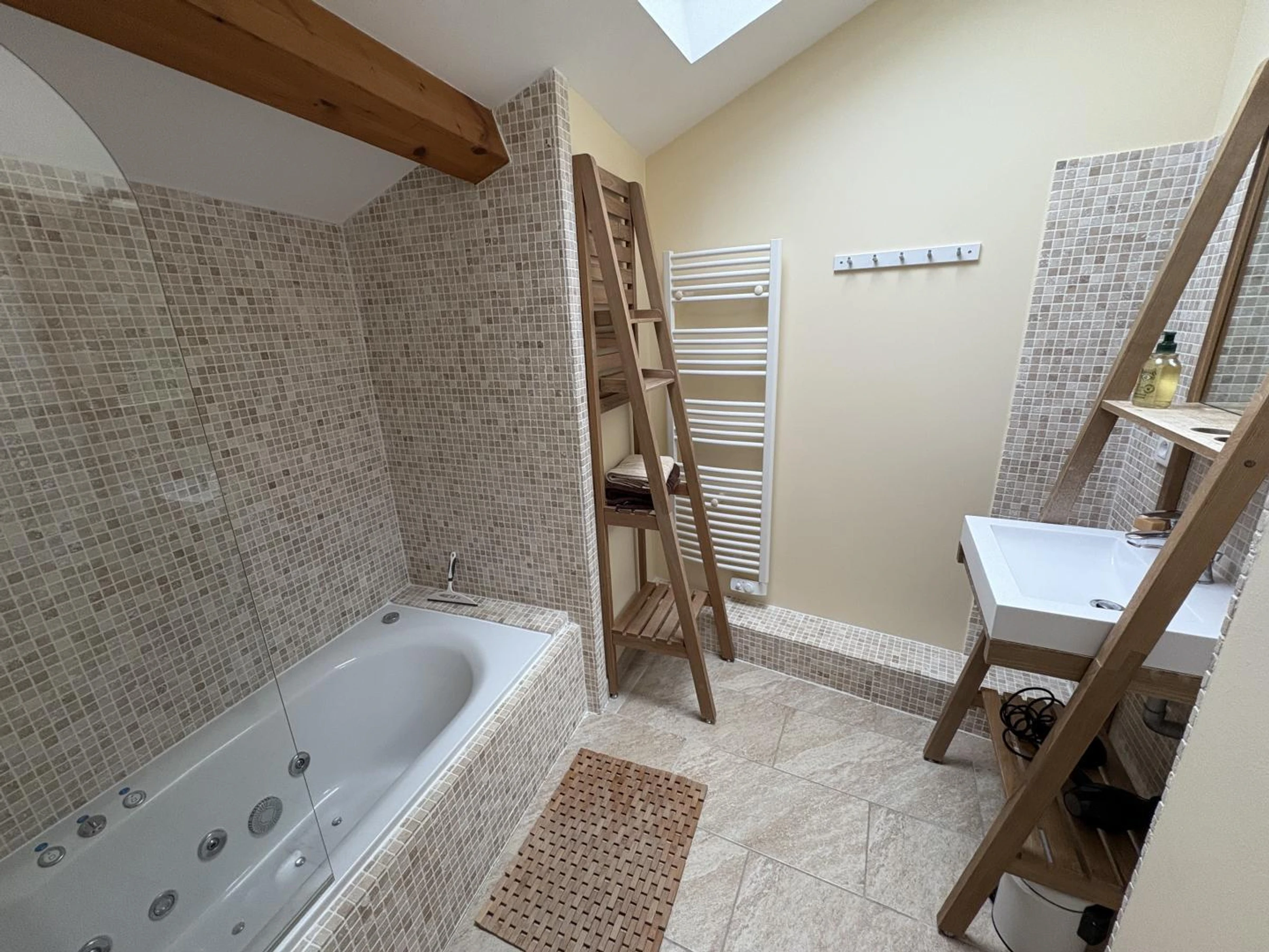A l'étage : 2 chambres chacune avec lit 160, salle de bains, wc.