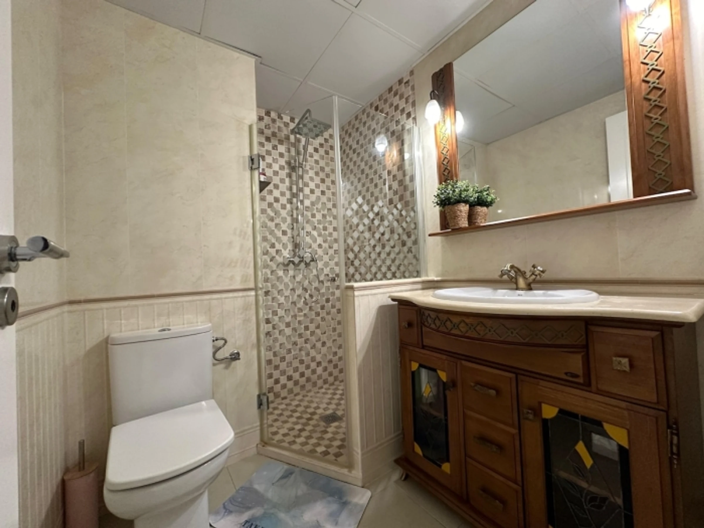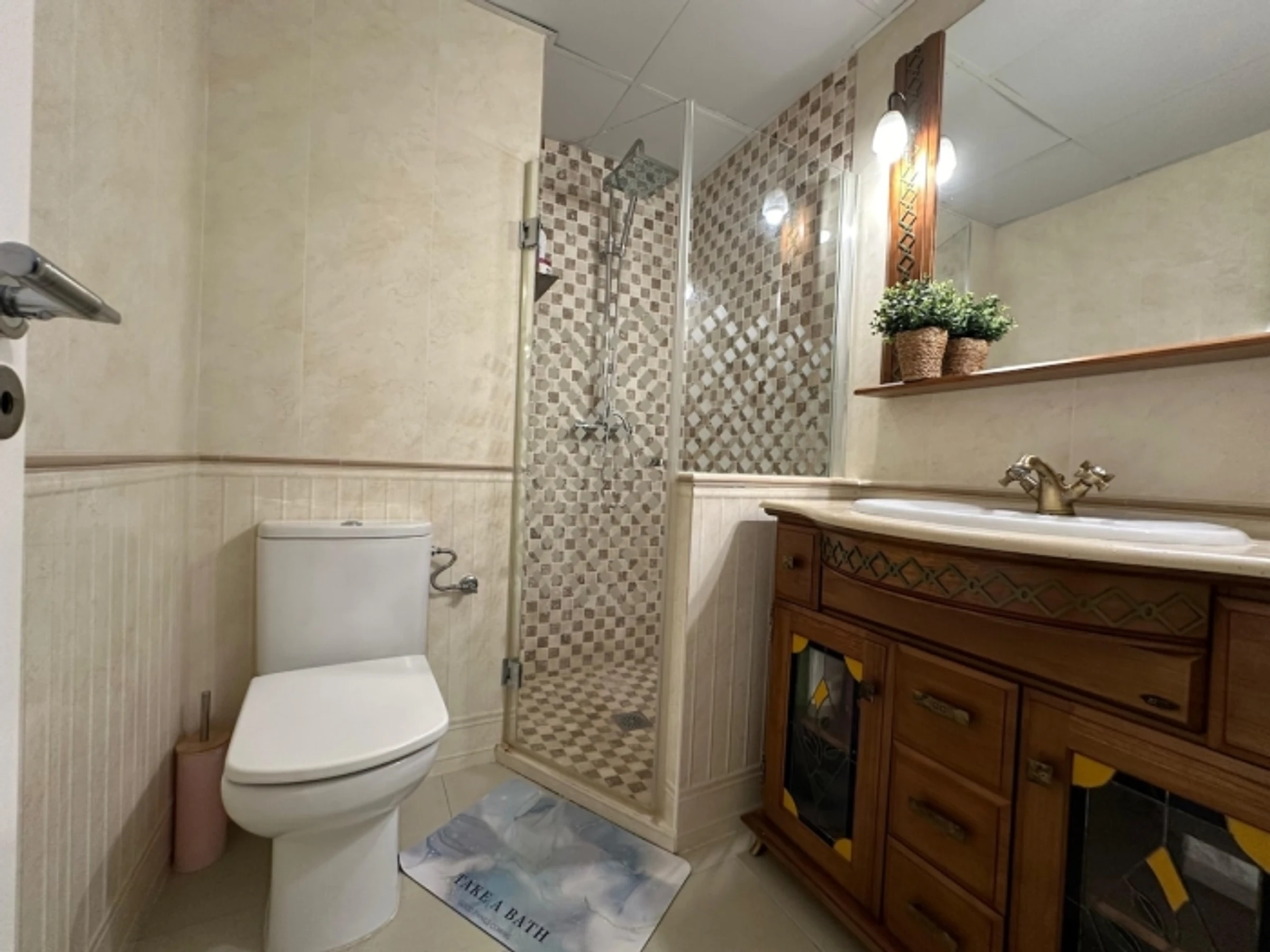 Une salle de bain accessible depuis le couloir (douche).