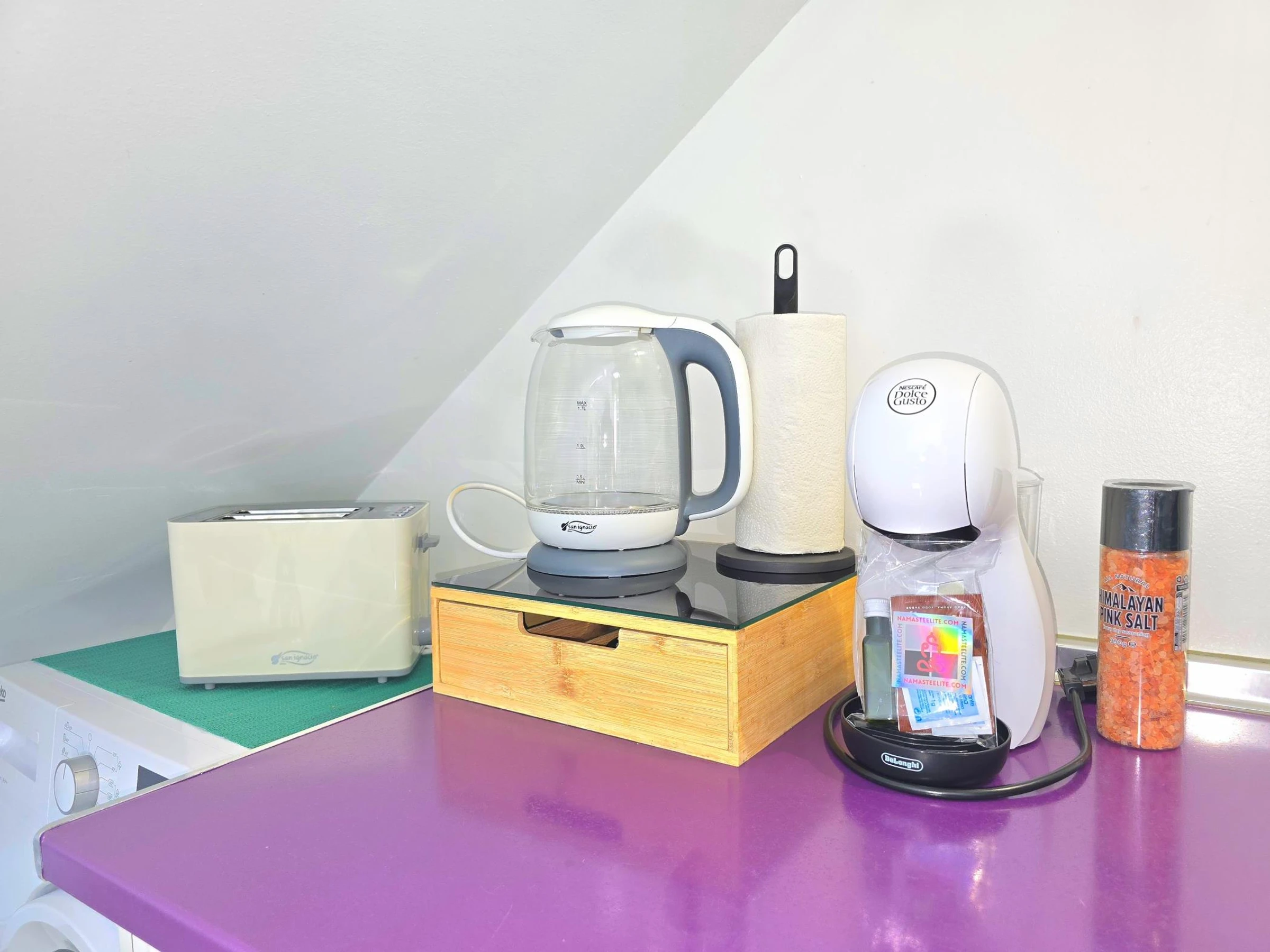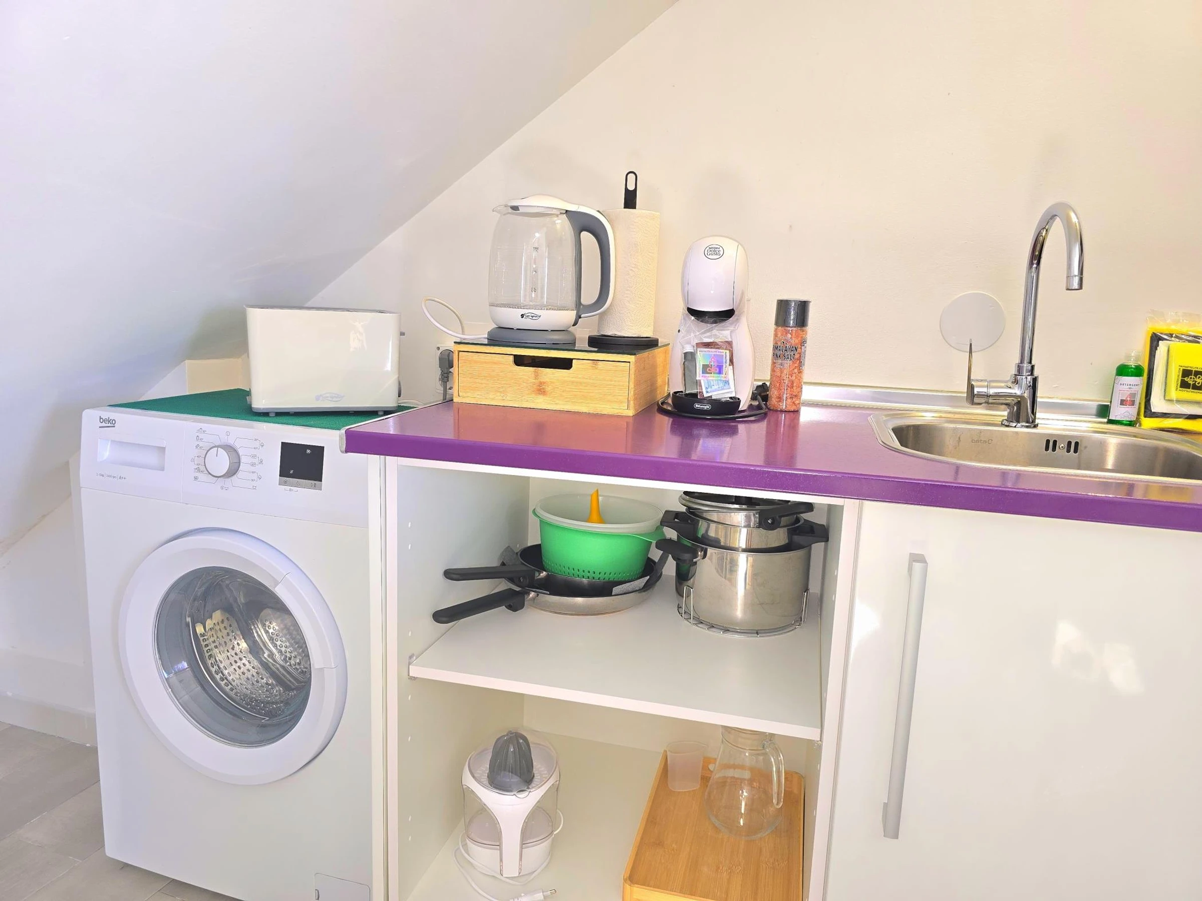 ️ Cuisine Entièrement Équipée + Coin Repas Intérieur & ExtérieurLa cuisine comprend tout ce dont vous avez besoin pour cuisiner comme à la maison : plaque de cuisson, micro-ondes, réfrigérateur, bouilloire, cafetière et ustensiles essentiels. Vous pouvez prendre vos repas à l’intérieurou les savourer en plein air sur la terrasse, face à la mer.