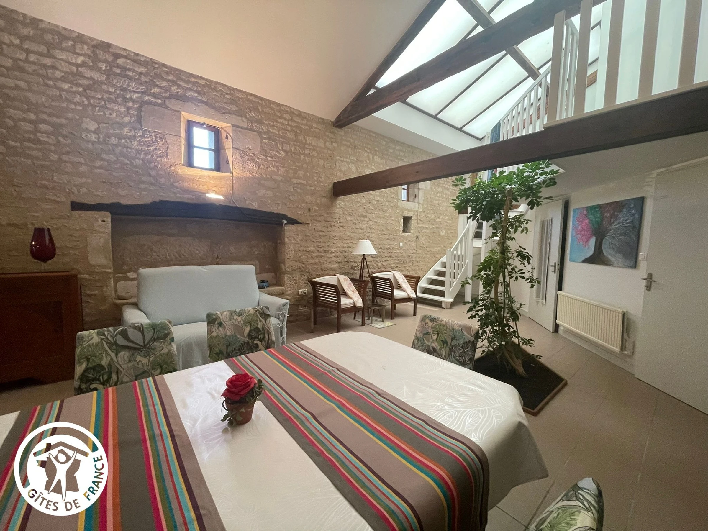 Ancienne étable restaurée, mitoyenne à des dépendances, située dans le petit bourg de Lesson au cœur du Marais Poitevin, grand site de France. Entrée et terrain indépendants. RDC: séjour/salon/coin-cuisine (TV équipée pour les sourds et malentendants), 1 chambre (1 lit 140, 1 lit 90), salle d'eau/wc. Etage : 1 chambre (2 lits 110), salle d'eau/wc. Lit bébé à disposition et chaise bébé sur demande. Wifi. Chauffage en partie par puits canadien (diffusion d'air réchauffé) compris. Terrain clos aménagé de 150 m² (salon de jardin, barbecue, chaises longues), local fermé pour vélos. Niort 12 km. Options :