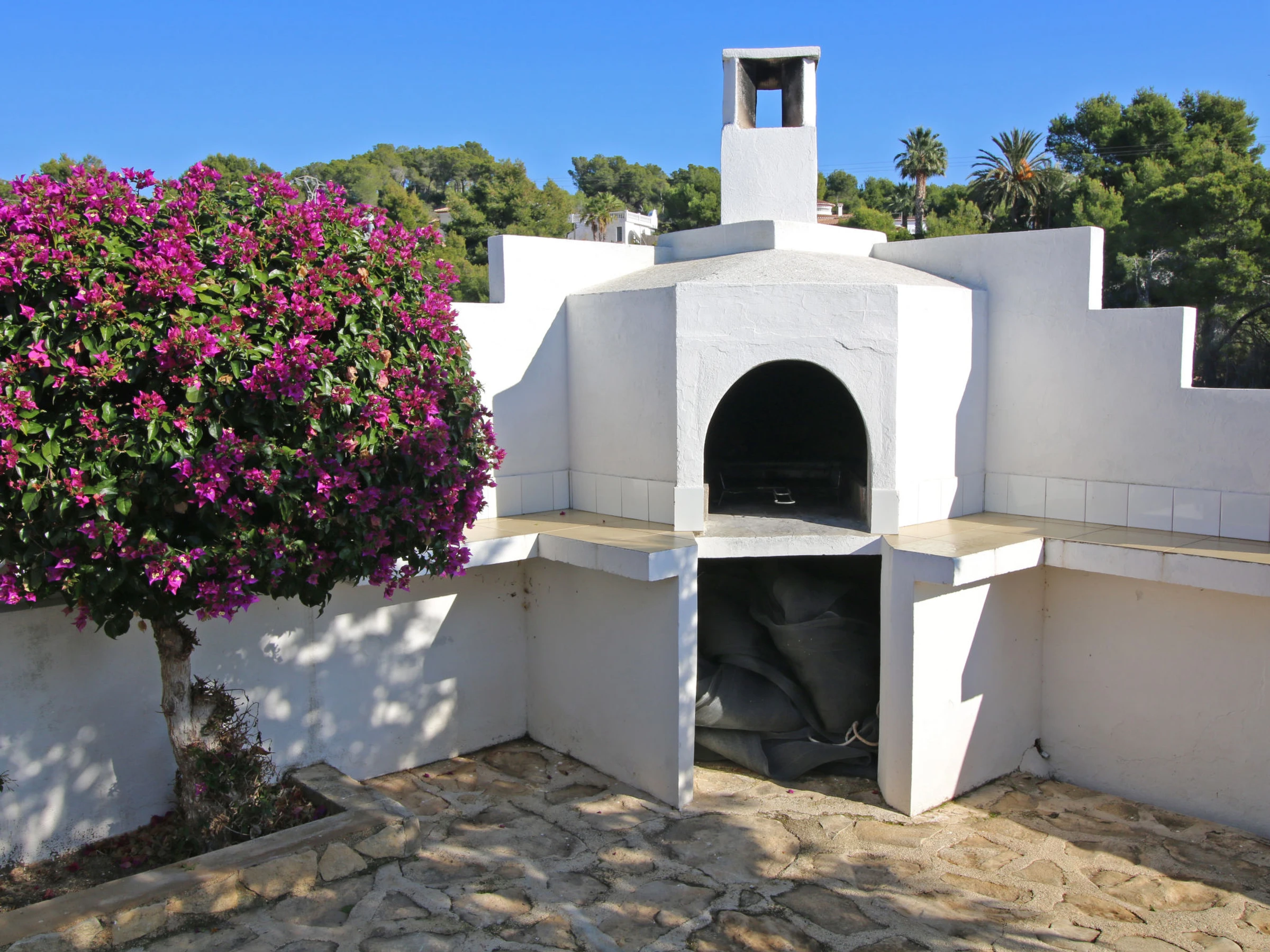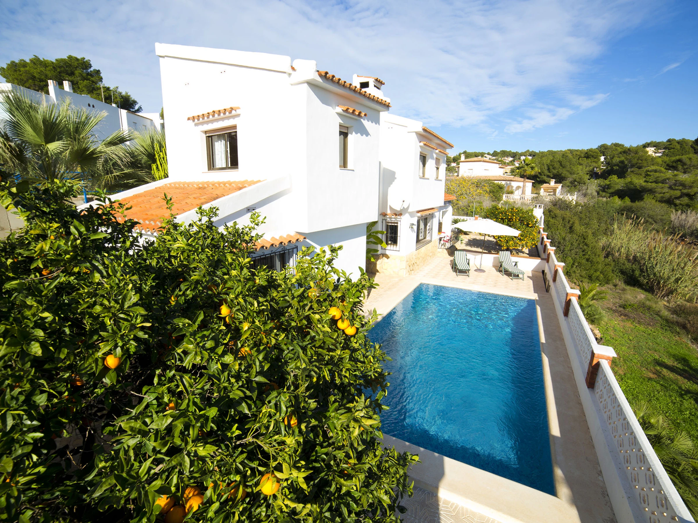 La Fustera: Grande maison confortable "Las Mañas", de 2 étages. Dans la localité, à 6.4 km du centre de Calpe, en bordure de la localité, à 8.5 km du centre de Moraira, situation ensoleillée quartier résidentiel, à 750 m de la mer, à 750 m de la plage. A usage privé: terrain 876 m2 (clôturé), verger, piscine rectangulaire (disponibilité saisonnière: [hidden] - [hidden] Douche extérieure, terrasse, meubles de jardin, barbecue, place de parking (pour 2 voitures). Supermarché 2.6 km, restaurant 750 m, bar 450 m, café, biergarten 750 m, arrêt de bus 500 m, plage de sable "Playa - Cala La Fustera" 750 m. Terrain de golf (18 trous) 7 km. Attractions à proximité: Aqualandia, Mundomar, Terra Mítica, Terra Natura, Benidorm Palace (Benidorm). Région de randonnées: Peñon d'Ifach 4 km, Sendero ecológico Calalga 750 m.
