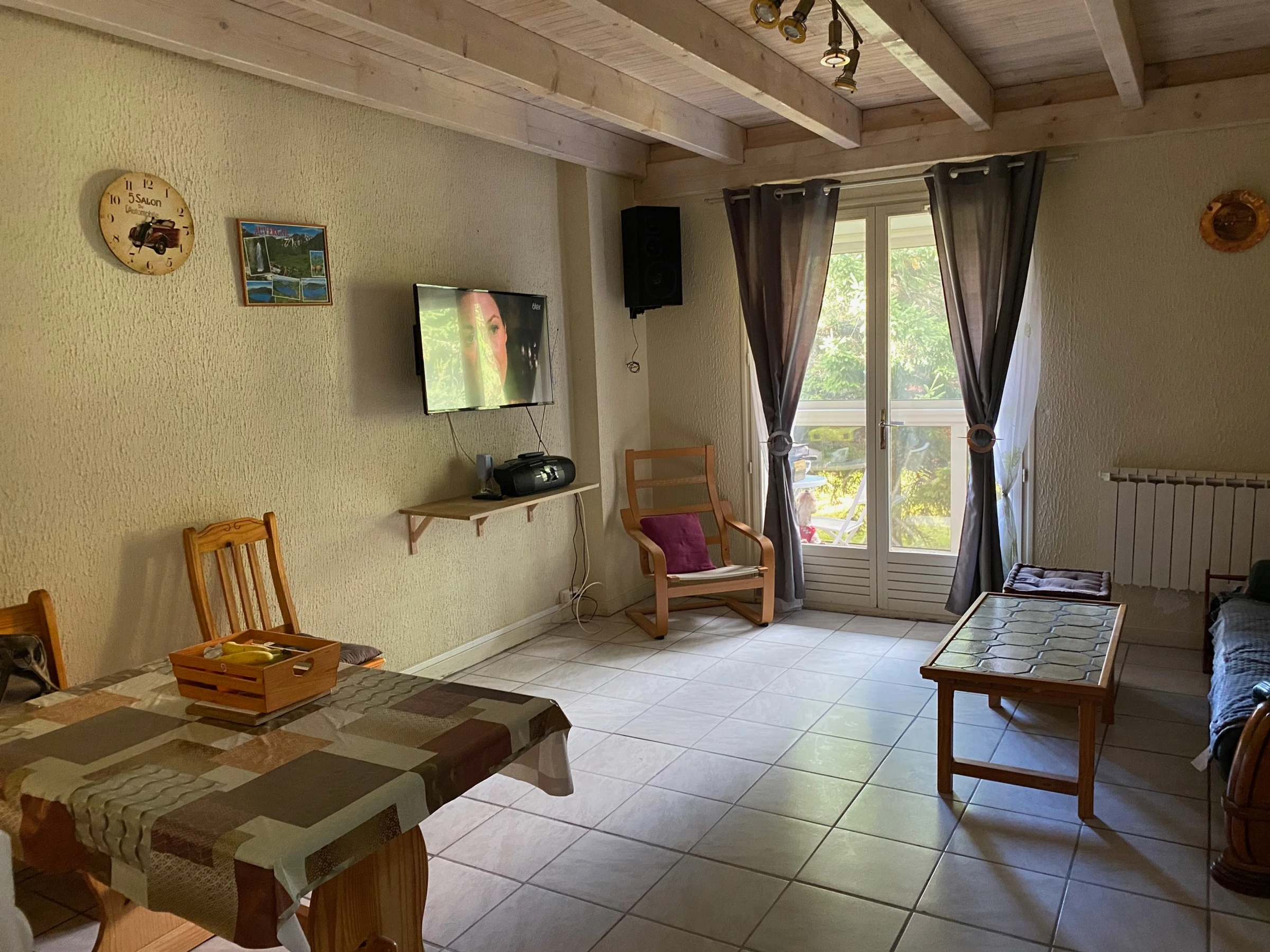Le logement est équipé d'une cuisine, d'un coin salon, d'un coin repas d'une salle d'eau et de 2 chambres à l'étage.