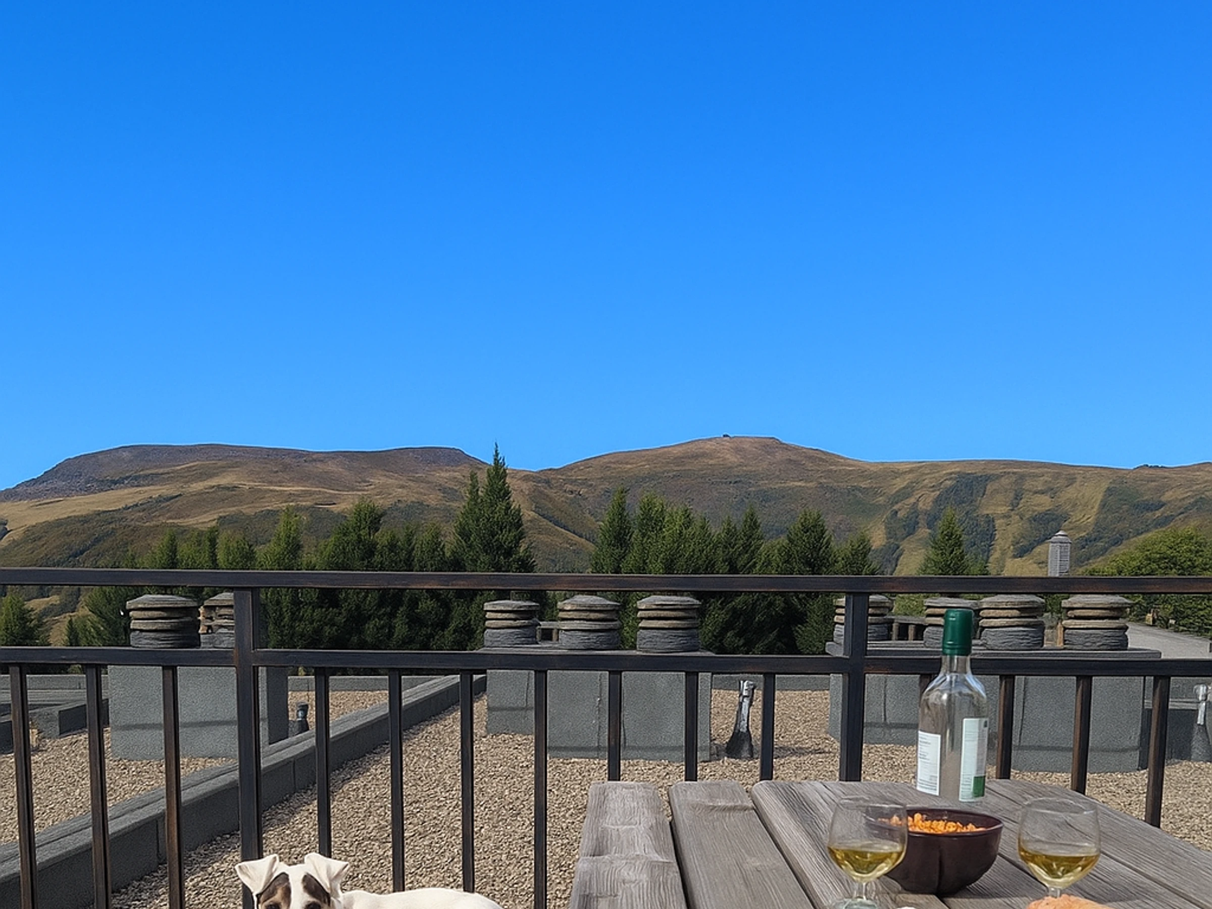 Studio situé dans la résidence des GRANDS HORIZONS de 25m2 pour 4 personnes avec sa vue imprenable sur sa terrasse. Vous pourrez admirer le Plomb du Cantal, le Sancy et ses pistes et le Chambourguet. Vous serez les seuls à admirer ce paysage féérique car le studio se trouve au dernier étage de la résidence, vous profiterez d'une ambiance calme et des paysages extraordinaires à partager entre amis ou en famille.