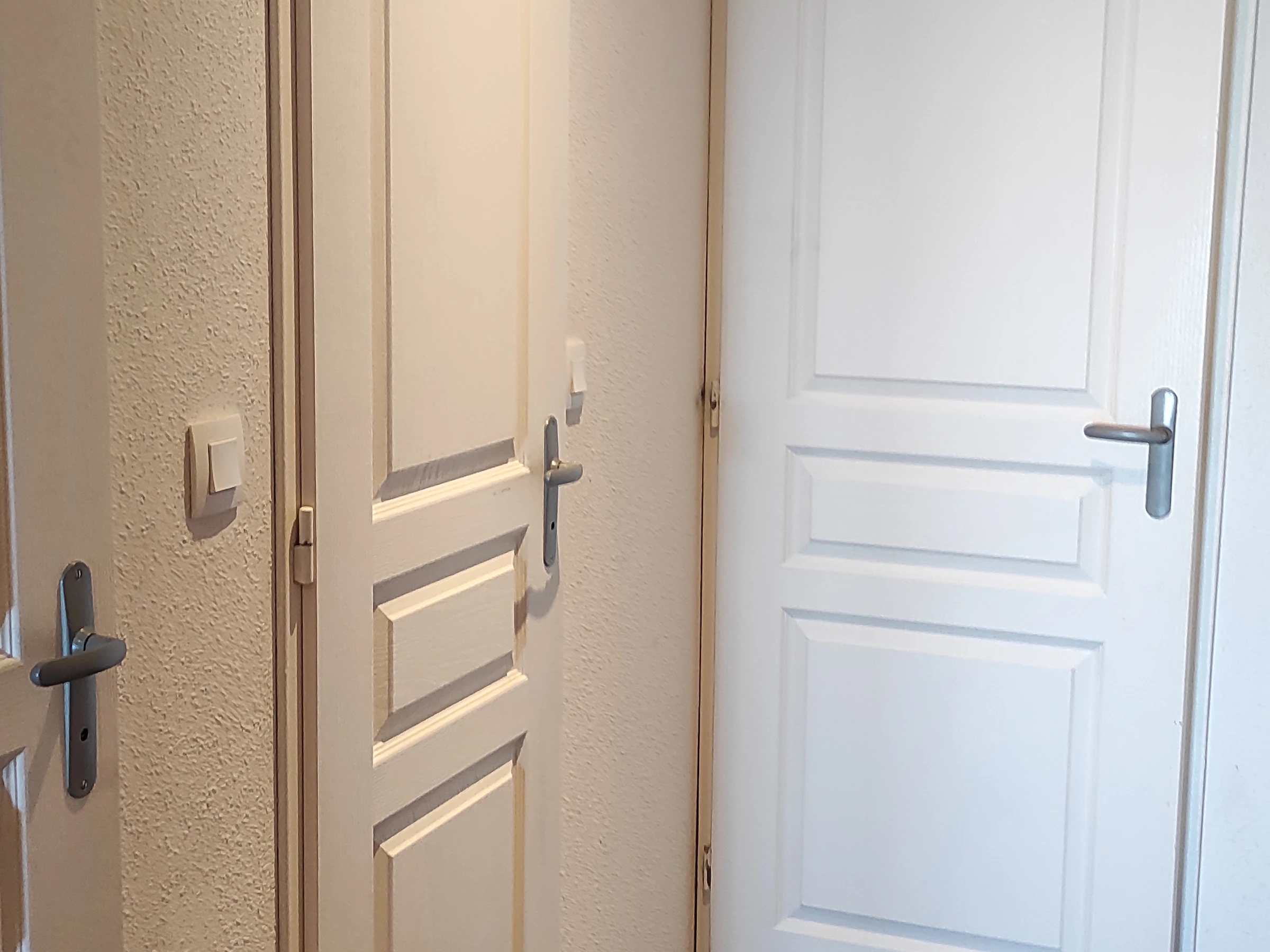 L'ensemble s'articule autour d'un hall d'entrée donnant accès à la salle de bain et aux toilettes indépendantes.