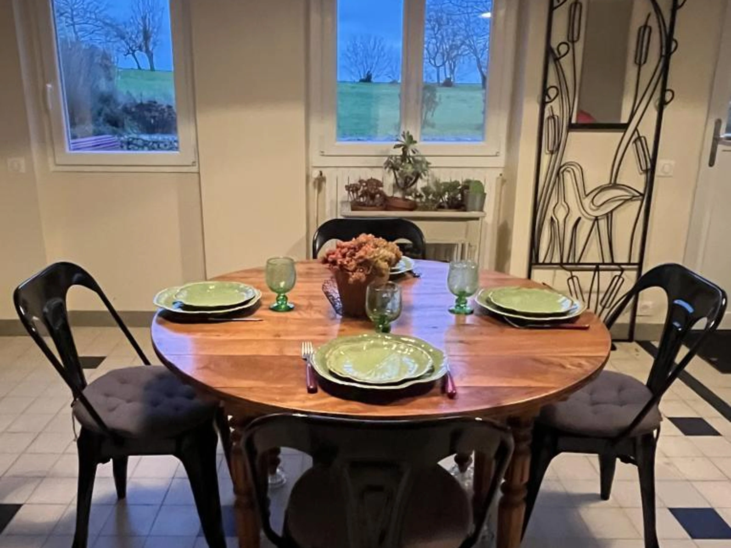 Rez de chaussée : salle à manger donnant sur la cuisine et ouverte sur le salon. Empruntez le couloir qui dessert 1 chambre pour 2 personnes (1 lit 140 x 190 cm) et 1 chambre pour 2 personnes (1 lit 160 x 190 cm), une salle d'eau (douche) et un wc indépendant.