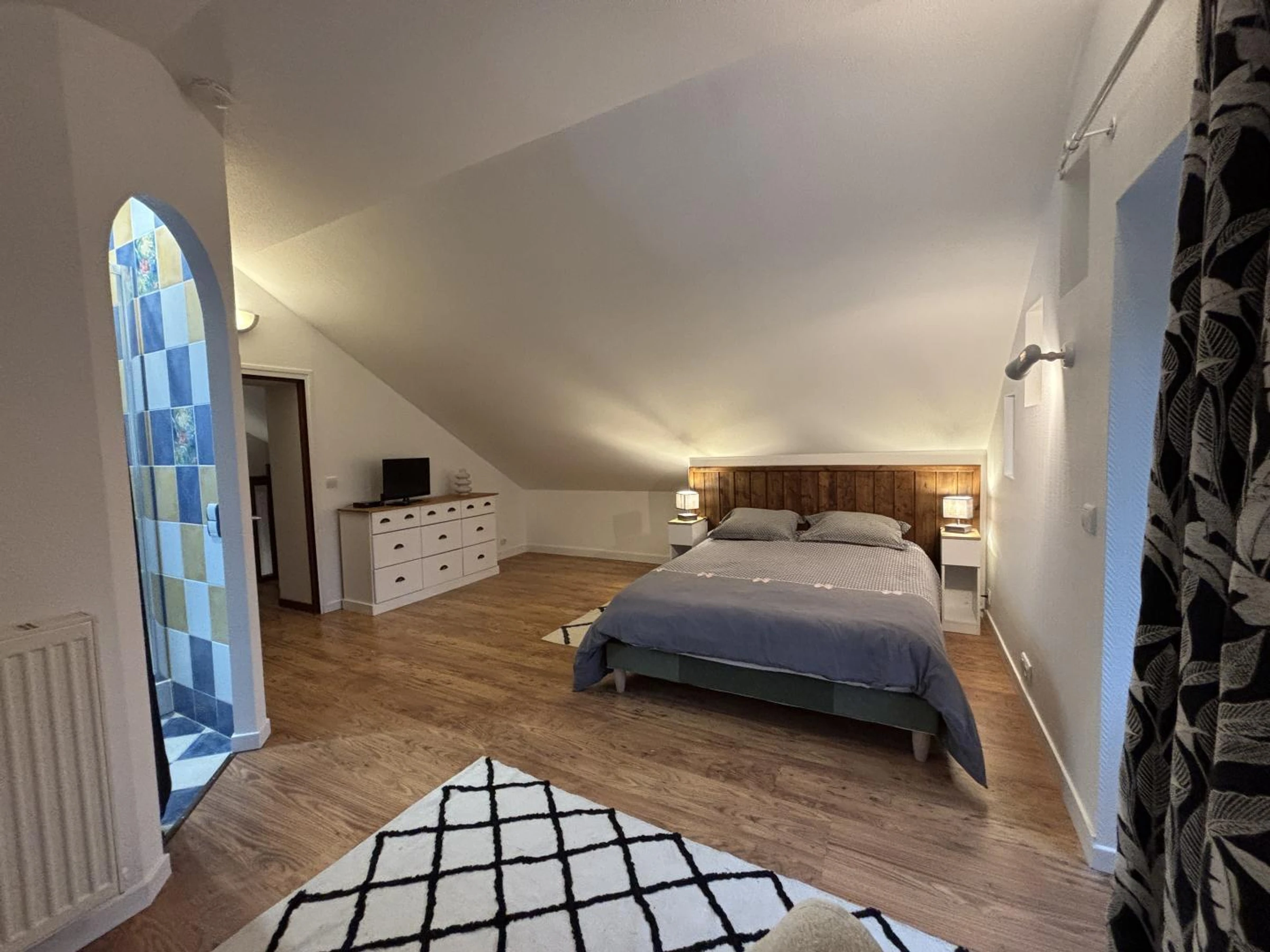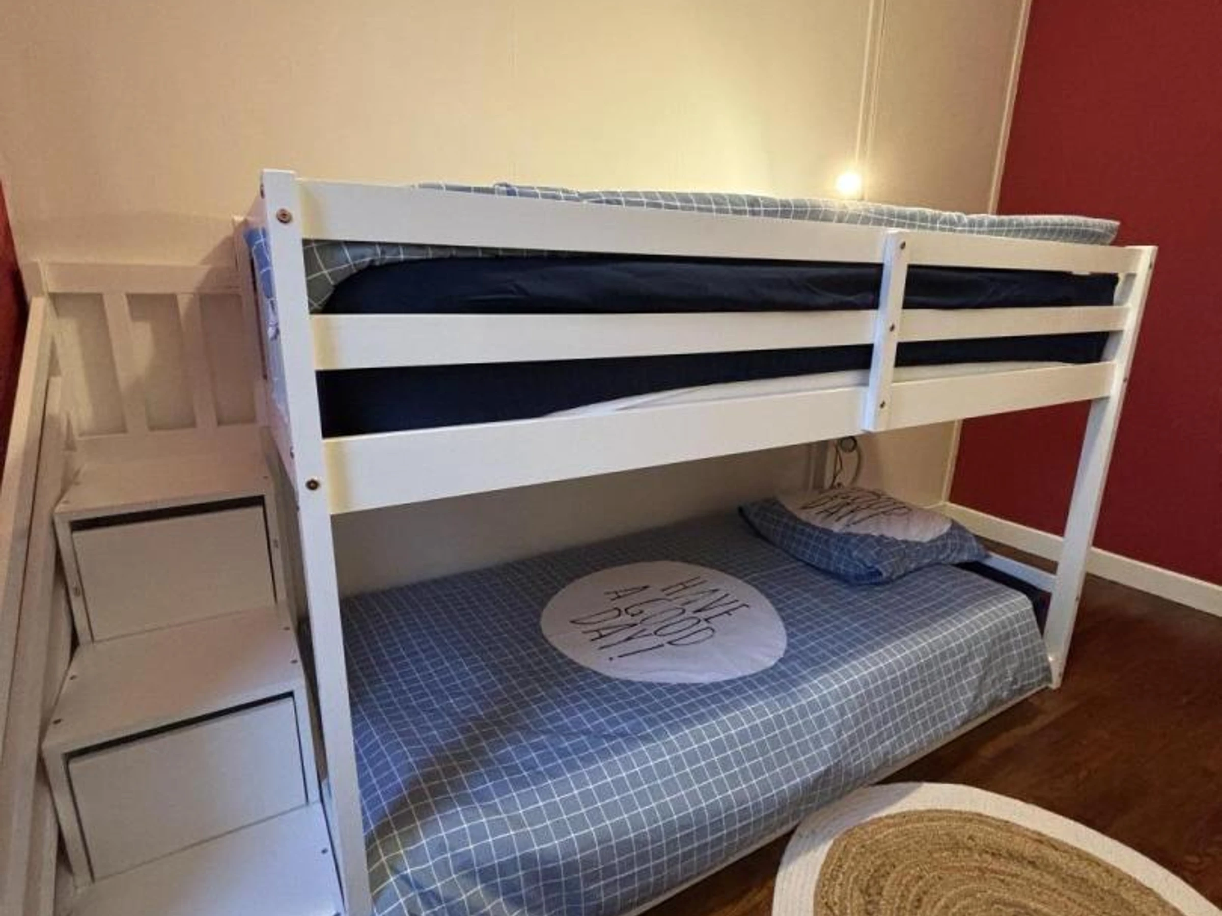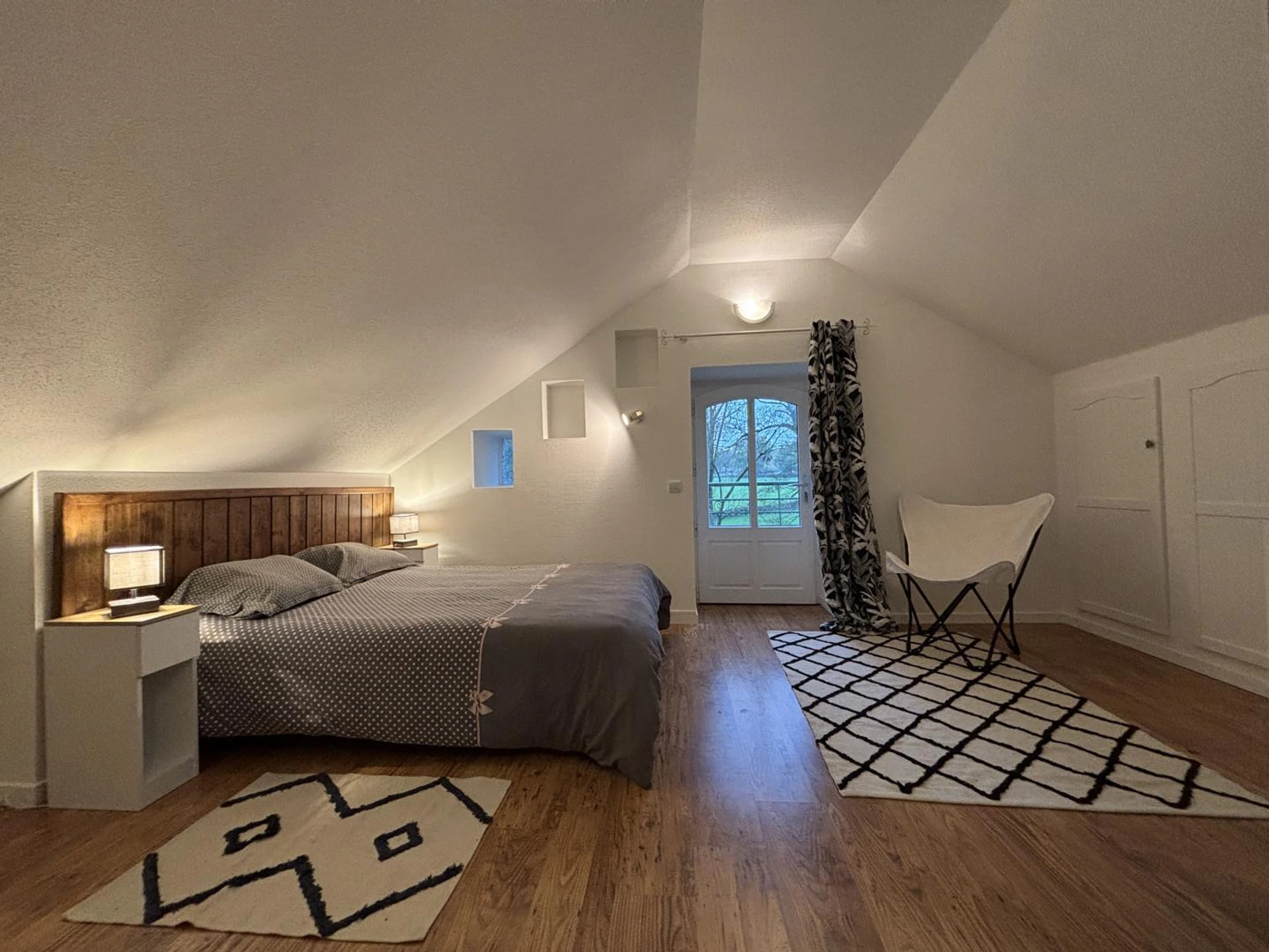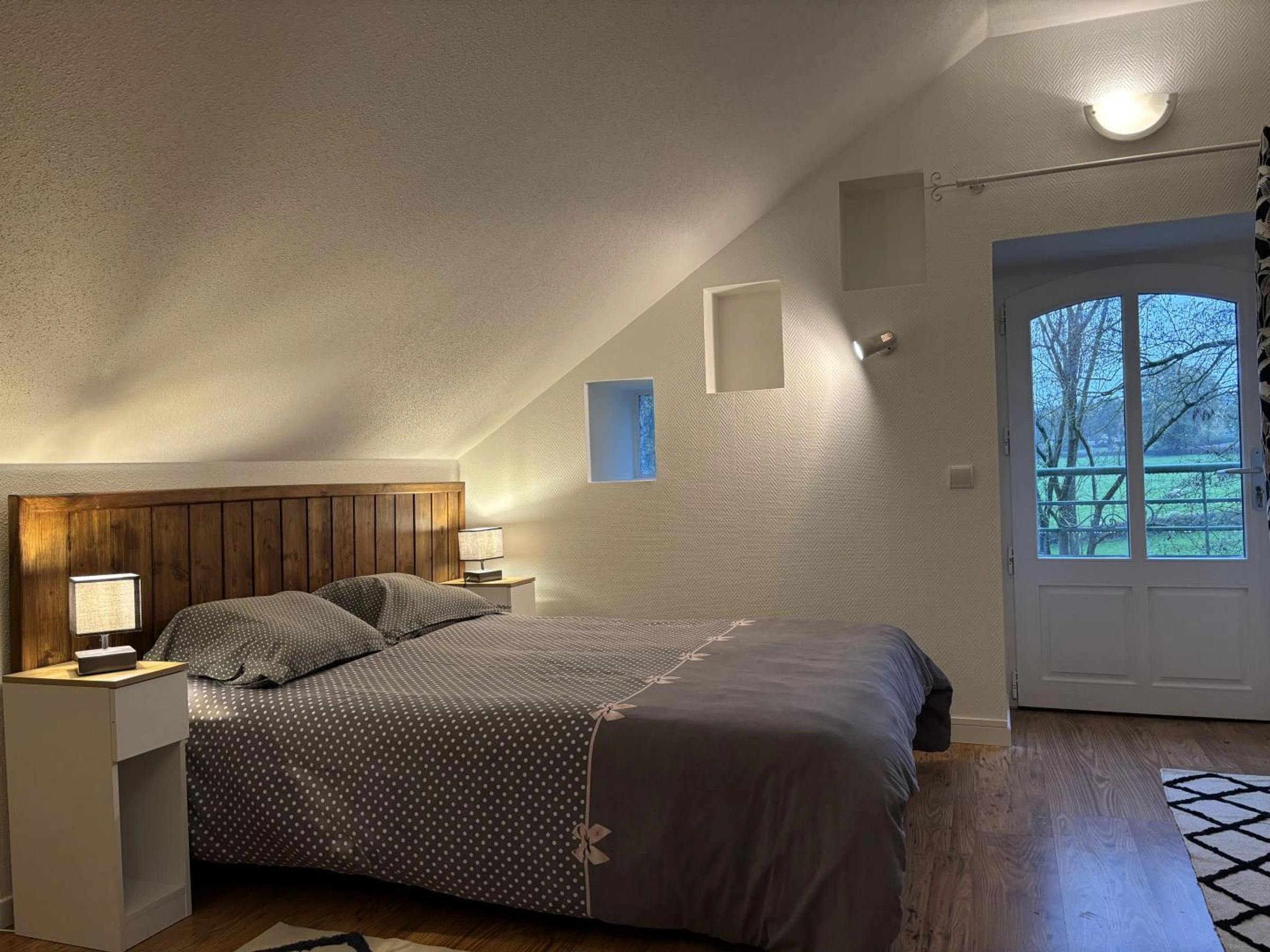 1er étage : 1 chambre pour 2 personnes dont 1 avec salle d'eau privative (douche), WC indépendant sur le palier.