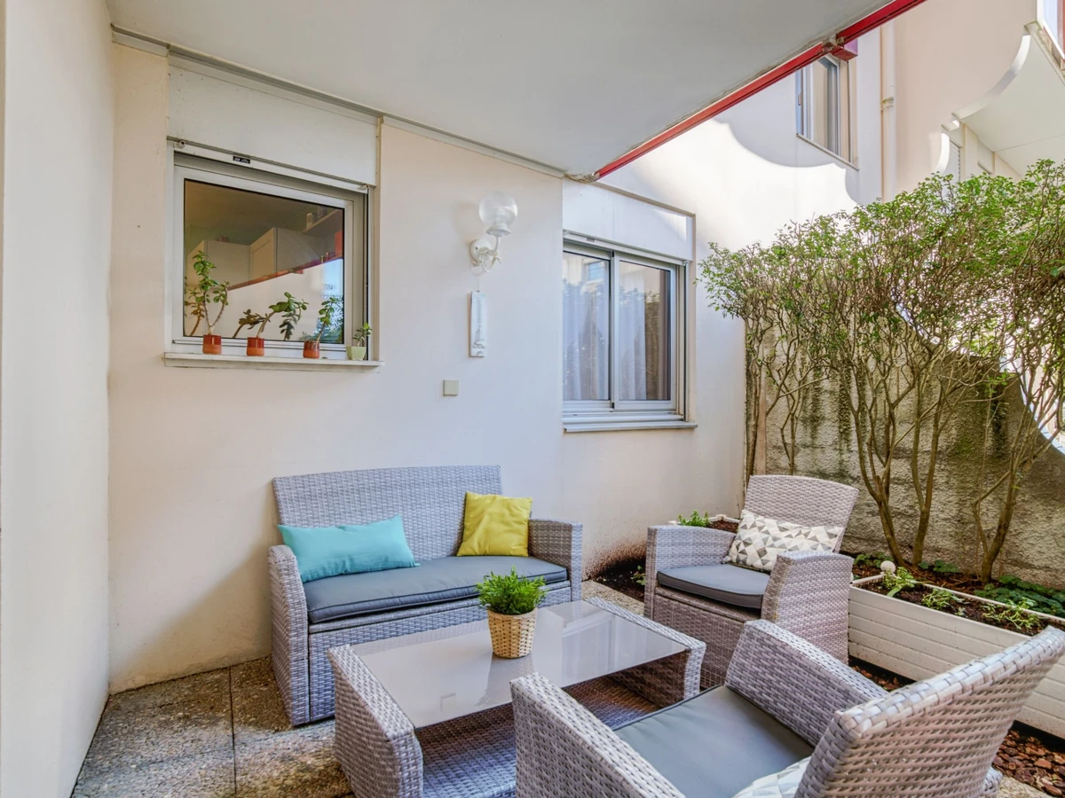Apt 2 pièces 50 m2, au rez-de-chaussée. Aménagement agréable: séjour/salle à manger avec 1 divan-lit double (140 cm, longueur 190 cm), TV (écran plat). Sortie sur la terrasse. 1 chambre avec 2 lits (90 cm, longueur 190 cm). Cuisine (lave-vaisselle, 2 plaques à induction, grille-pain, bouilloire électrique, congélateur, cafetière électrique, Capsules pour machine à café (nespresso) (NON INCLUSES), combiné micro-ondes). Douche/WC, double vasque. Chauffage électrique. Terrasse 15 m2, petit jardinet 15 m2. Meubles de terrasse. A disposition: lave-linge, fer à repasser, sèche-cheveux. Internet (Connexion WIFI, gratuit). Place de parking No 54. Veuillez noter: logement non-fumeur. Détecteur de fumée. [hidden]