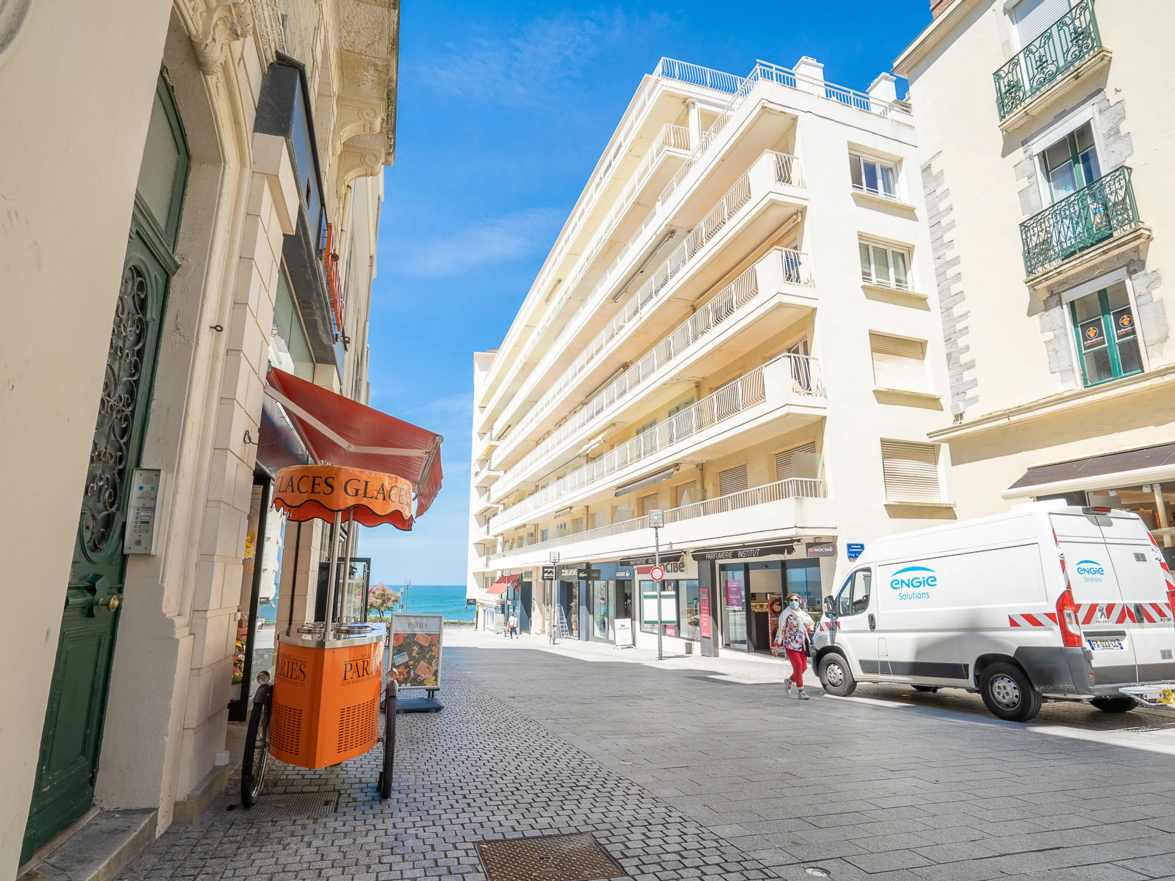 Résidence "Bellevue Clemenceau", de 9 étages. Au centre de Biarritz, situation centrale, animée, à 150 m de la mer, à 150 m de la plage. Infrastructures de la résidence: ascenseur. Magasins 50 m, magasin d'alimentation 100 m, supermarché 3 km, restaurant 100 m, boulangerie 50 m, arrêt de bus "Bellevue Parking" 50 m, gare ferroviaire 2.5 km, plage de sable "La Grande Plage" 150 m, piscine couverte 200 m. Terrain de golf (18 trous) 2.8 km, ecole de surf 150 m. Attractions à proximité: Marché des Halles 280 m, Port des Pêcheurs 400 m, Aquarium 750 m, Phare de Biarritz 1.7 km, Bayonne 8 km, St-Jean-de-Luz 17 km. Région de randonnées: La Rhune 28 km. Veuillez noter: la remise des clés a lieu à l’agence . Night-club/discothèque à proximité.