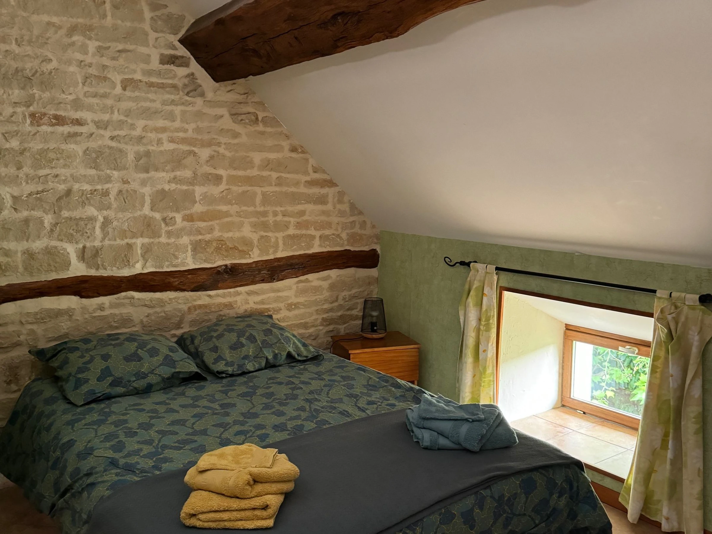 Ancienne ferme restaurée, située à l' entrée de village, sur un terrain herboré de 5000 m2, traversé par 2 cours d'eau. La rénovation des lieux a permis la création d'un gîte et de 3 chambres d'hôtes. Logement situé en mitoyenneté de la résidence des propriétaires avec un accès indépendant et une utilisation autonome . Entrée par un balcon donnant sur le rez de chaussé du logement composé d'un espace cuisine avec séjour, salle d'eau et WC, salon et une chambre ( 1 lit de 140 x 190).