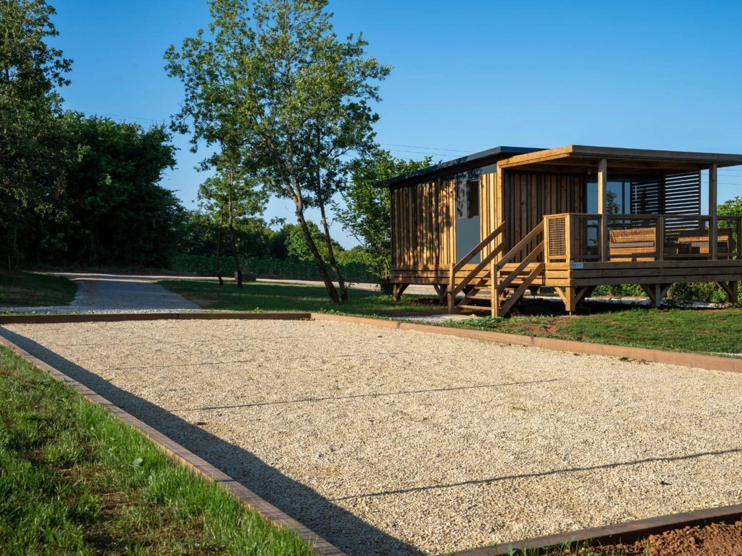En extérieur : cour privative avec salon de jardin, barbecue. A partager avec les cabanes du domaine : piscine clôturée de 10m x 5m avec 1,5m de profondeur, un boulodrome et le terrain de 7ha.