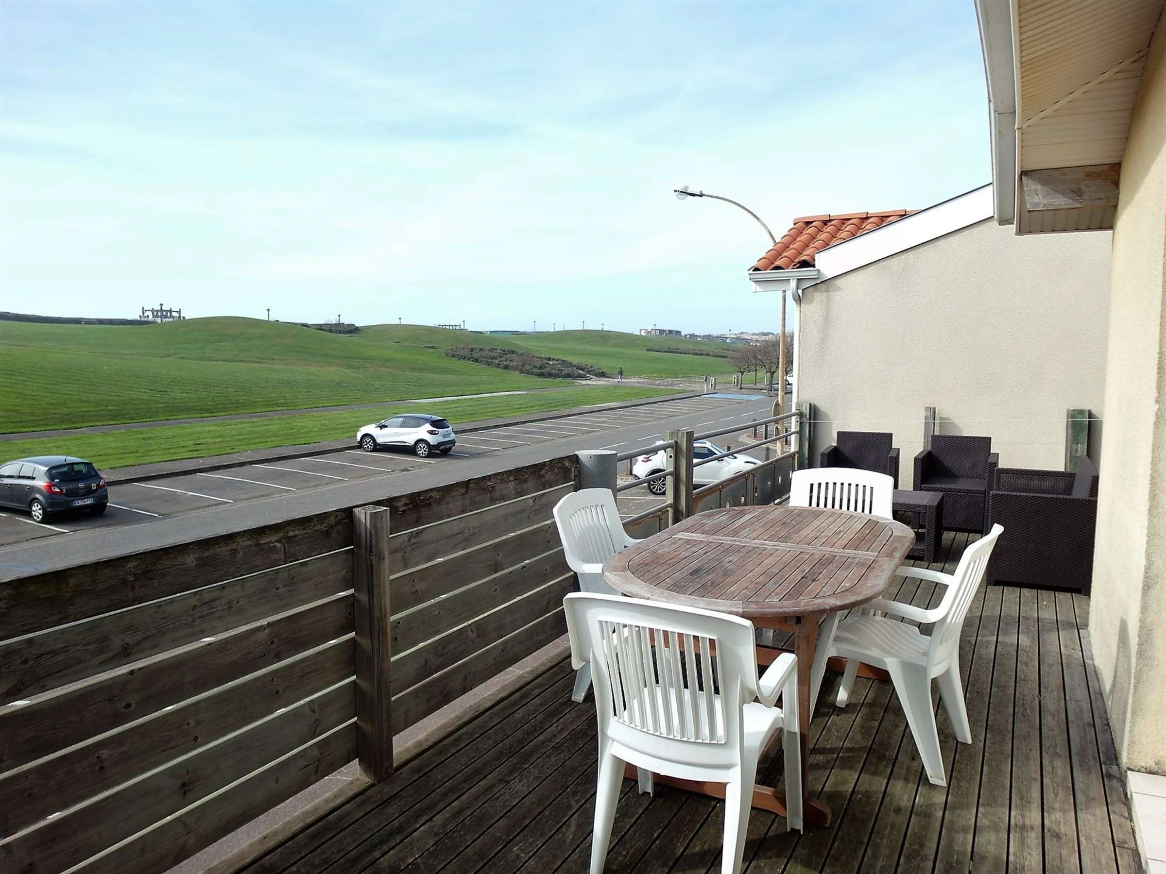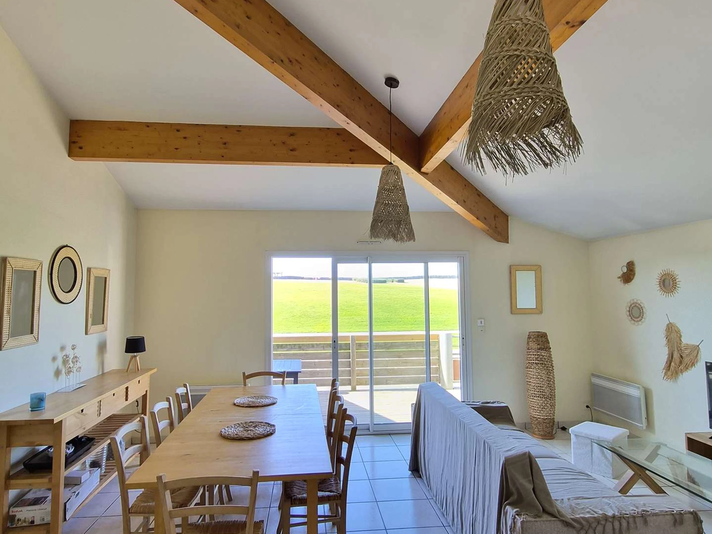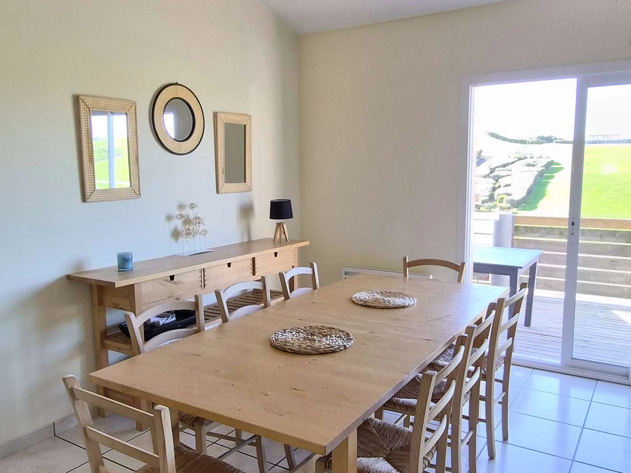 En bordure de plage, au pied de la dune en herbe, villa jumelle de 100m² pouvant accueillir jusqu'à 6 personnes, avec une grande terrasse de 40m² exposée Ouest. Bel espace du séjour lumineux, grandes baies vitrées donnant sur une terrasse privative avec mobilier de jardin. WIFI
